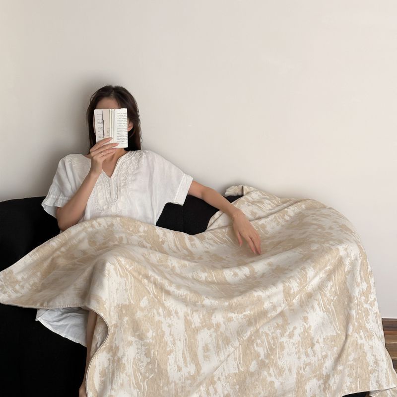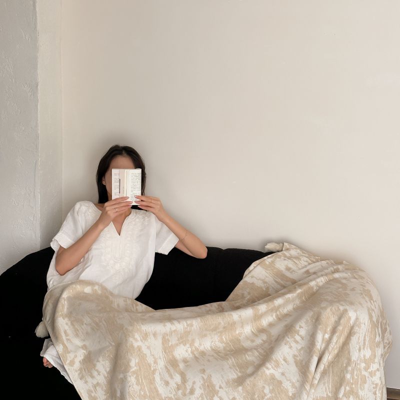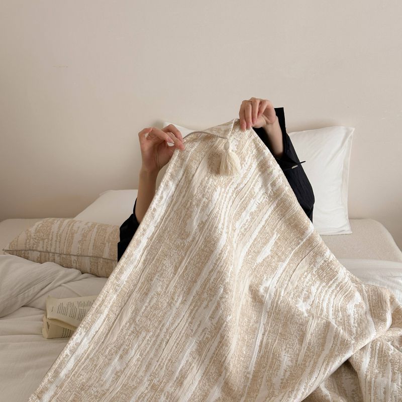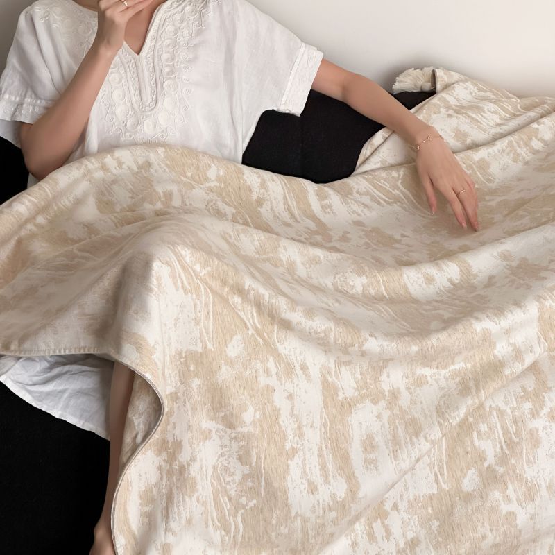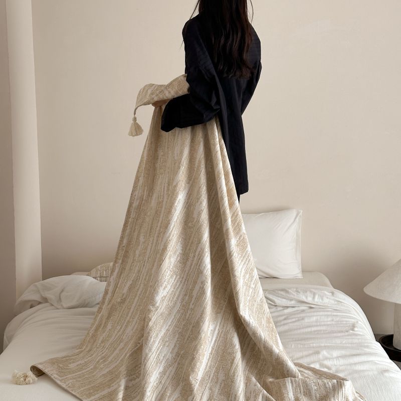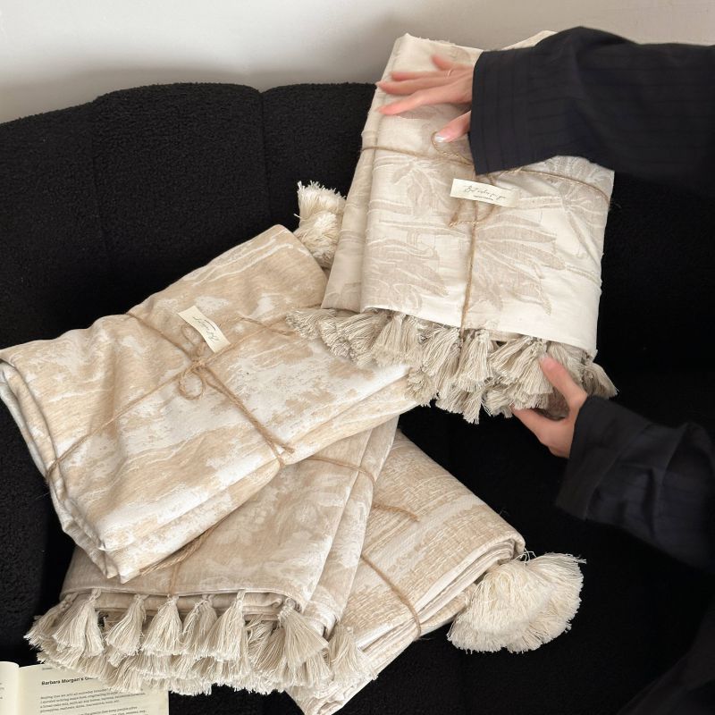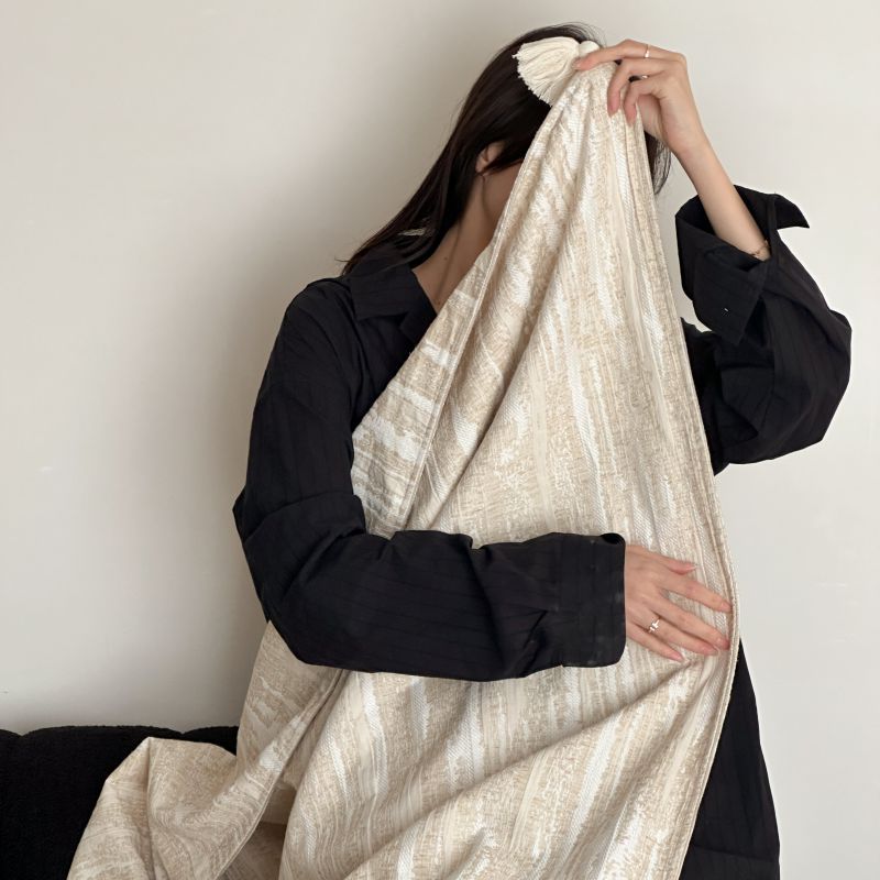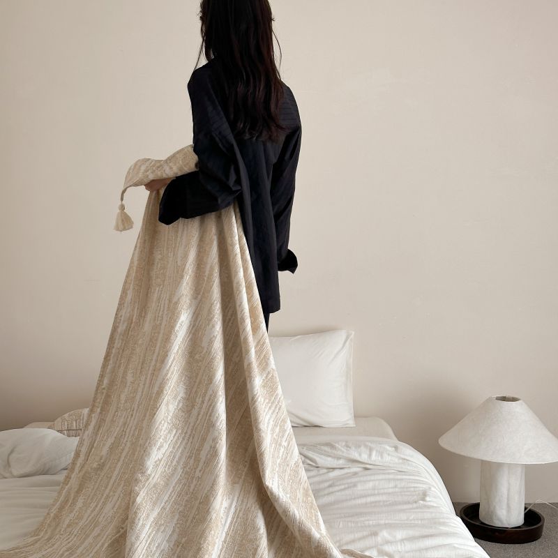自然侘寂风高级肌理感棉麻提花盖毯沙发巾空调休闲毯