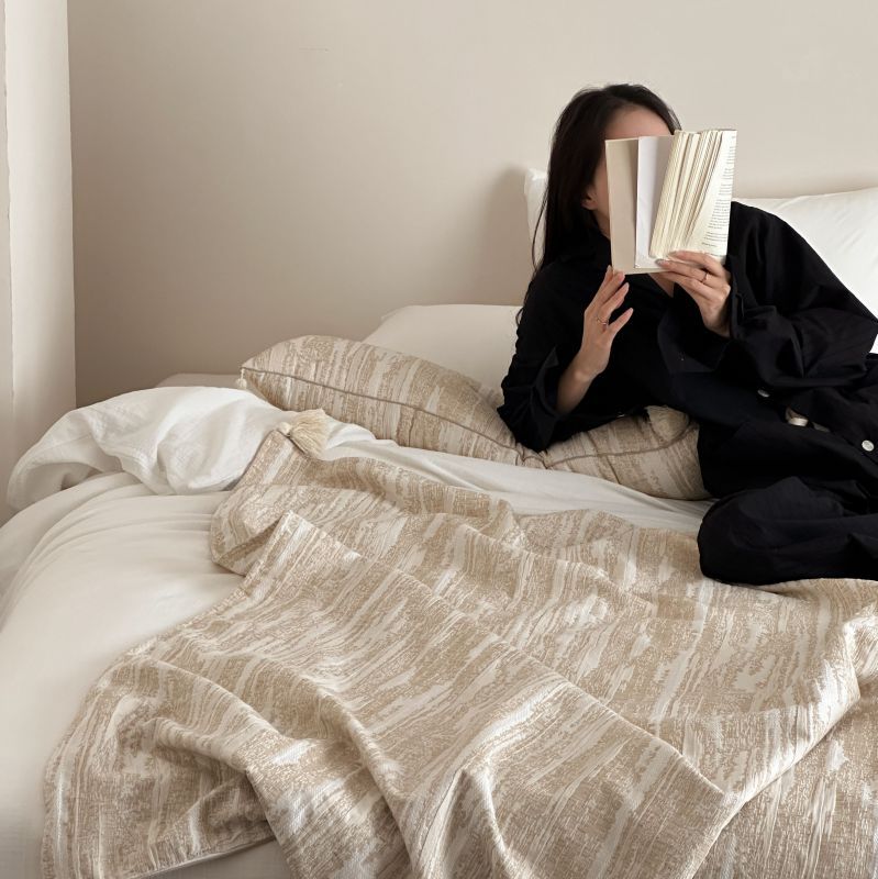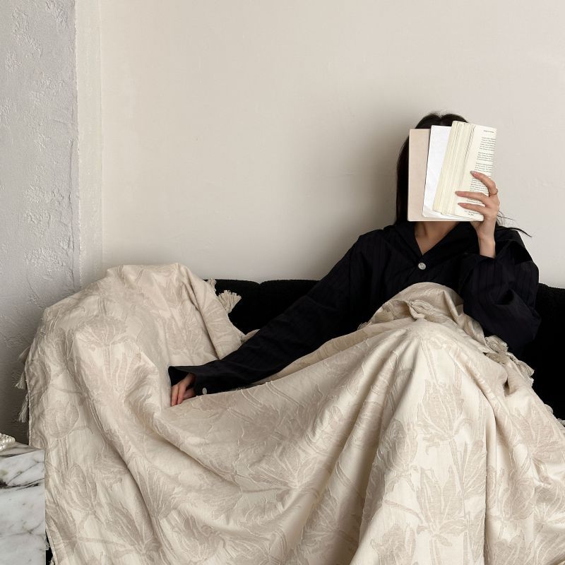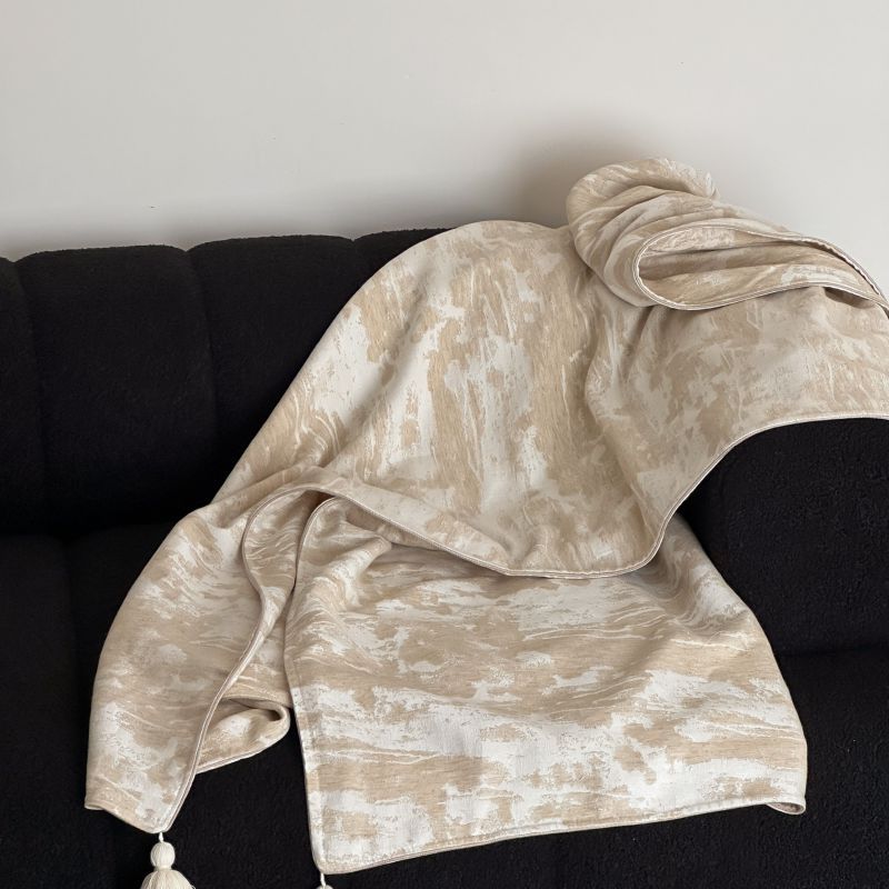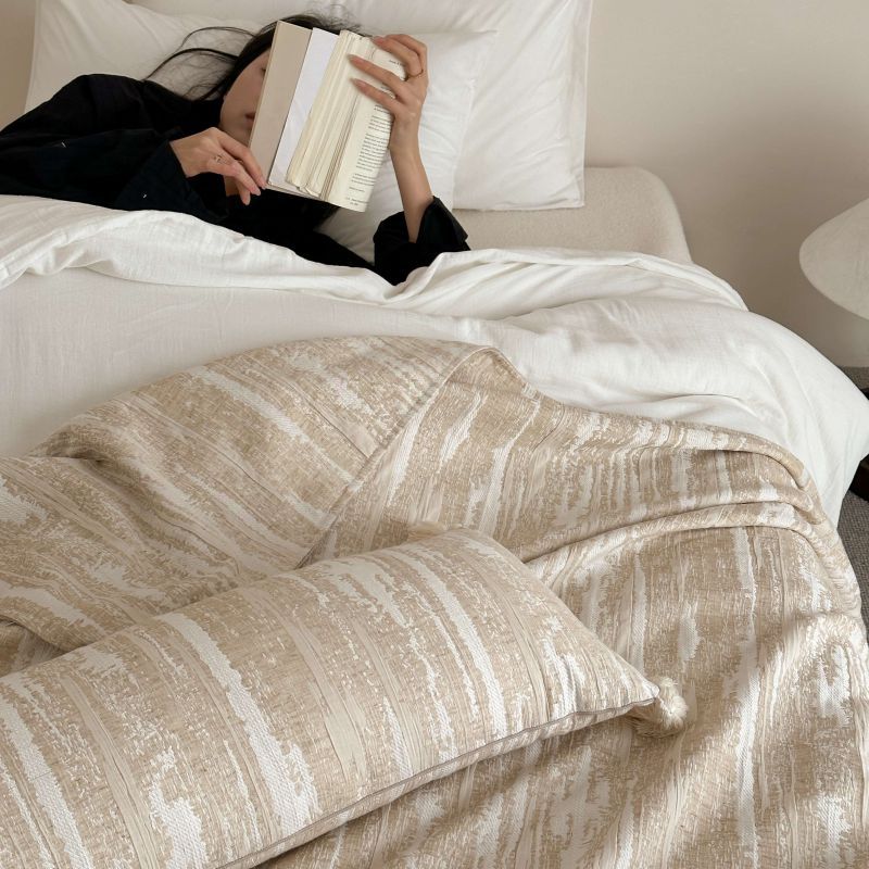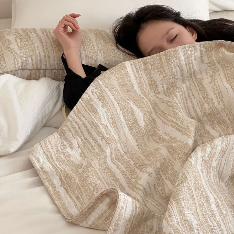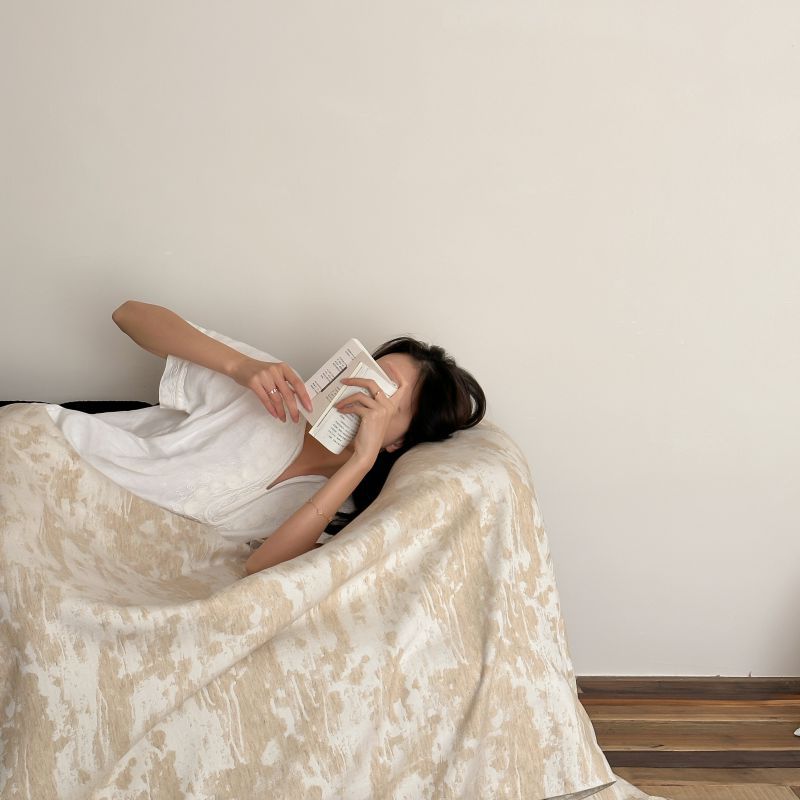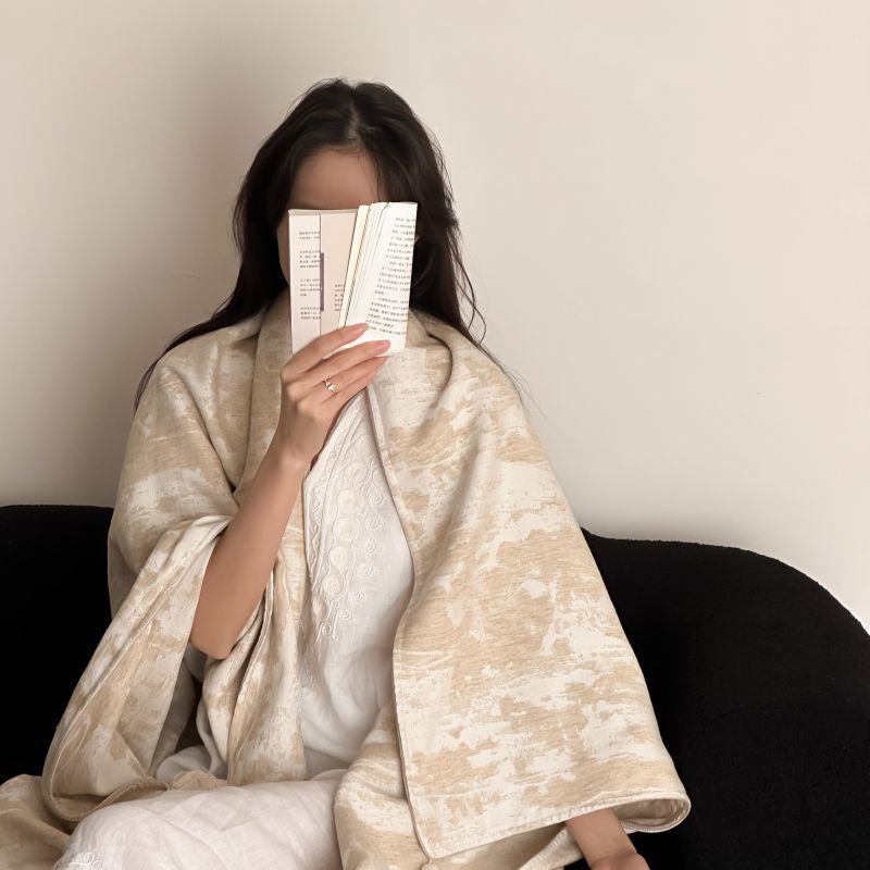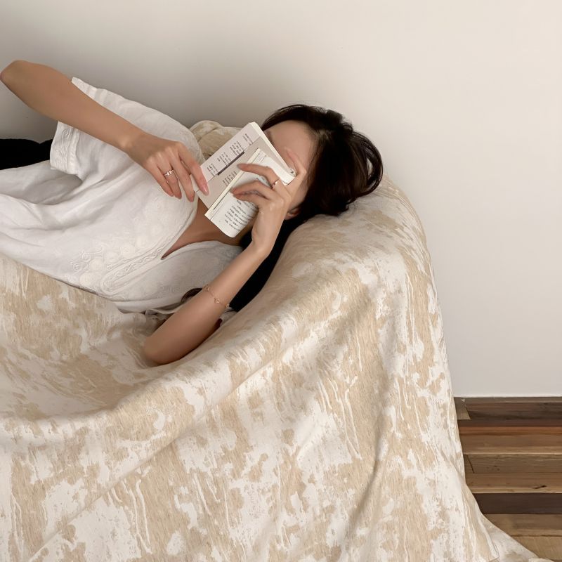 自然侘寂风高级肌理感棉麻提花盖毯沙发巾空调休闲毯