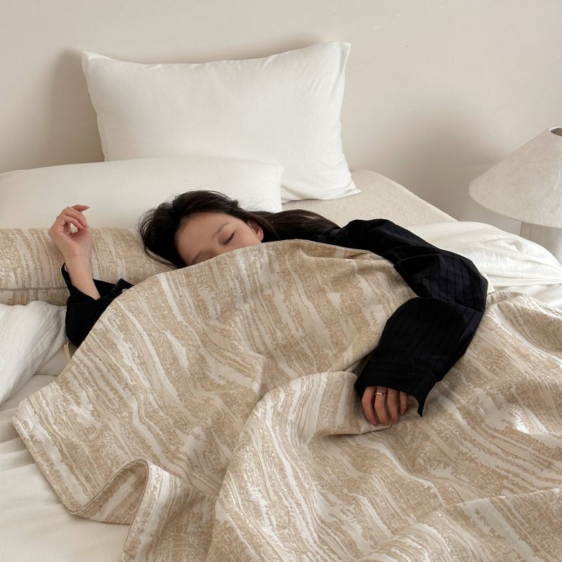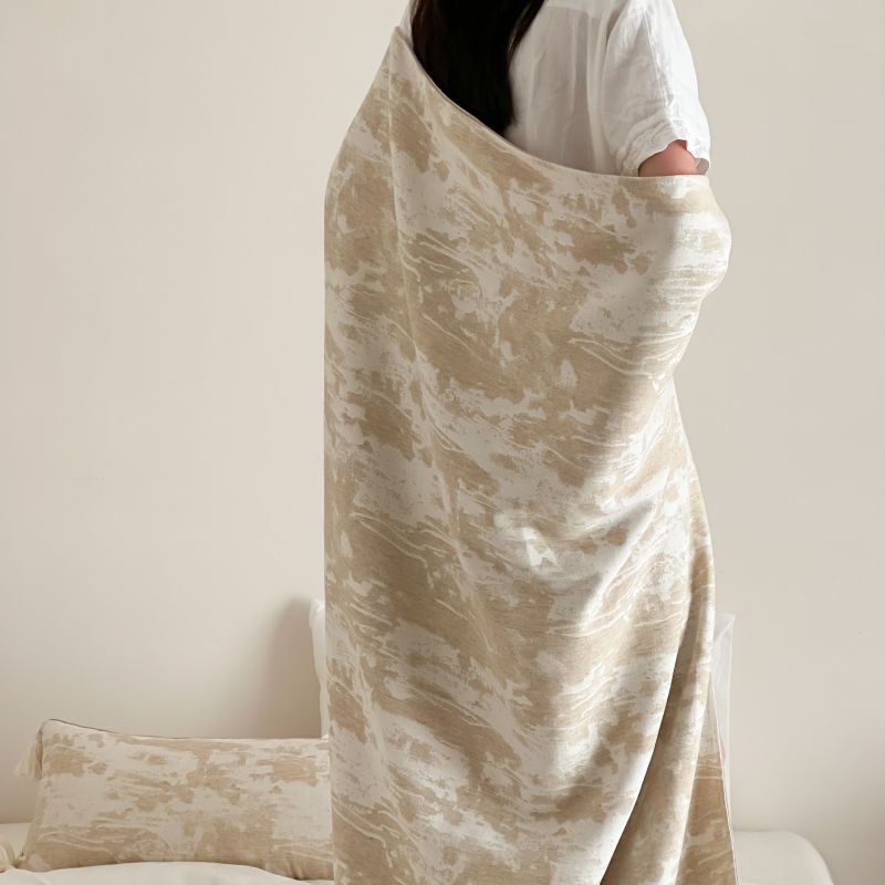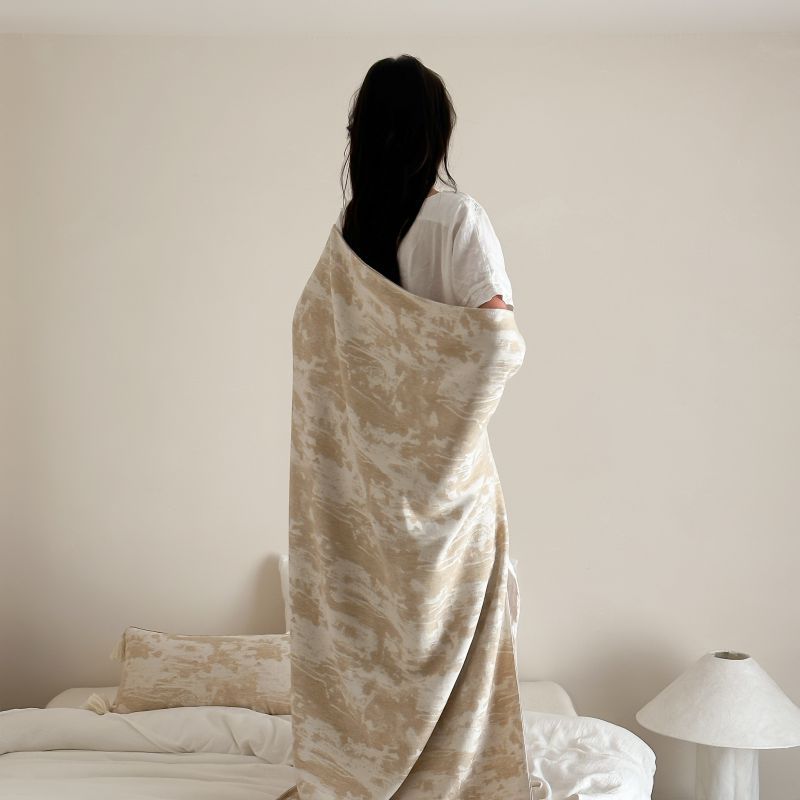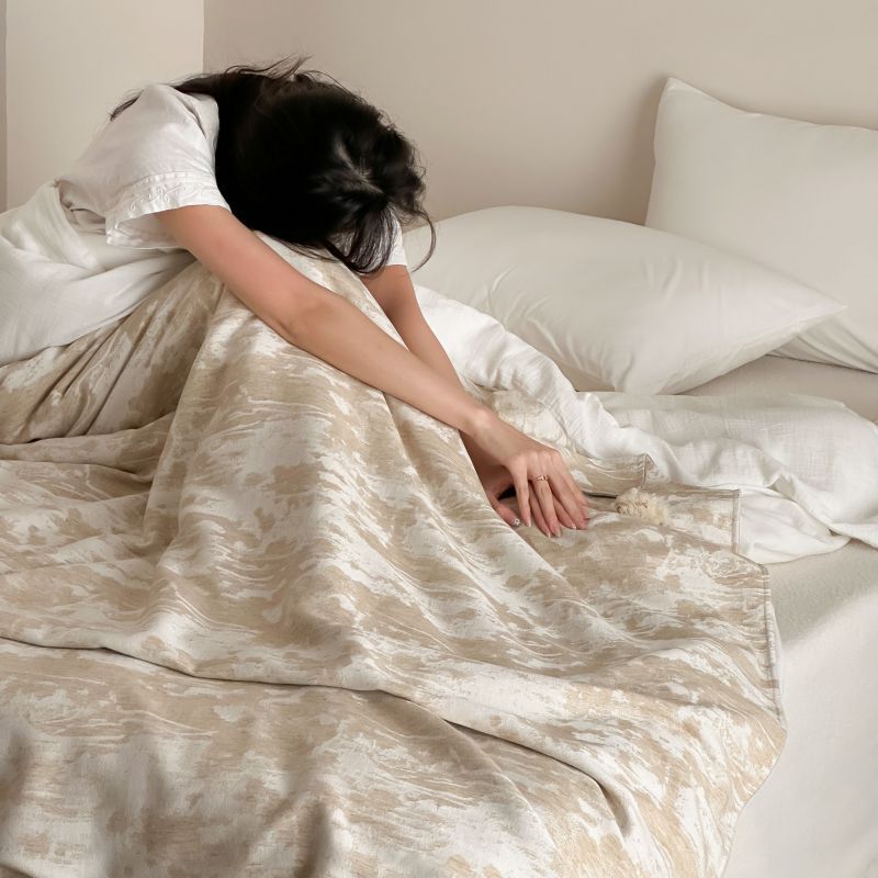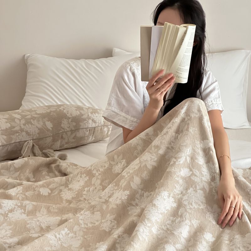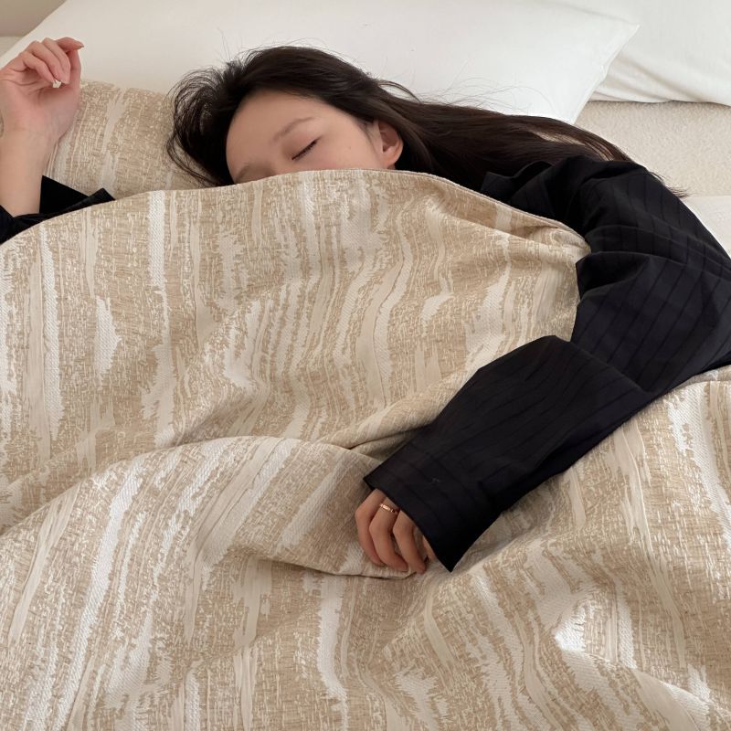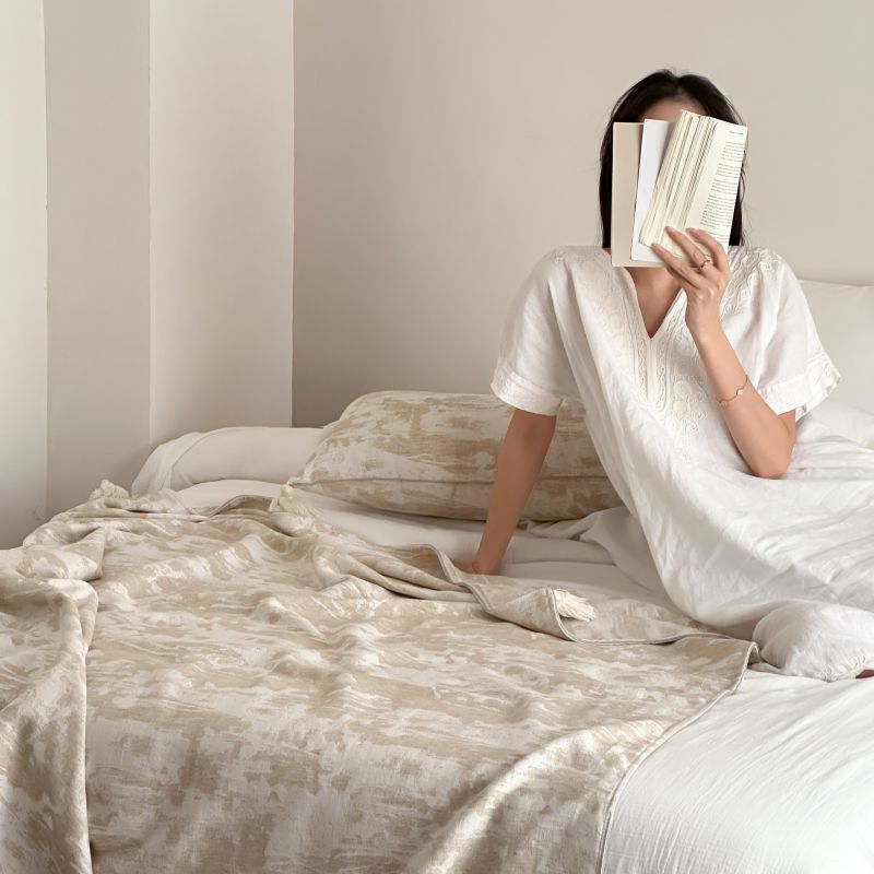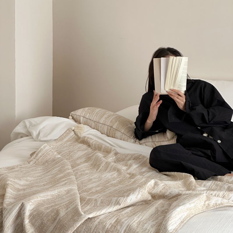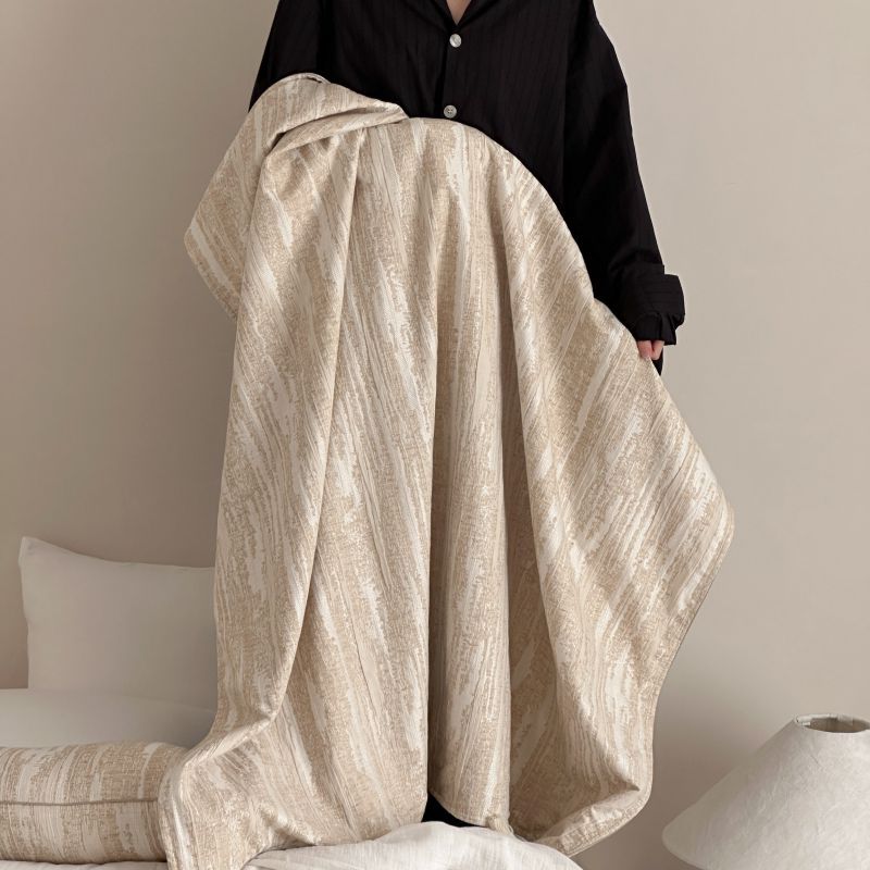 自然侘寂风高级肌理感棉麻提花盖毯沙发巾空调休闲毯