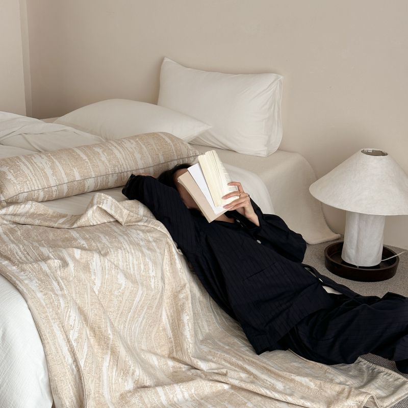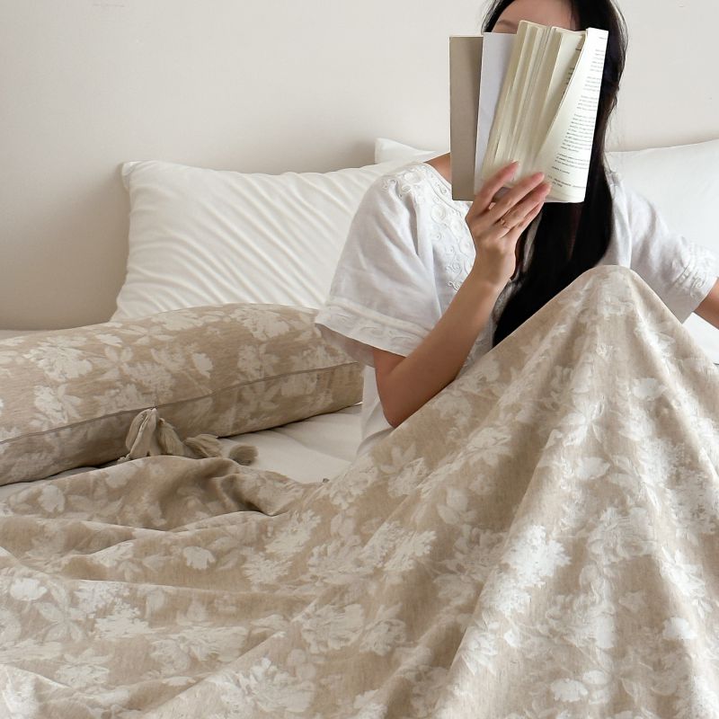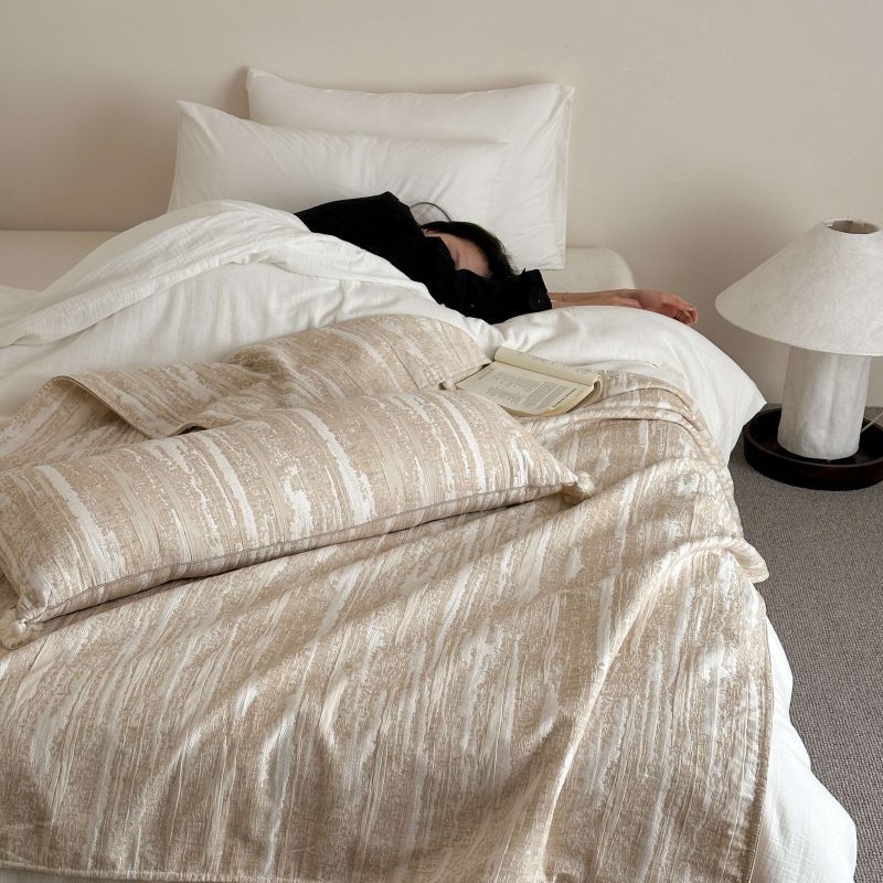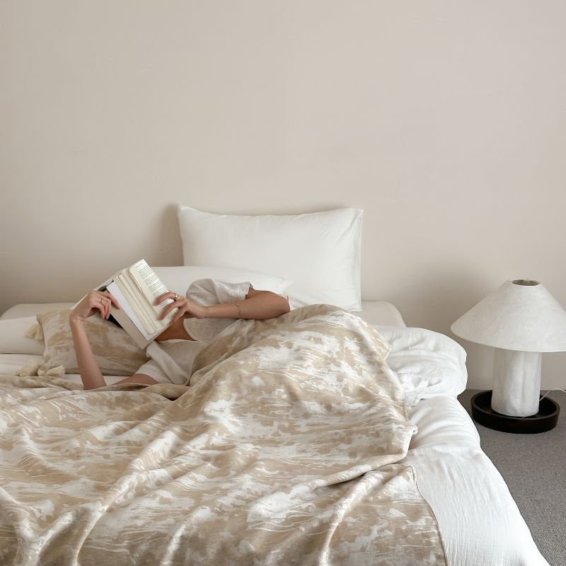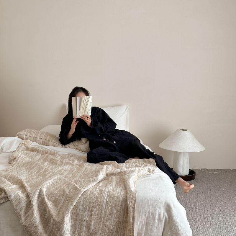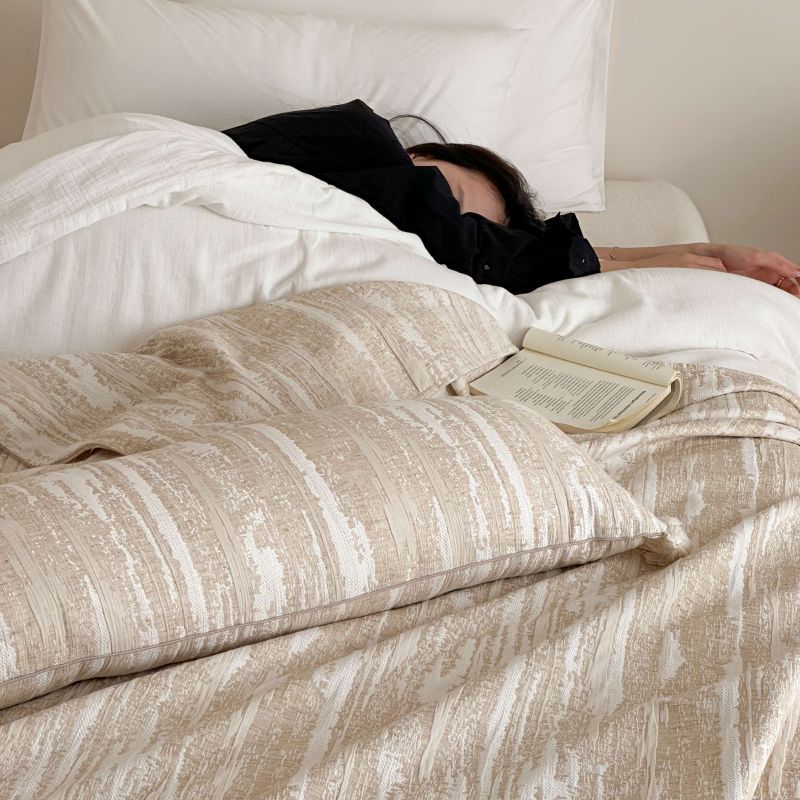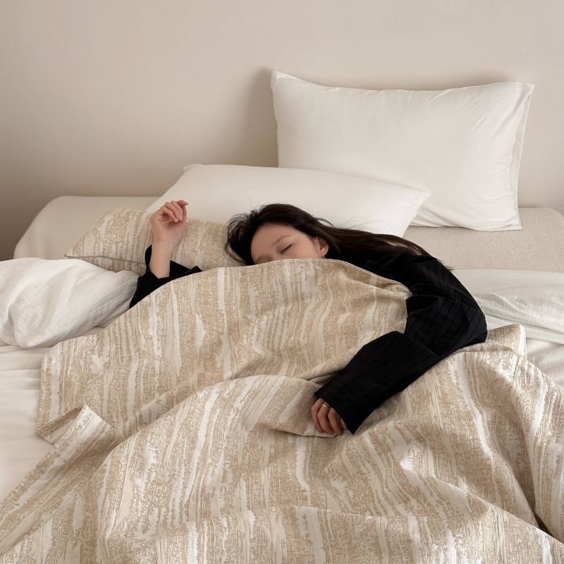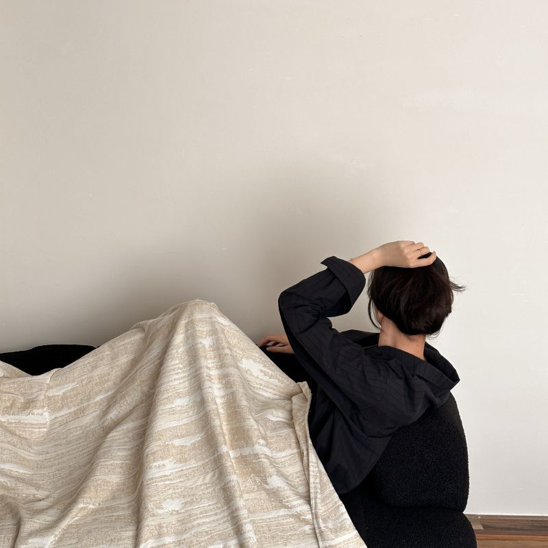 自然侘寂风高级肌理感棉麻提花盖毯沙发巾空调休闲毯