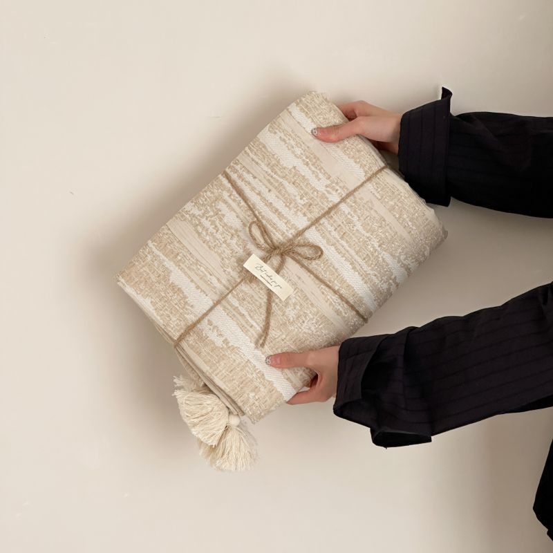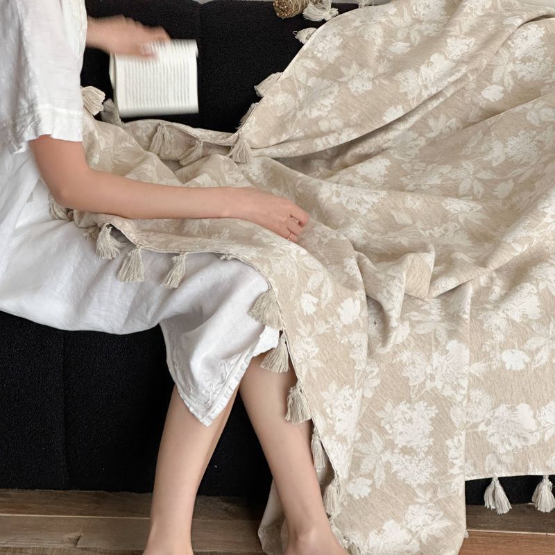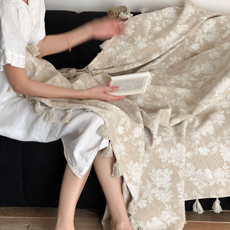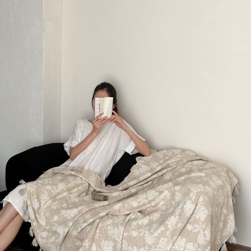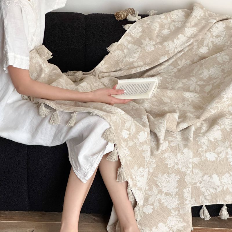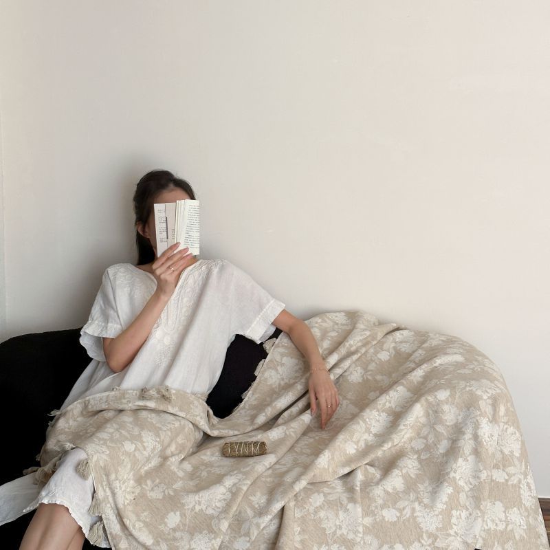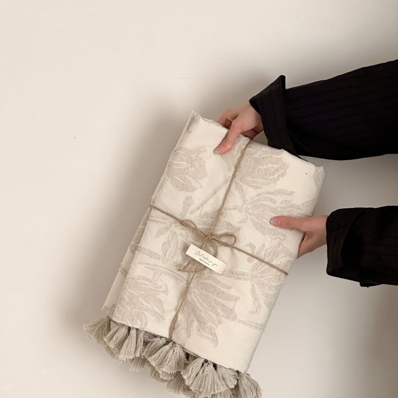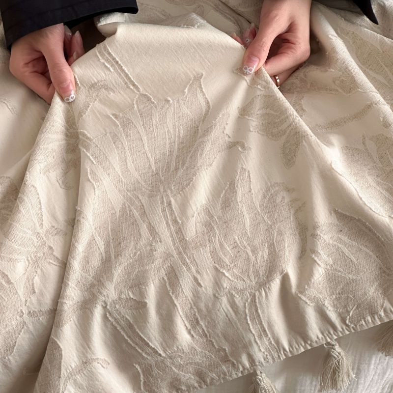 自然醒回归本真棉麻系列盖毯抱枕剪花流苏侘寂风高级感肌理纹提花午睡沙发巾空调休闲毯子MT