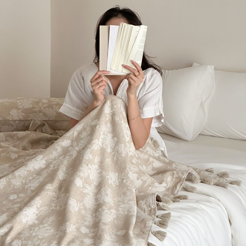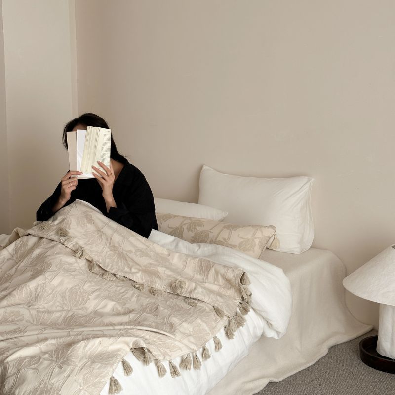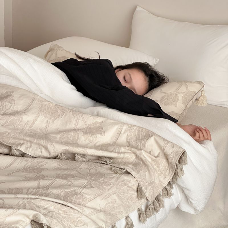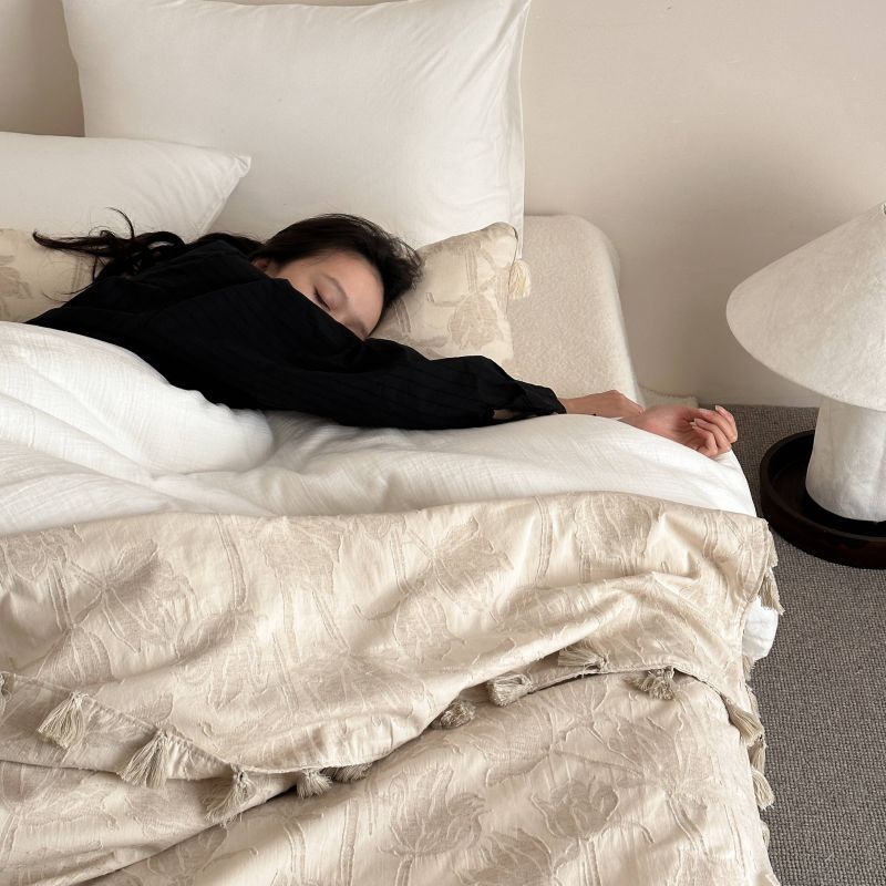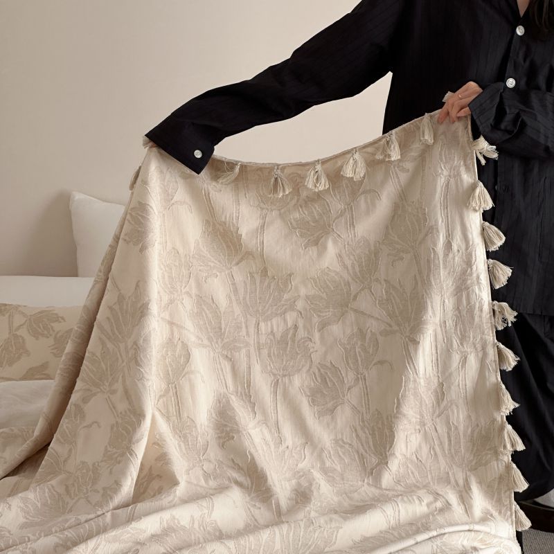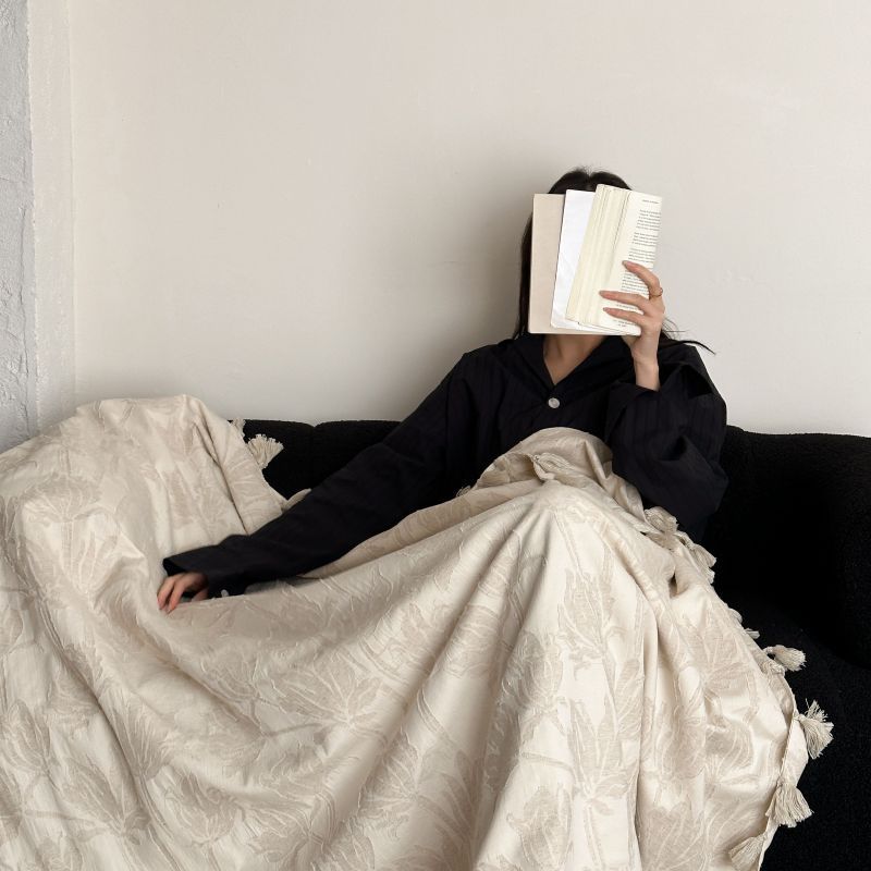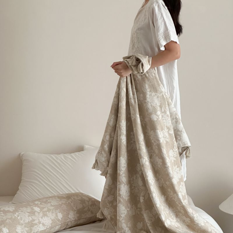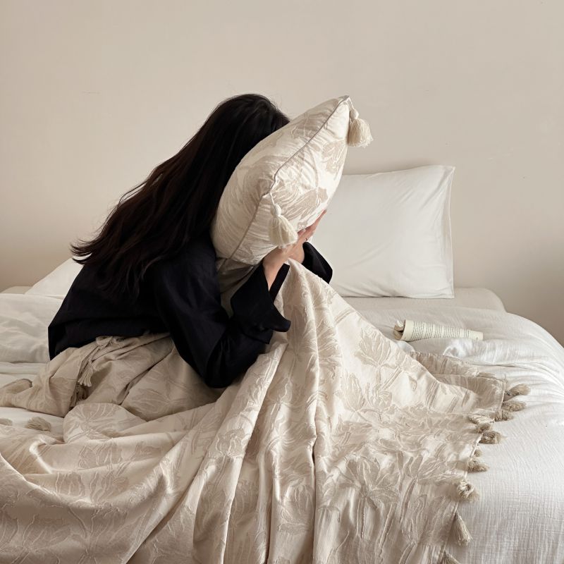 自然醒回归本真棉麻系列盖毯抱枕剪花流苏侘寂风高级感肌理纹提花午睡沙发巾空调休闲毯子MT