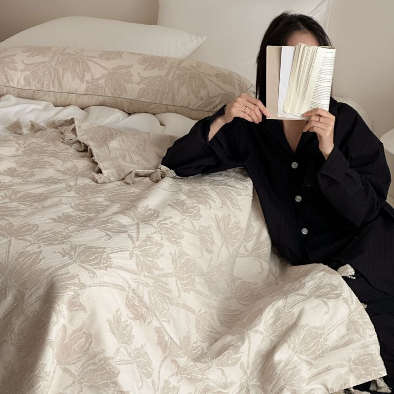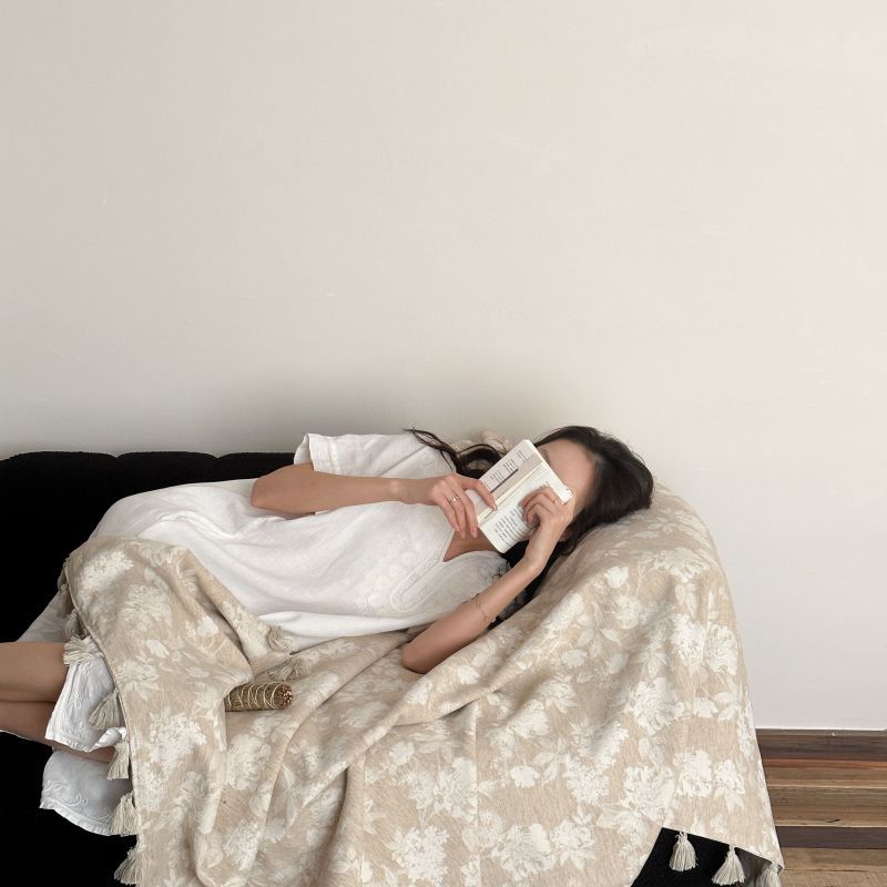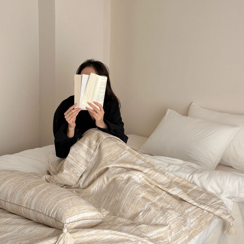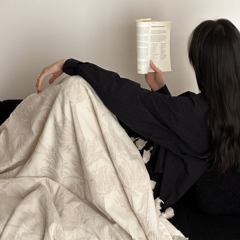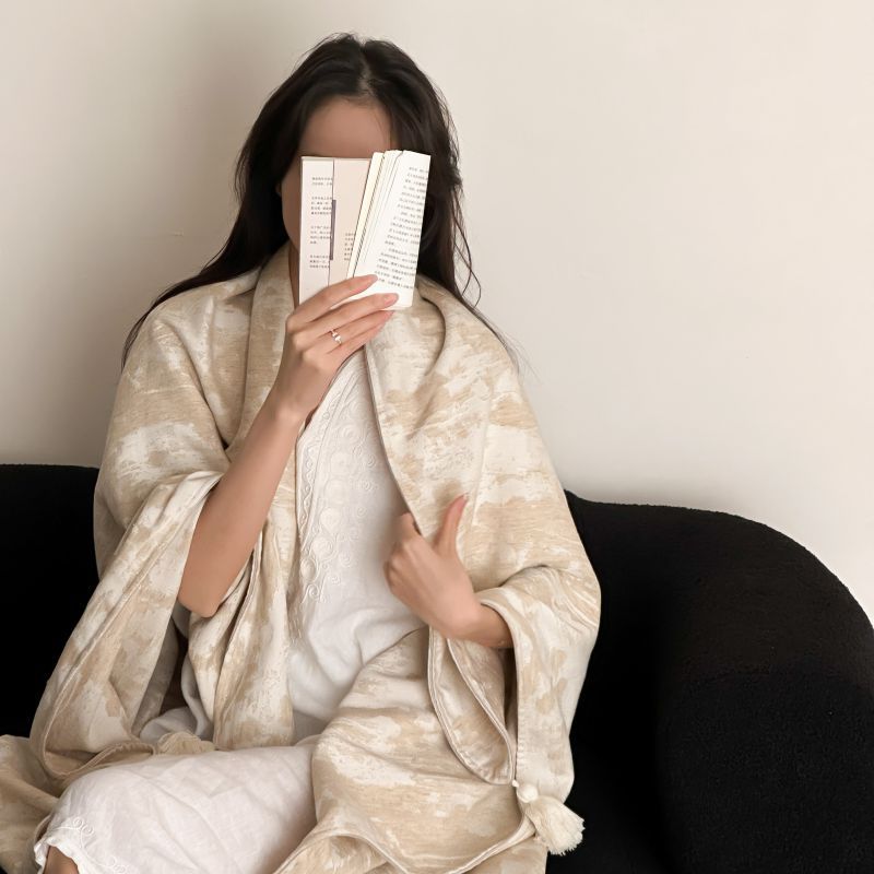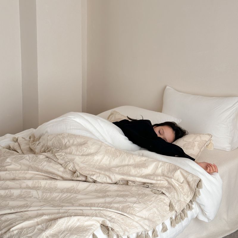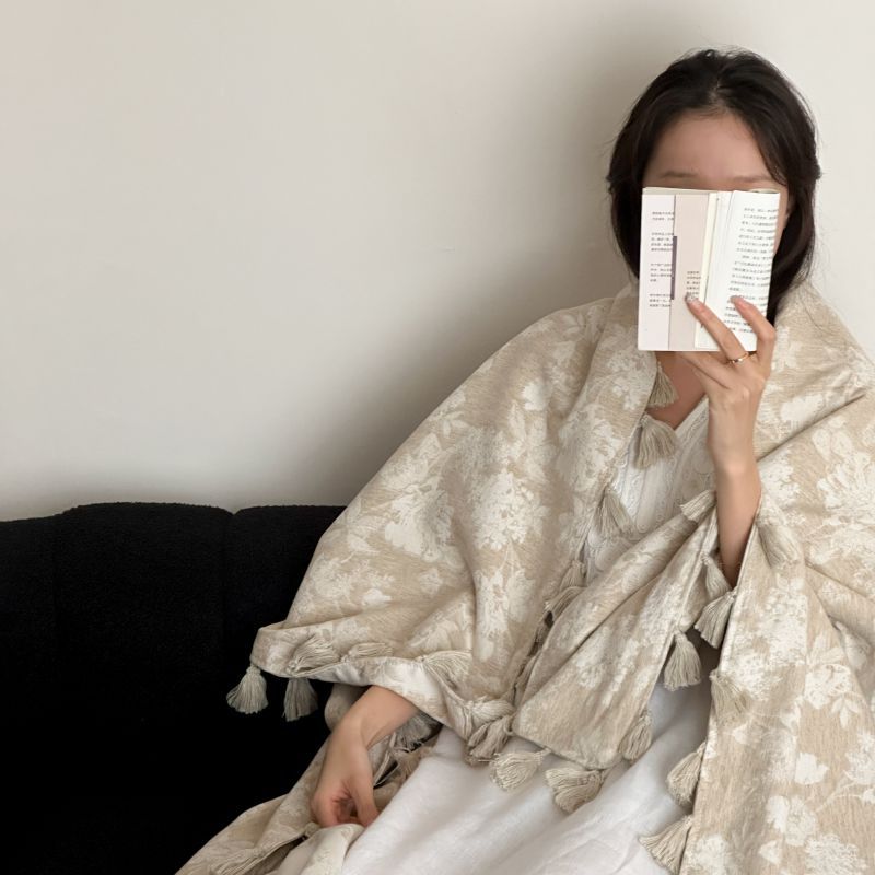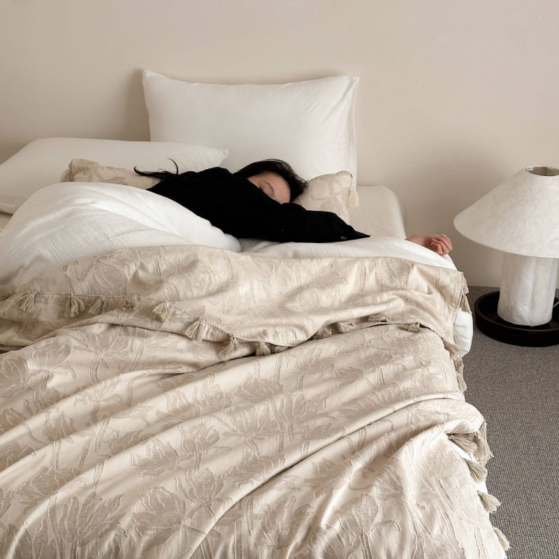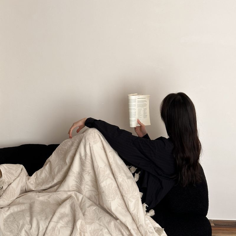 自然醒回归本真棉麻系列盖毯抱枕剪花流苏侘寂风高级感肌理纹提花午睡沙发巾空调休闲毯子MT