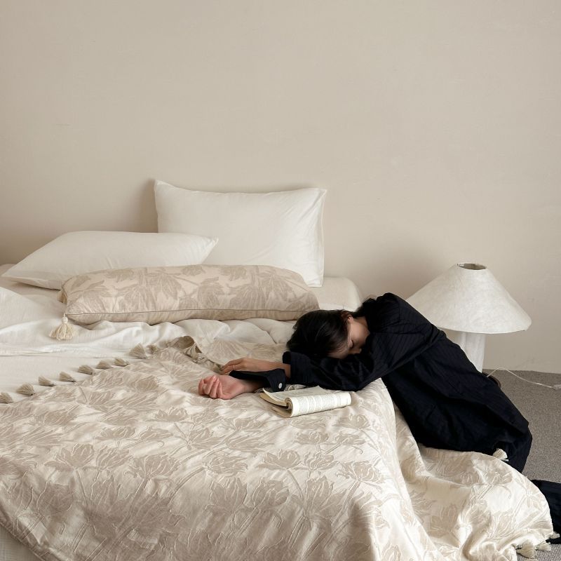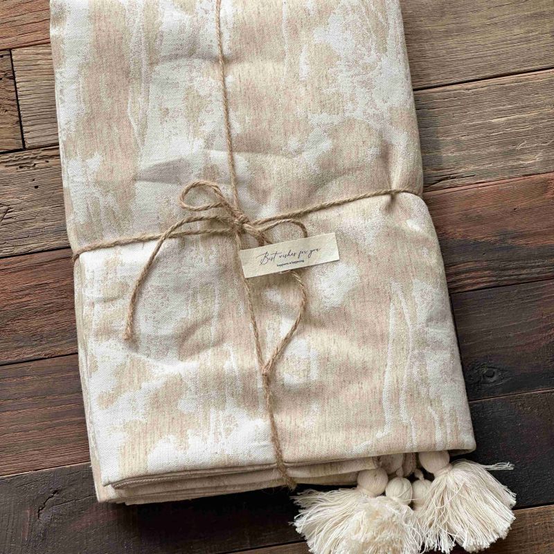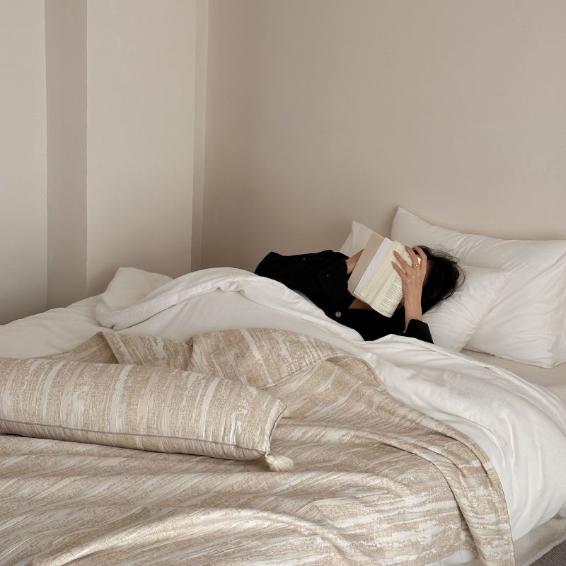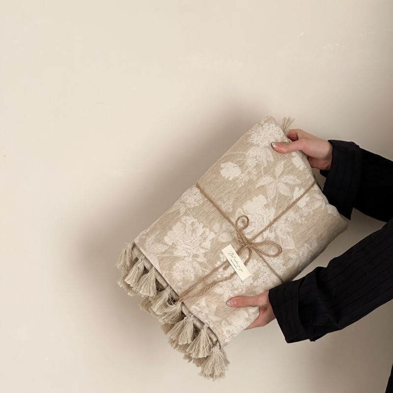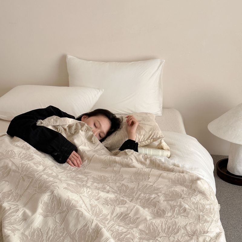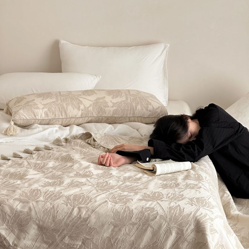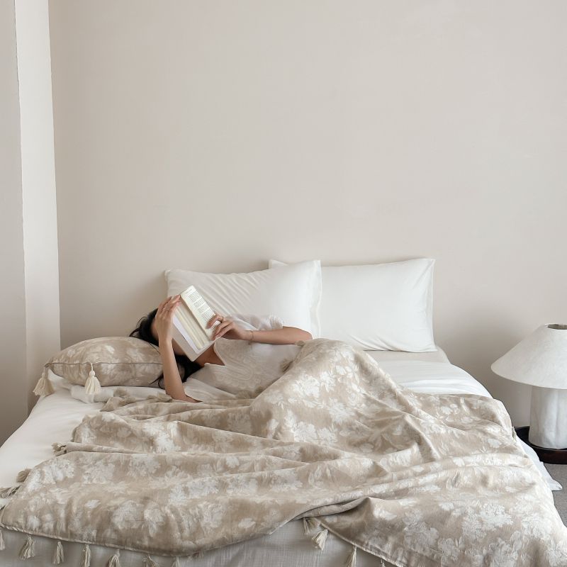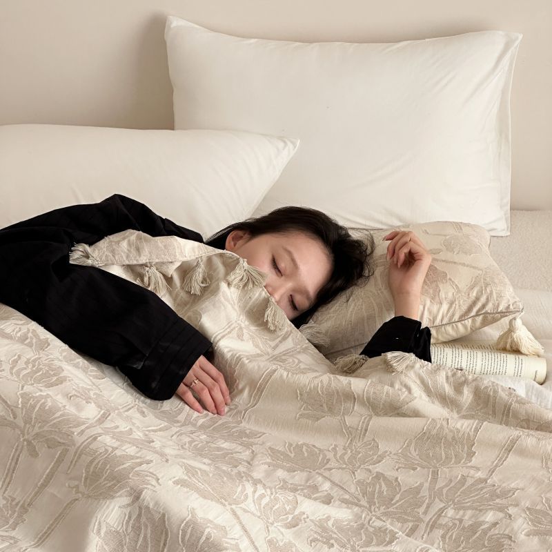 自然醒回归本真棉麻系列盖毯抱枕剪花流苏侘寂风高级感肌理纹提花午睡沙发巾空调休闲毯子MT