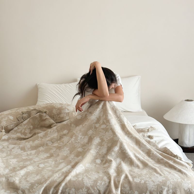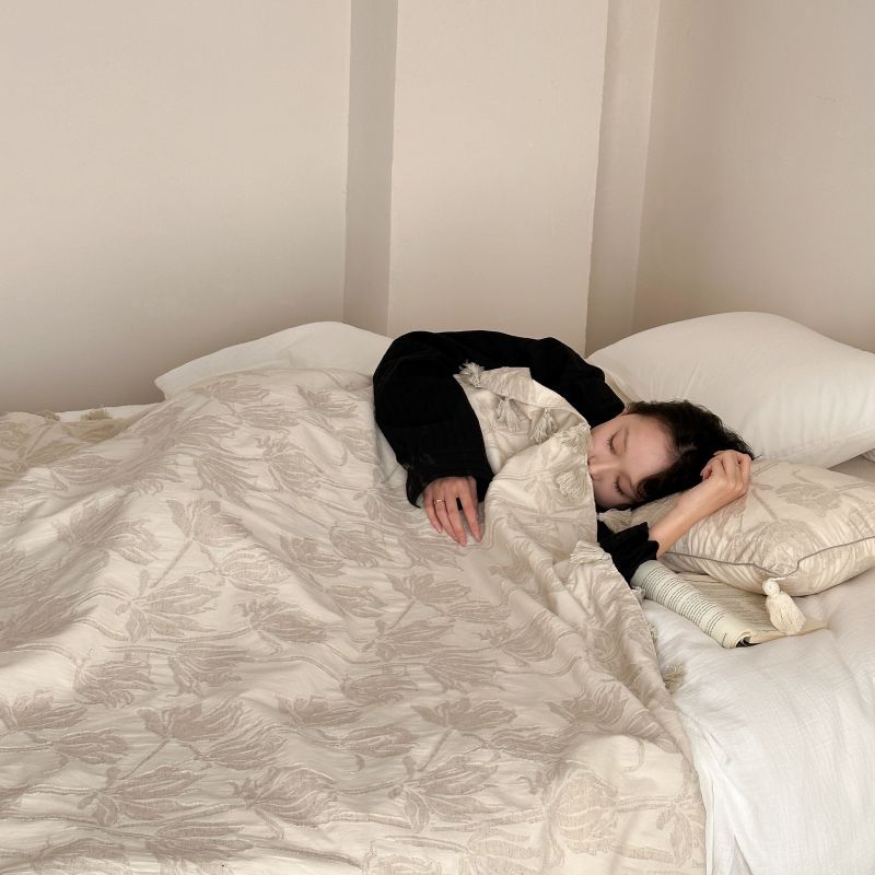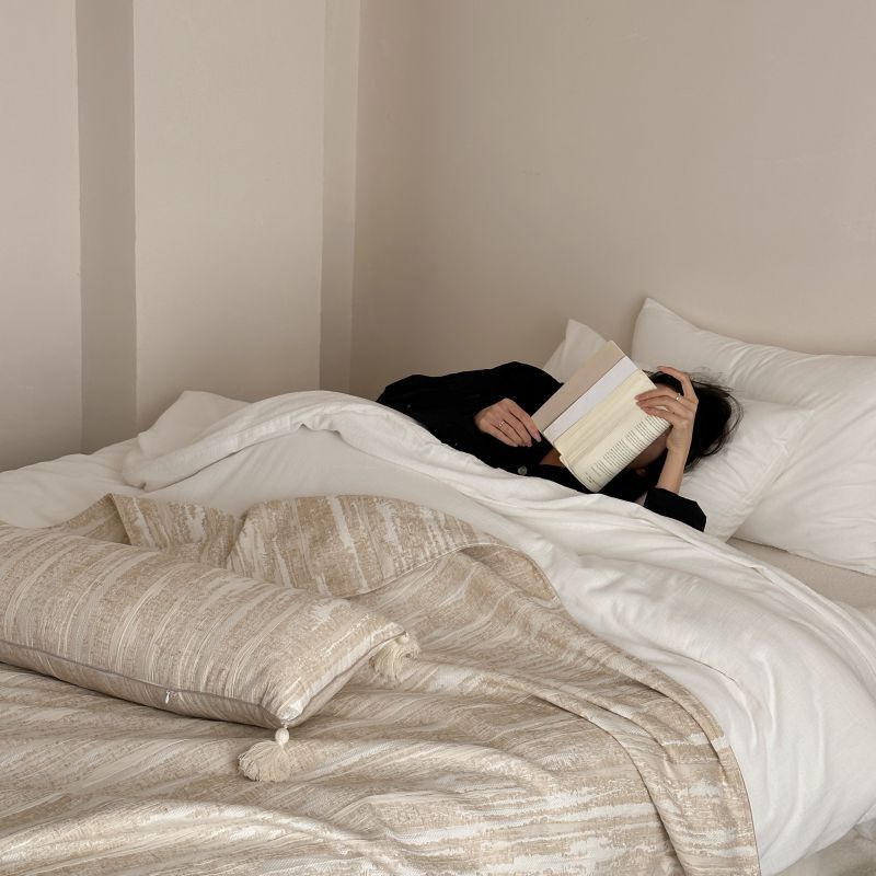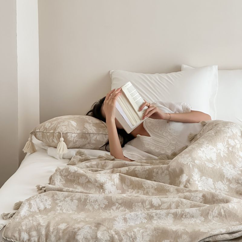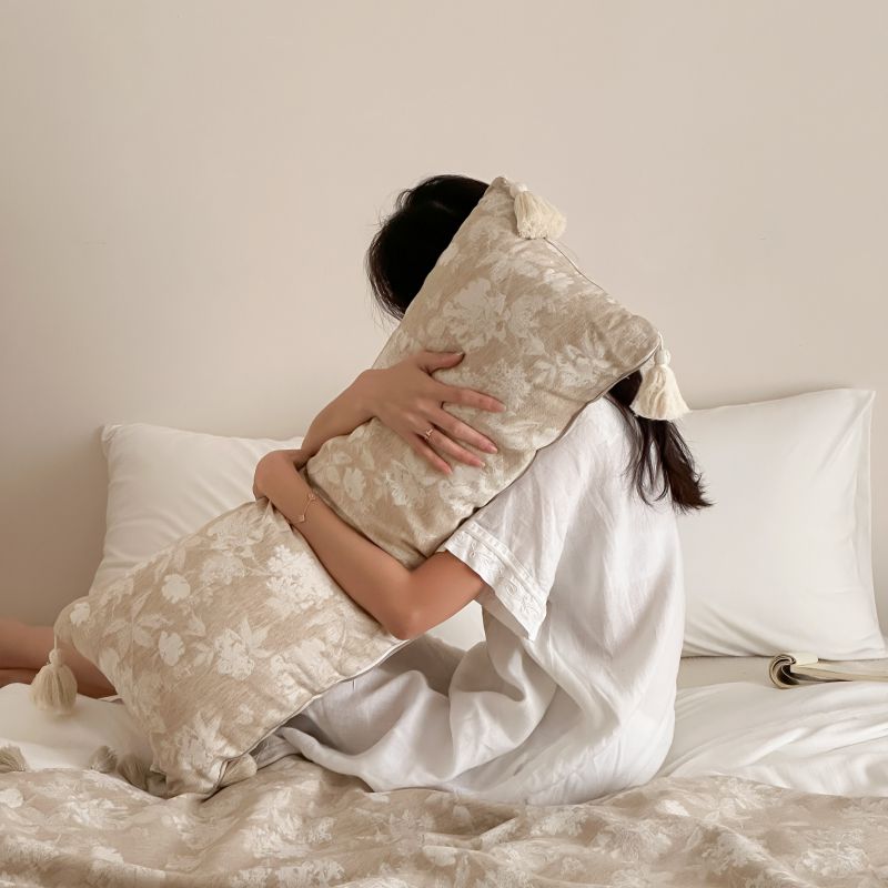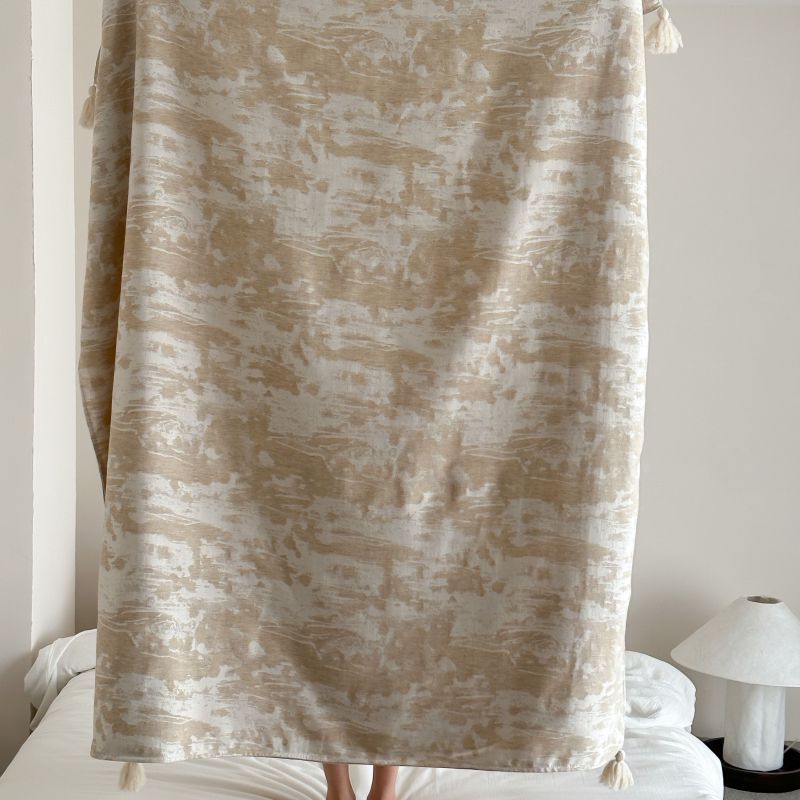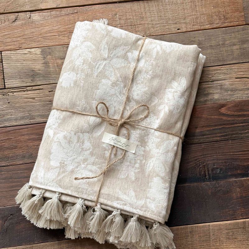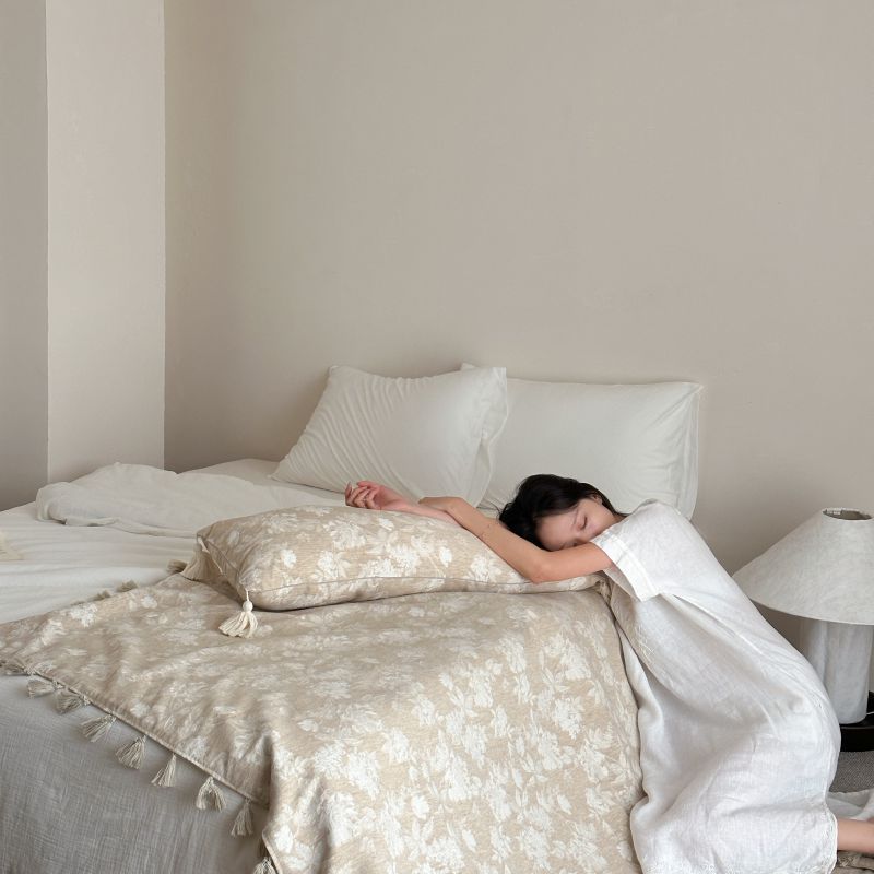 自然醒回归本真棉麻系列盖毯抱枕剪花流苏侘寂风高级感肌理纹提花午睡沙发巾空调休闲毯子MT