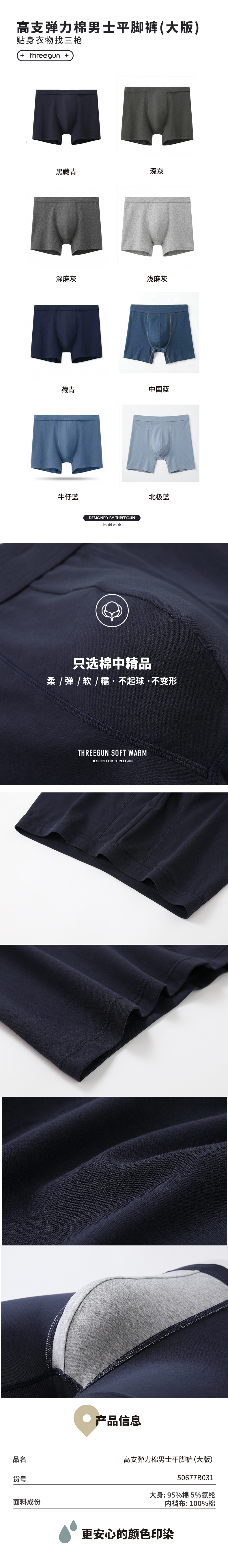 Threegun三枪 高支弹力棉男士平脚裤(大版)-50677B031