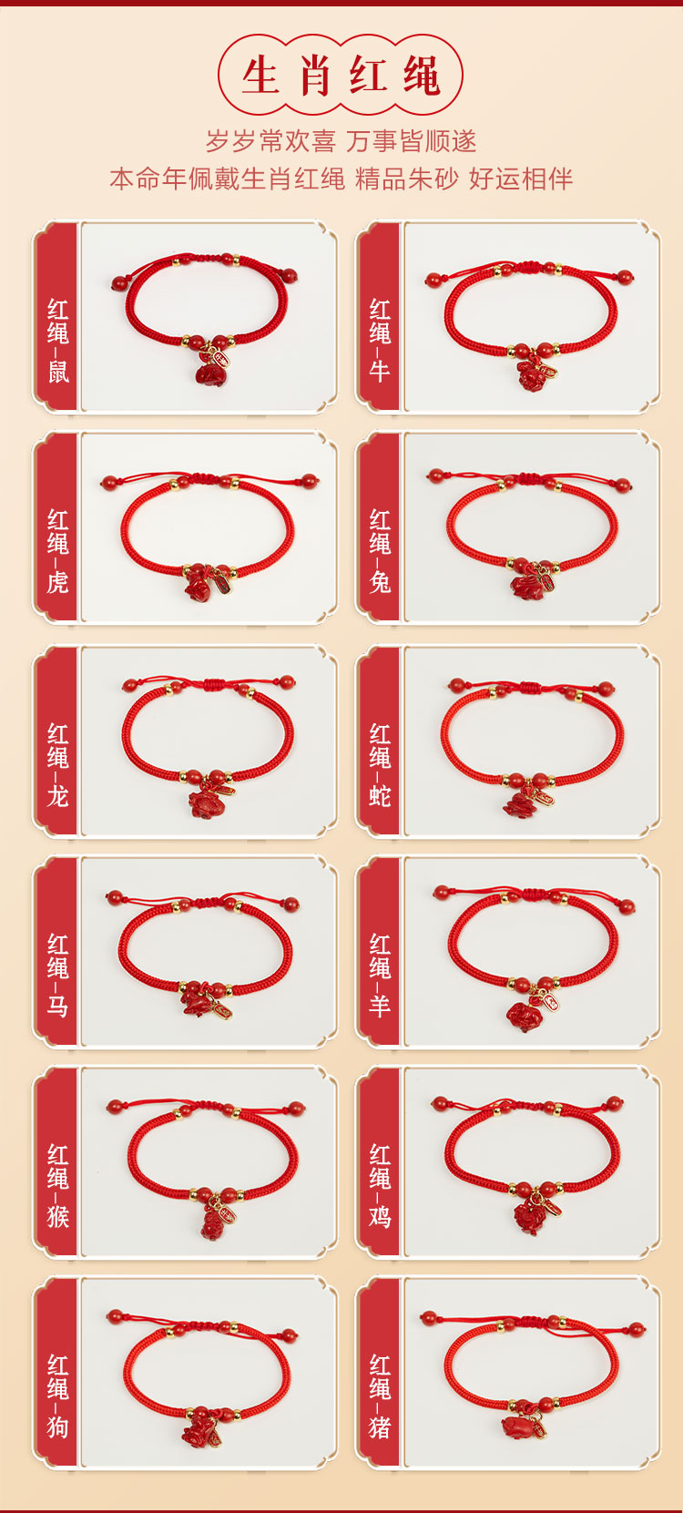 牛首山文创牛守万福十二生肖红绳生肖编织手链生日礼物