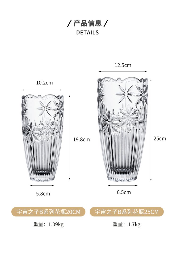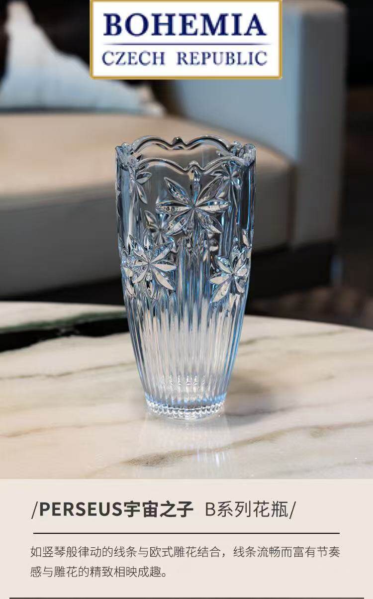 捷克原装进口BOHEMIA经典刻花水晶玻璃花瓶家居欧式台面摆件花瓶波西米亚宇宙之子B系列花瓶20cm