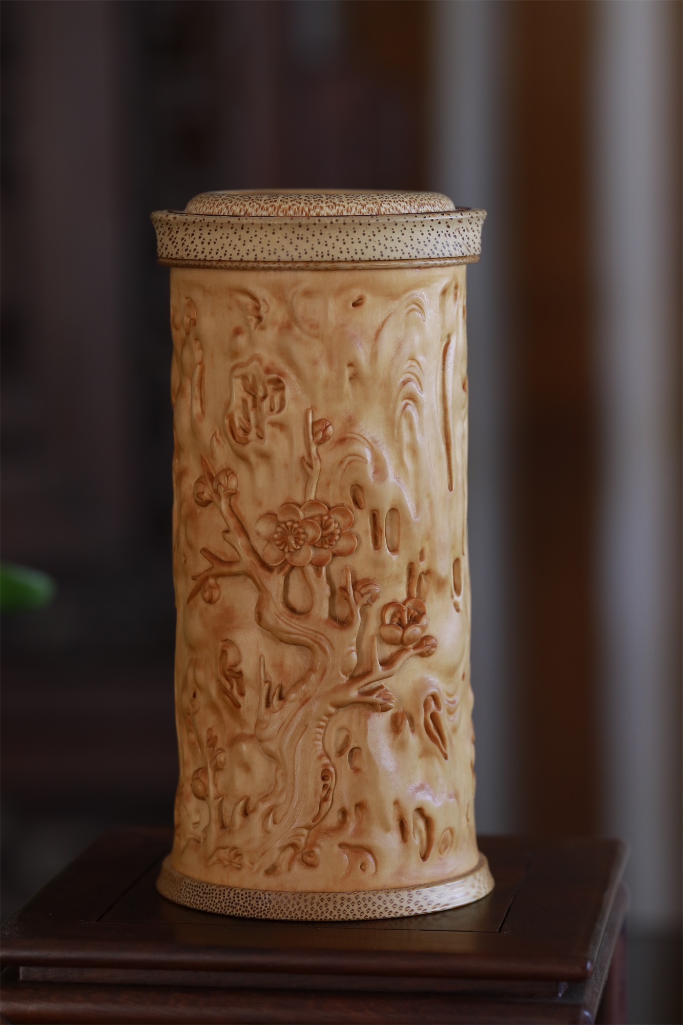 梅花°黄杨木精工茶叶罐