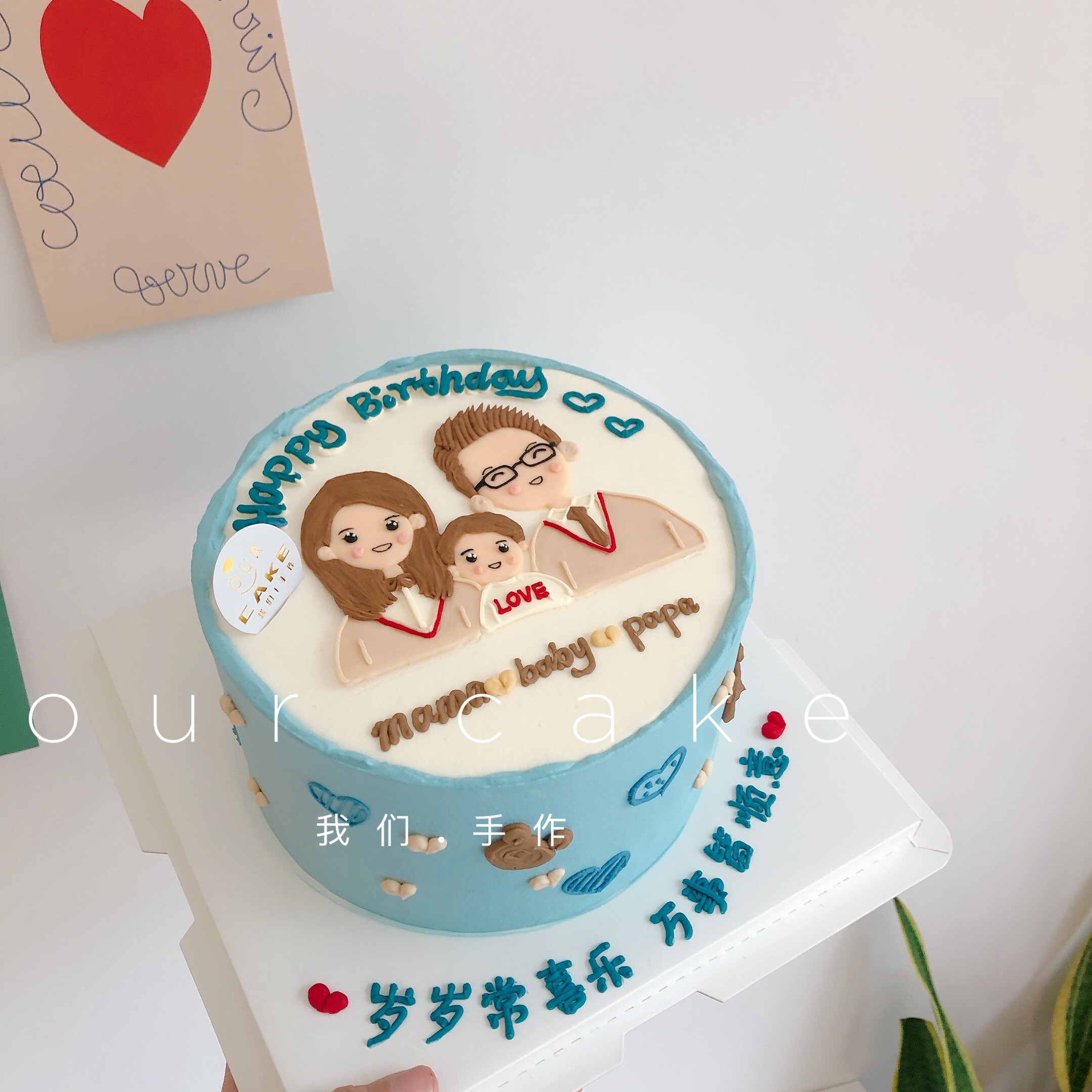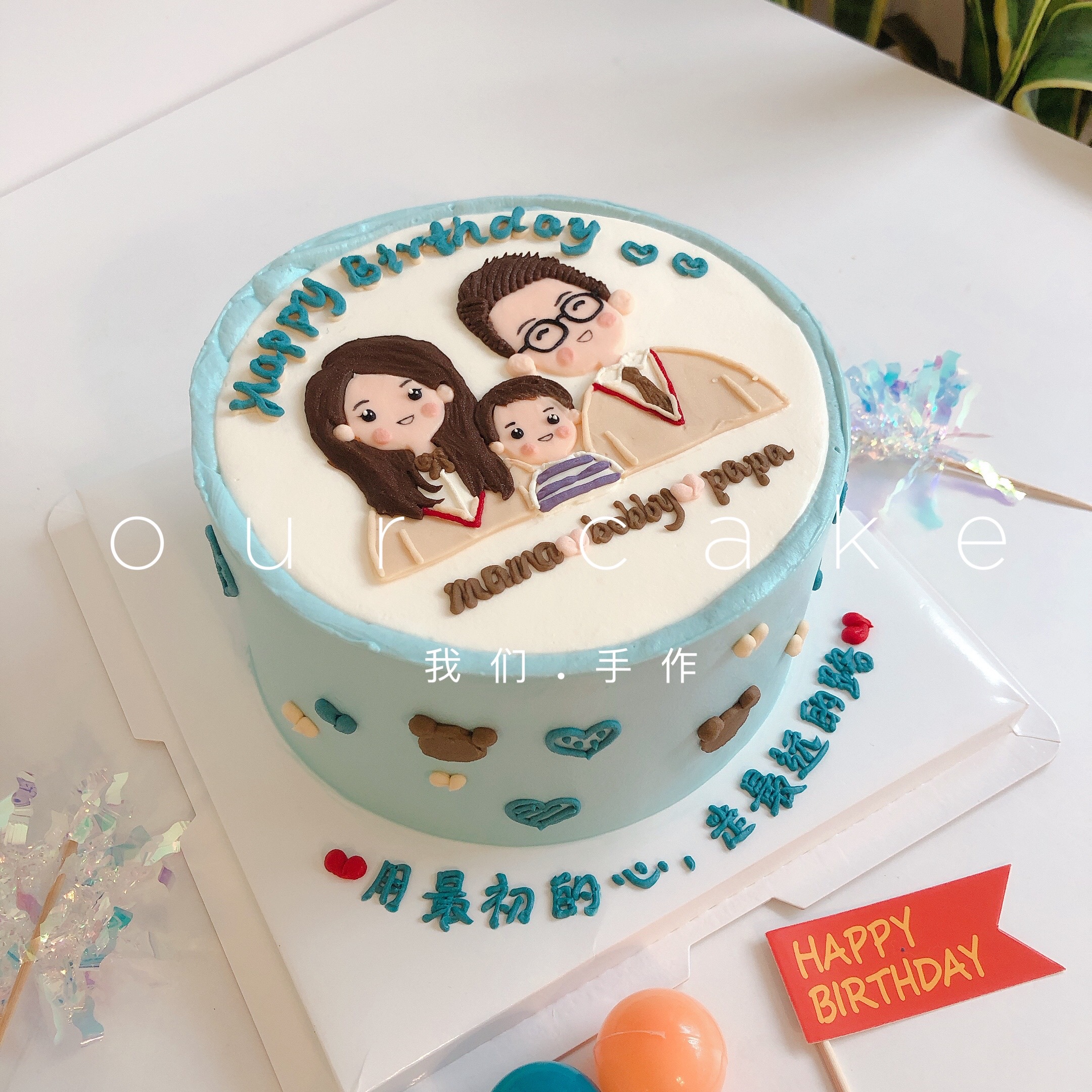 一家人/一家三口手绘蛋糕蓝色系-低糖处理无添加