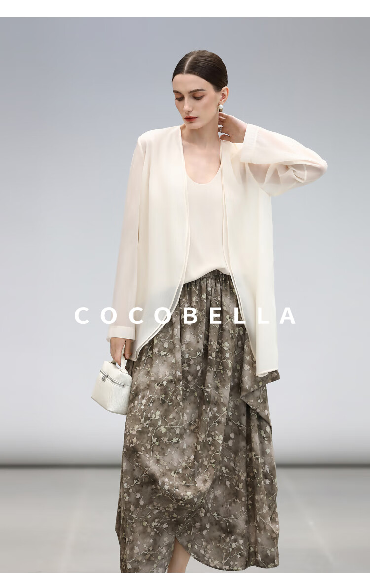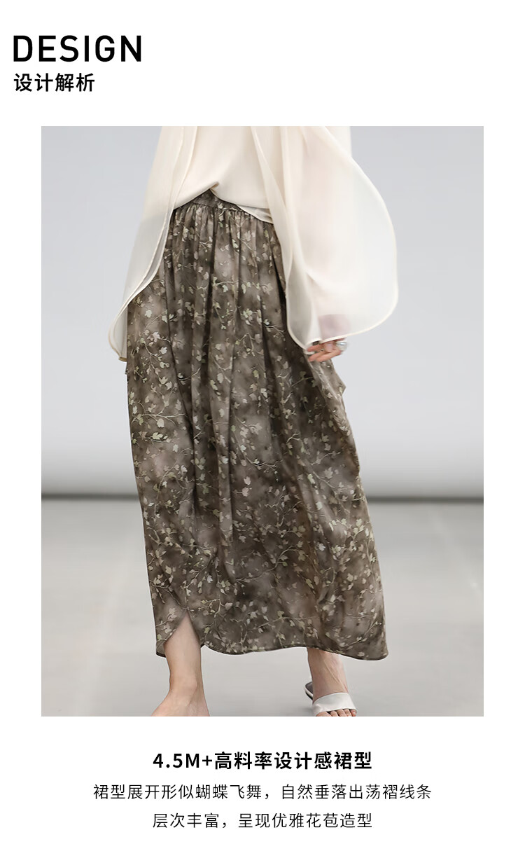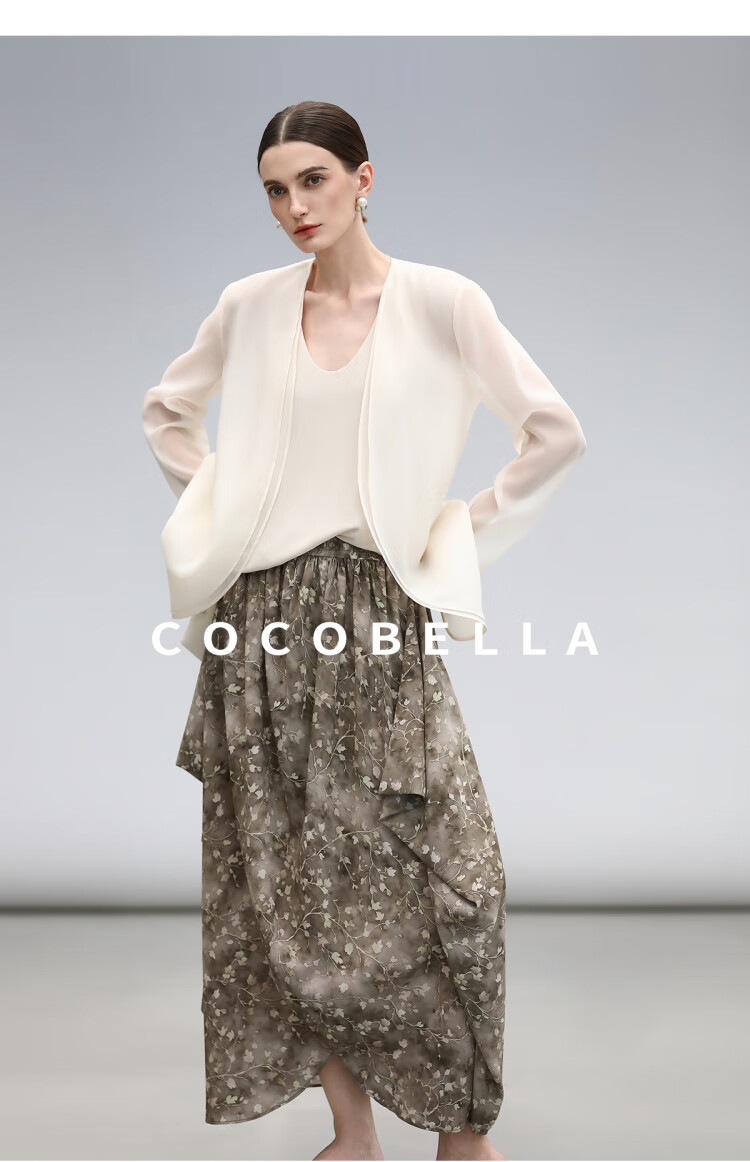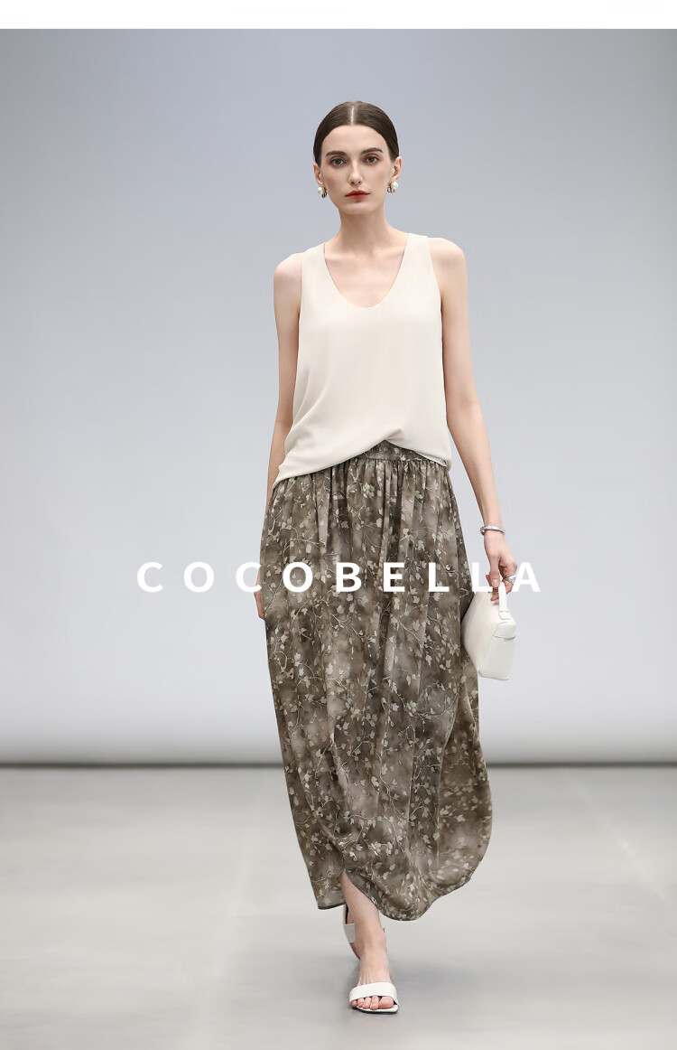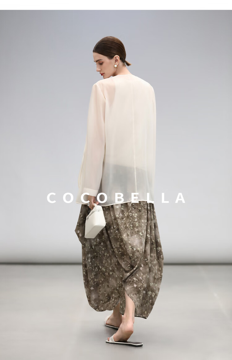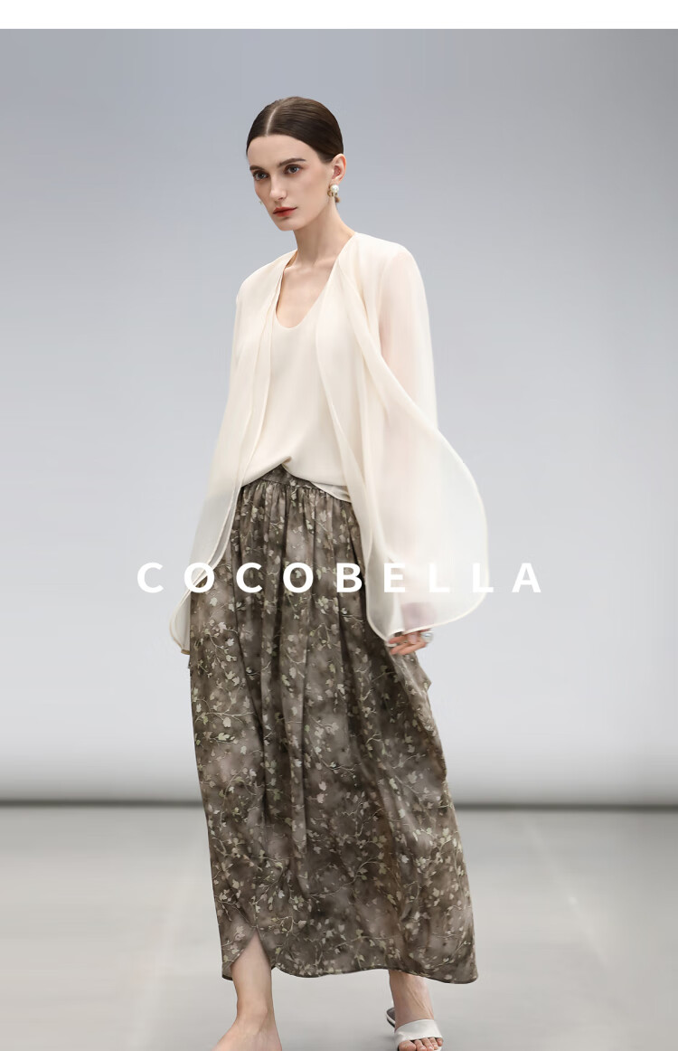 COCOBELLA[伽罗往事]设计师款立体花苞半身裙夏雪纺长裙HS3068
