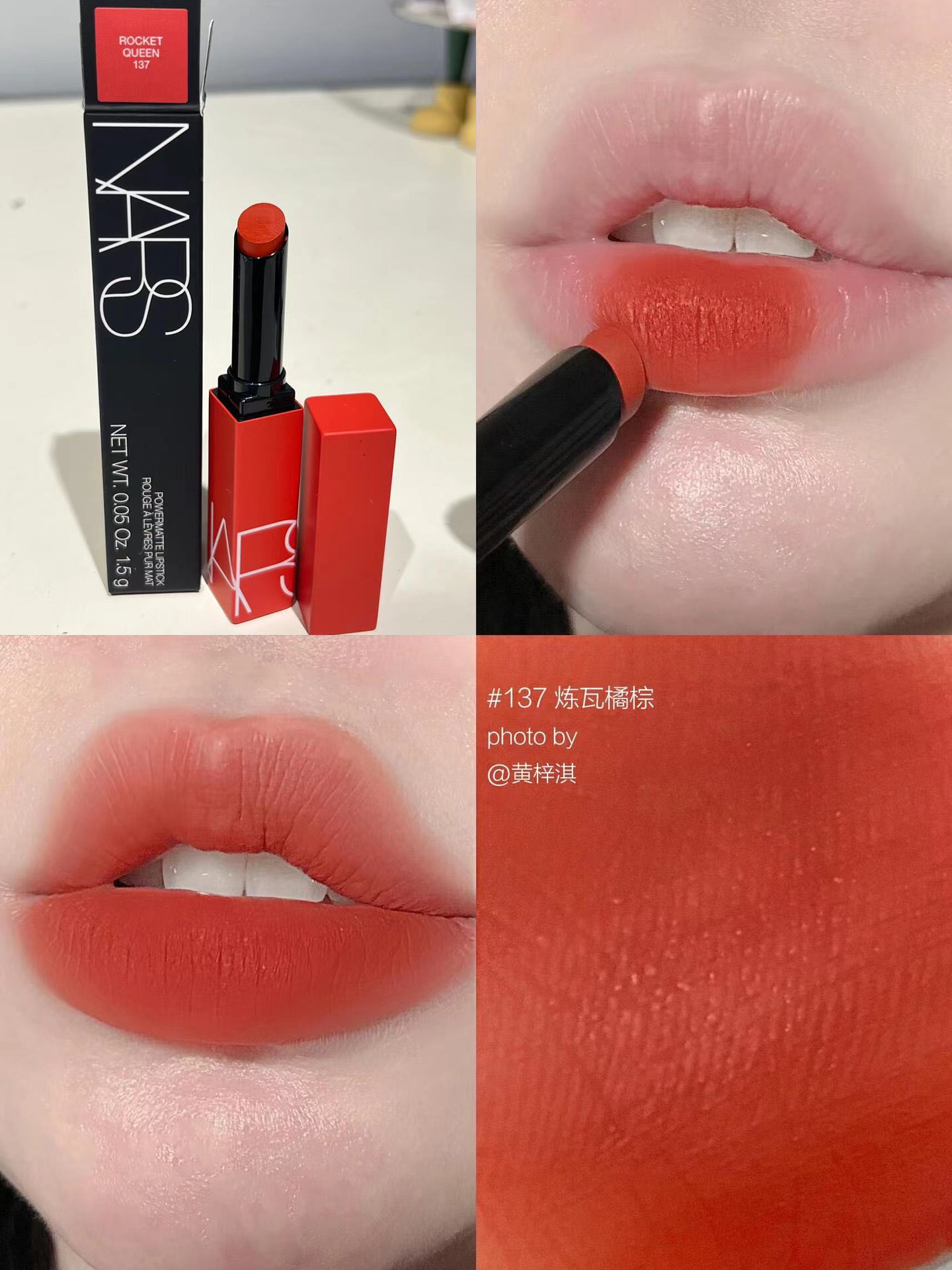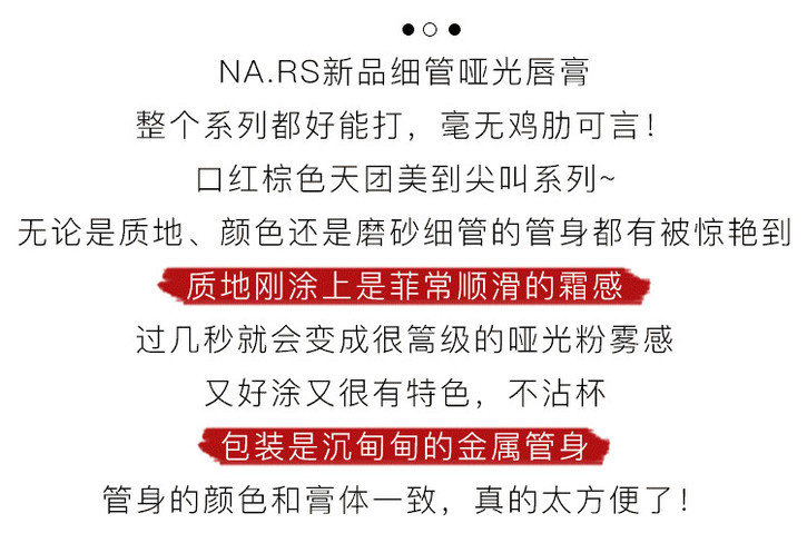 【品名】Nars纳斯磨砂细管哑光唇膏口红#132龙女红麂绒/ #137练瓦橘棕