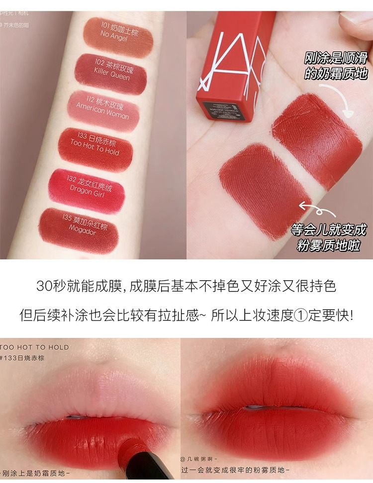【9.7王炸割肉价】Nars纳斯磨砂细管哑光唇膏口红#132龙女红麂绒(限25.10)/ #137练瓦橘棕(限26.4)