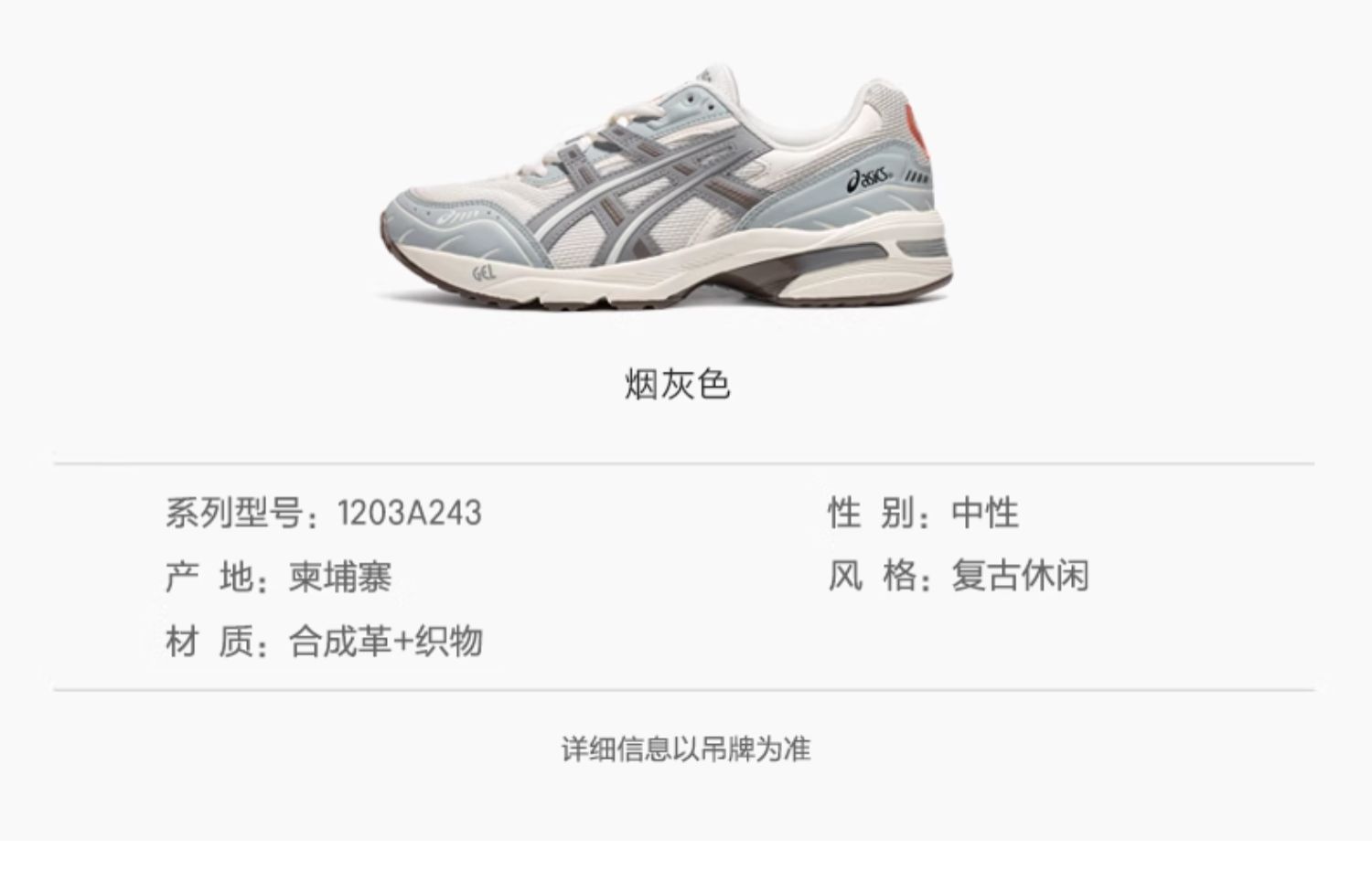 品名:亚瑟士(asics)GEL-1090 运动休闲鞋