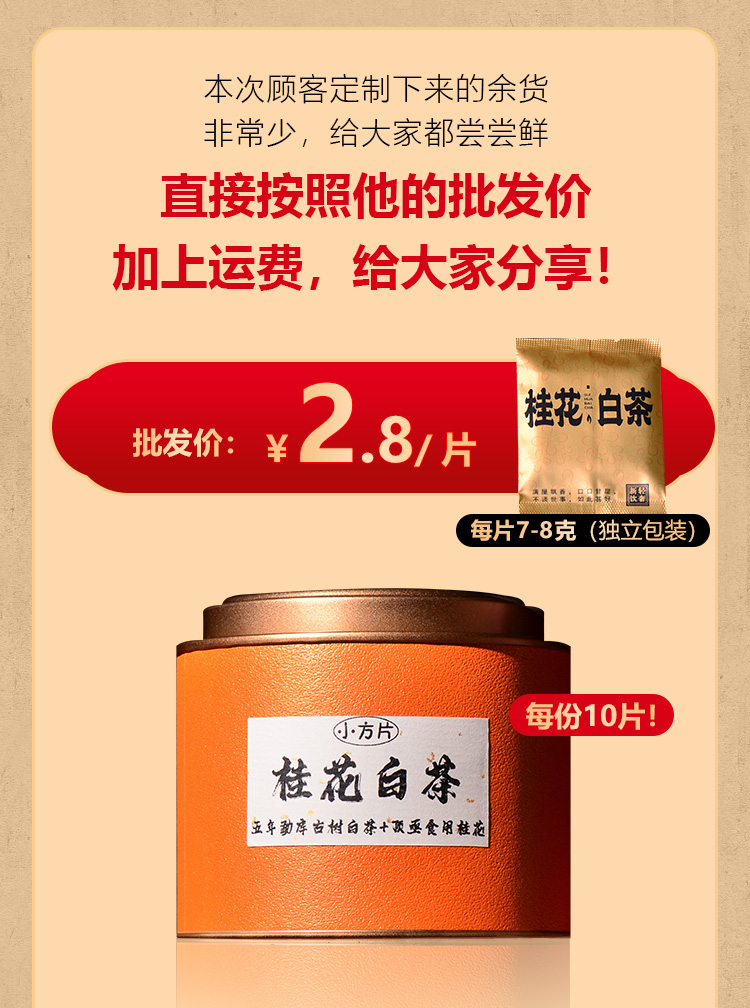 至高等级,小量试制!【桂花白茶小方片】6A级食用桂花,直接到顶!加云南5年陈老白茶!