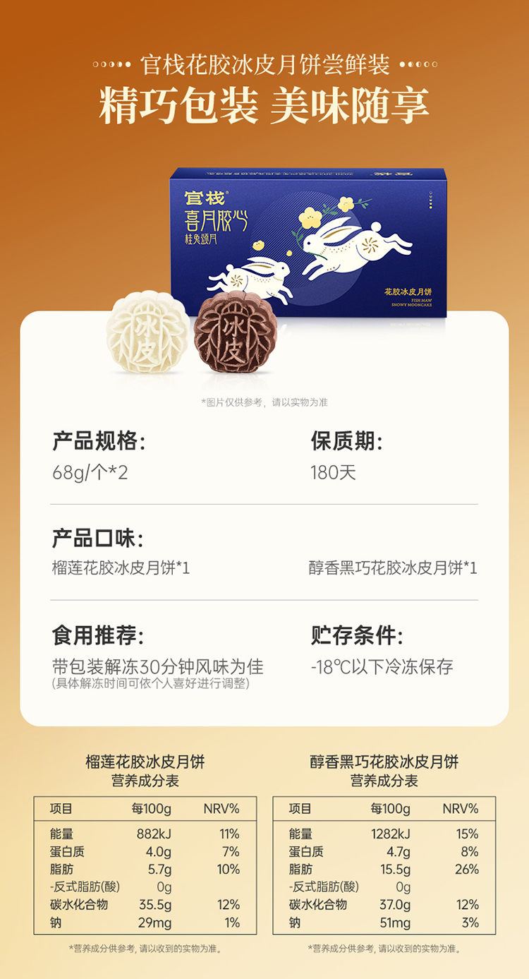 【限时特惠】官栈 花胶冰皮月饼尝鲜装(68g*2个)