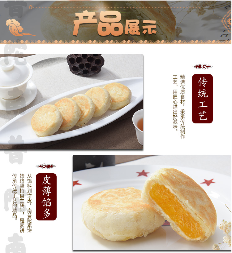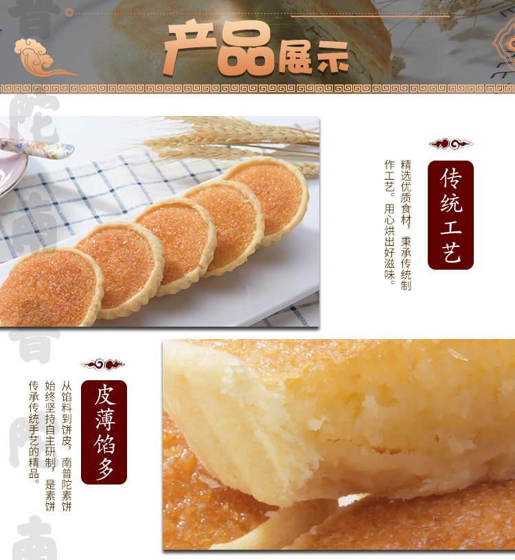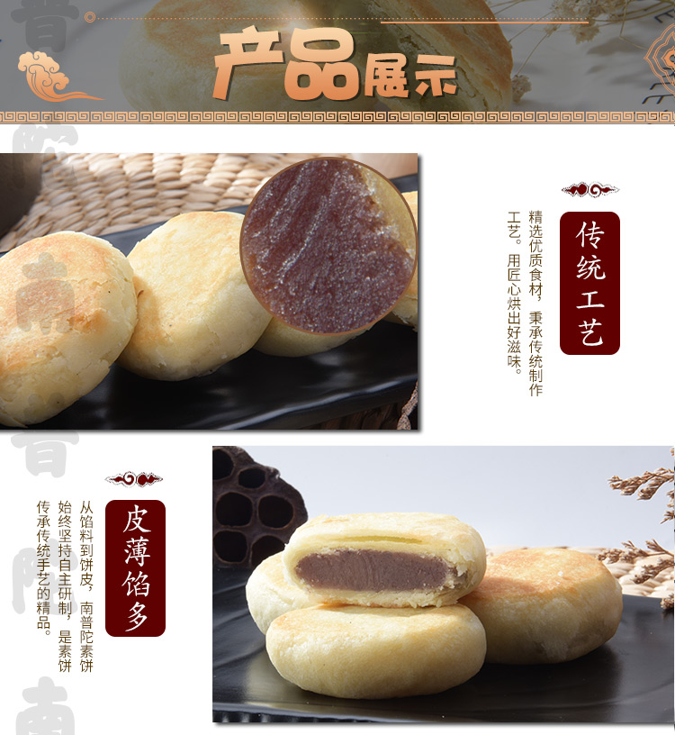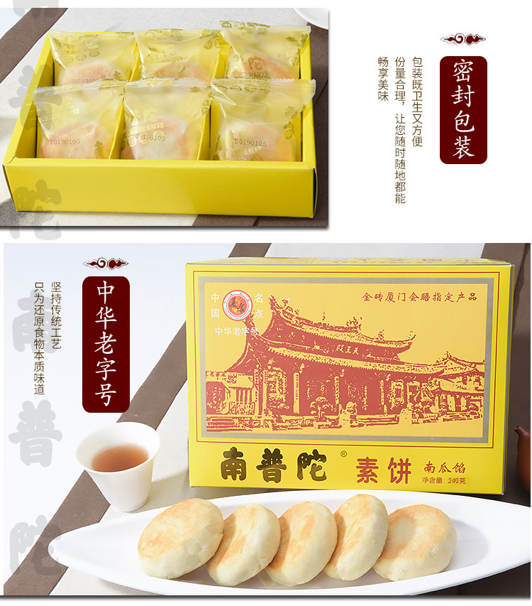 中华老字号,非物质文化遗产----南普陀素饼五盒装(绿豆馅饼、椰子饼、南瓜馅饼、红豆馅饼、绿茶馅饼、菩提苏、玫瑰花酥)随机五盒