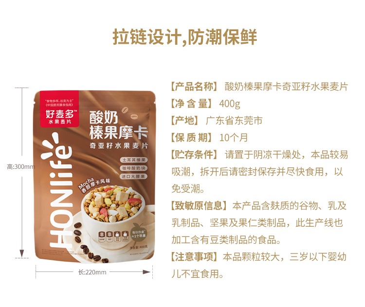 【买2赠2】好麦多\HONlife奇亚籽王牌水果麦片组合(1188g/组)[福利品]