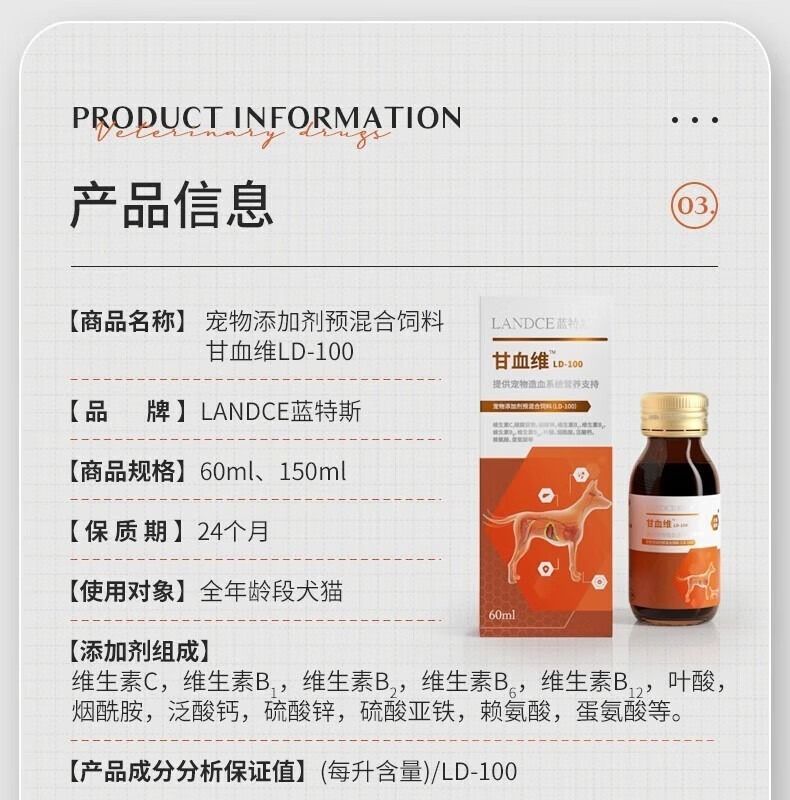 【补血肝精】蓝特斯甘血维猫咪狗狗术后营养补充保肝贫血60ml