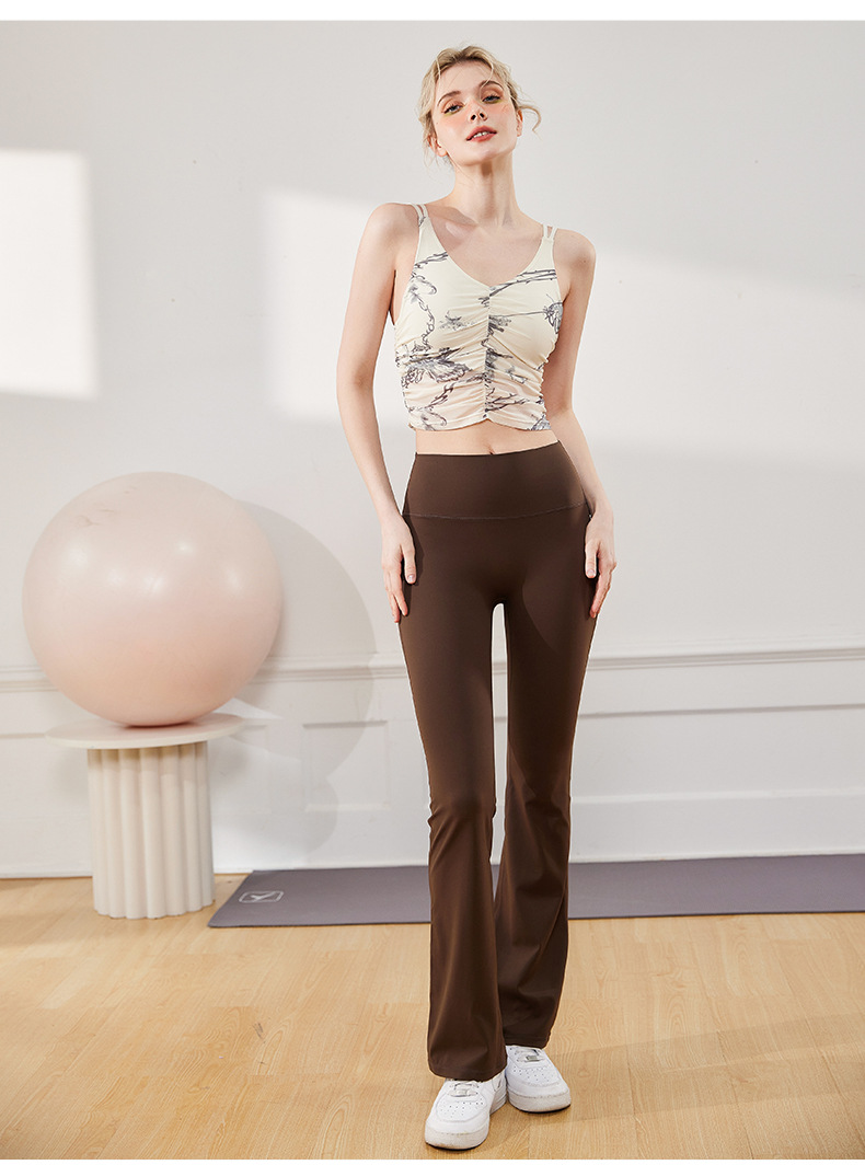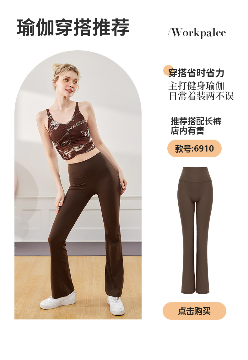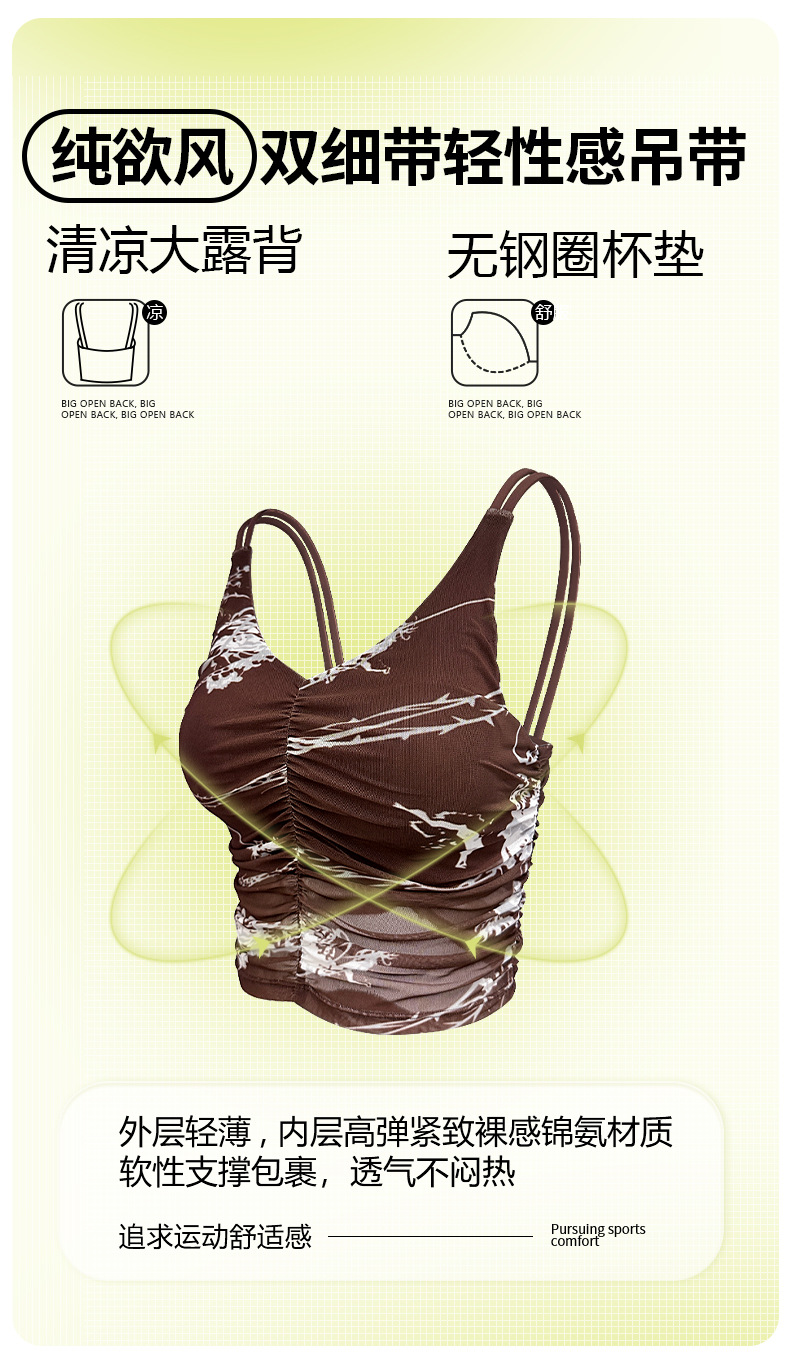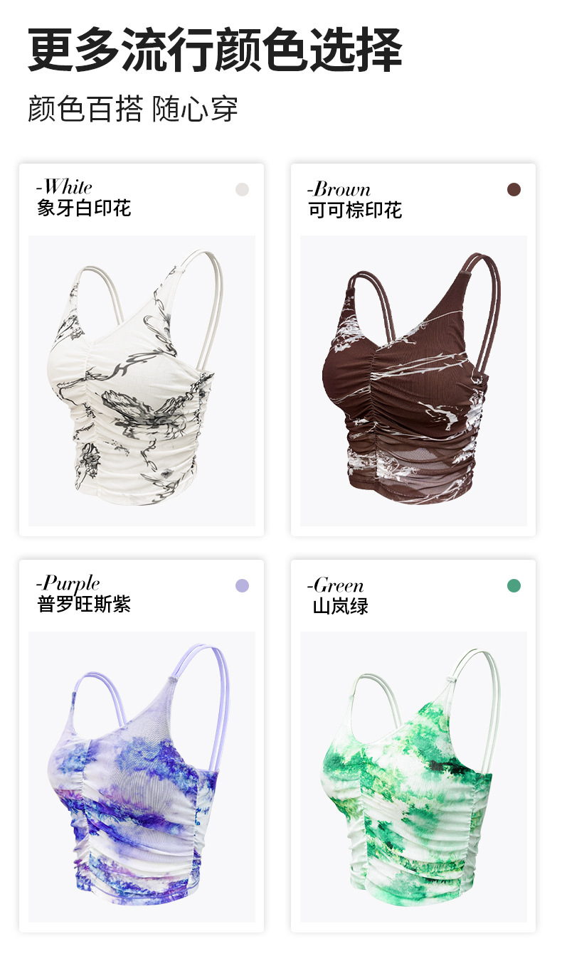 运动内衣女美背吊带一体式胸垫瑜伽文胸印花褶皱露脐alo健身背心