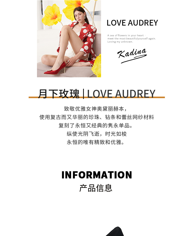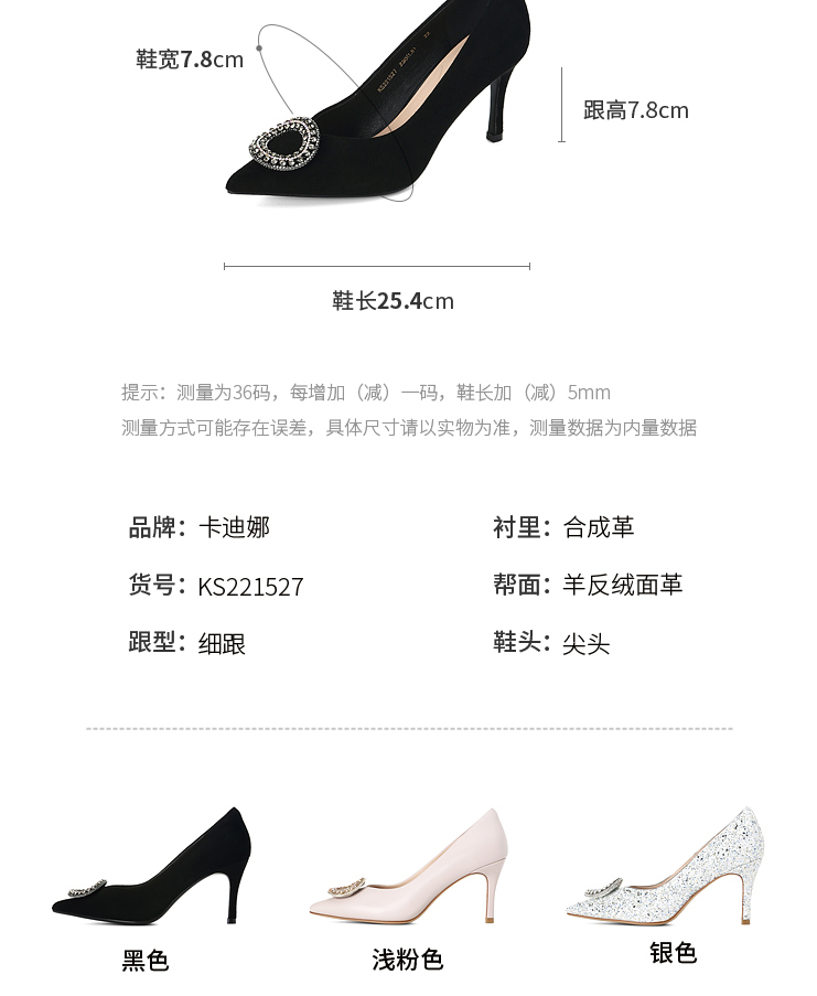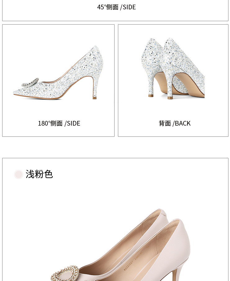 卡迪娜2022年春季新款尖头细跟女鞋高跟婚宴鞋单鞋KS221527