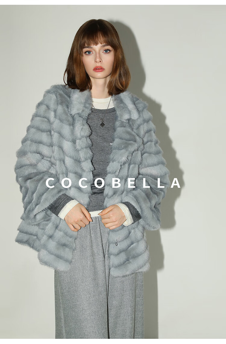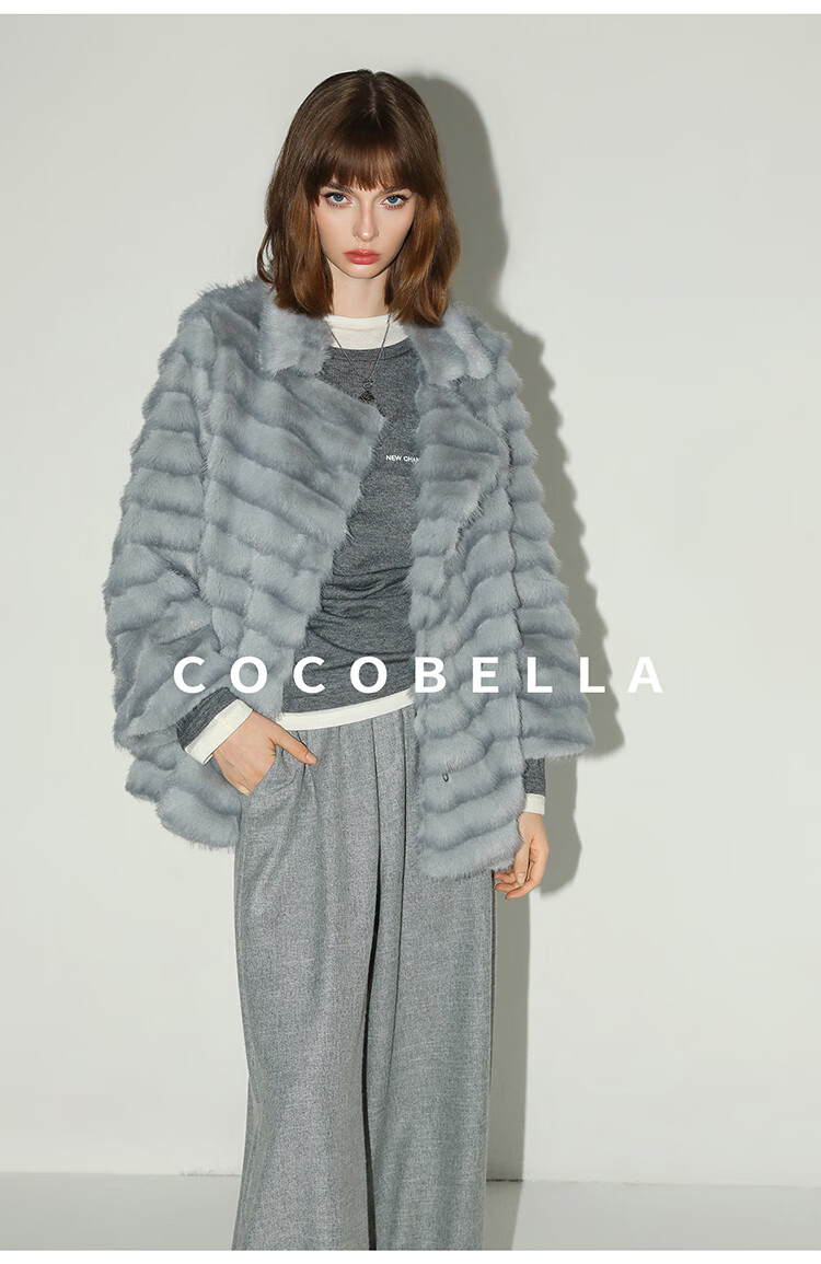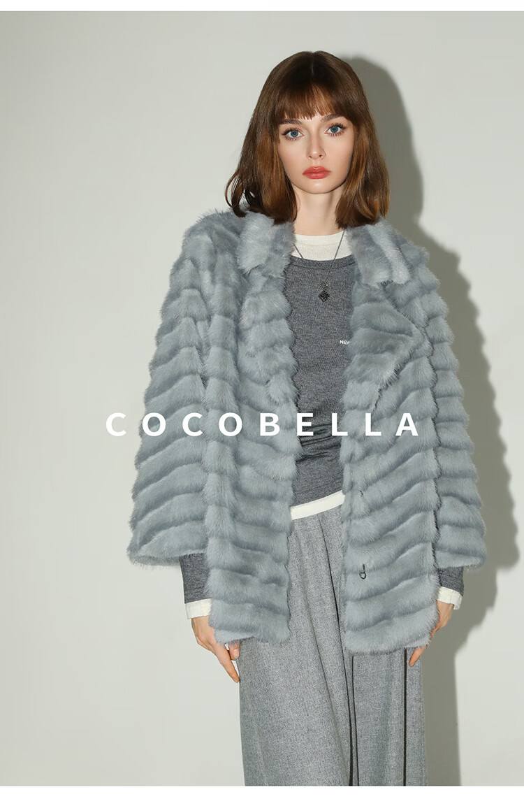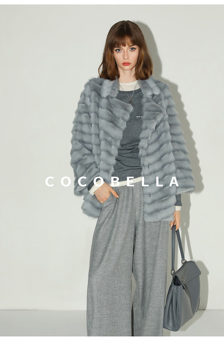 COCOBELLA奢华质感丰盈仿貂绒横排工艺环保皮草外套FU3007-3