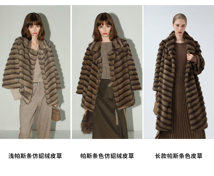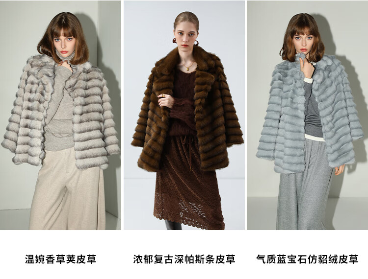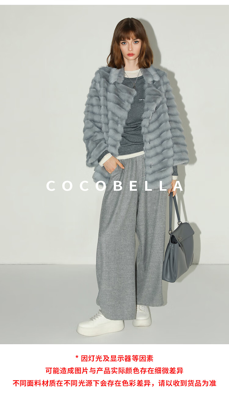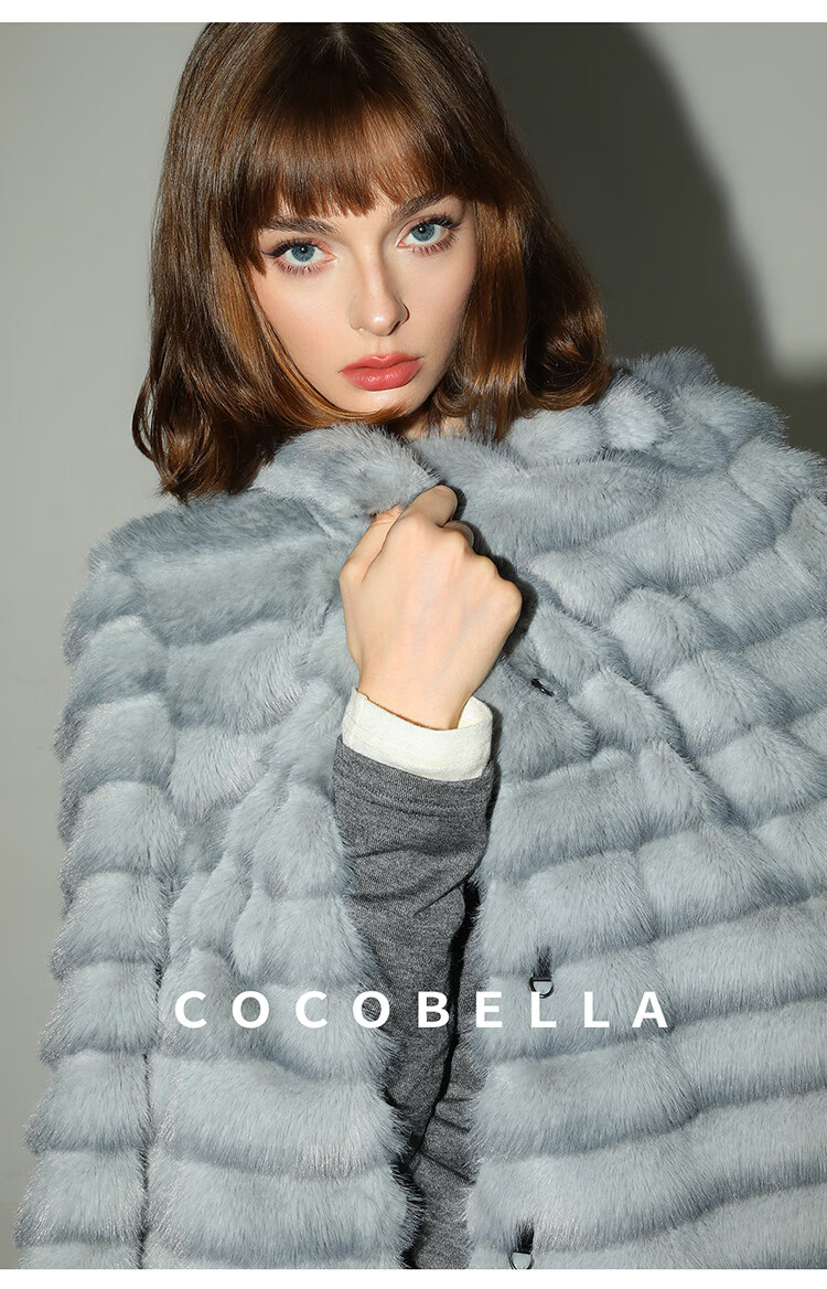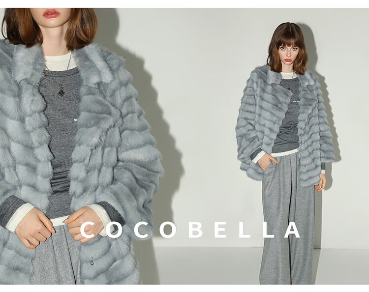 COCOBELLA奢华质感丰盈仿貂绒横排工艺环保皮草外套FU3007-3