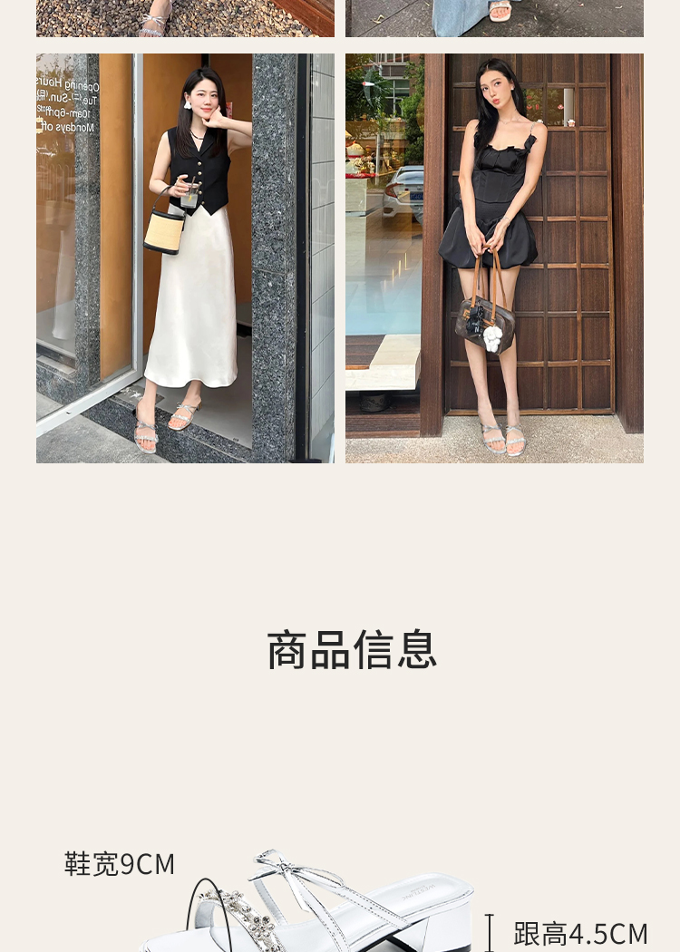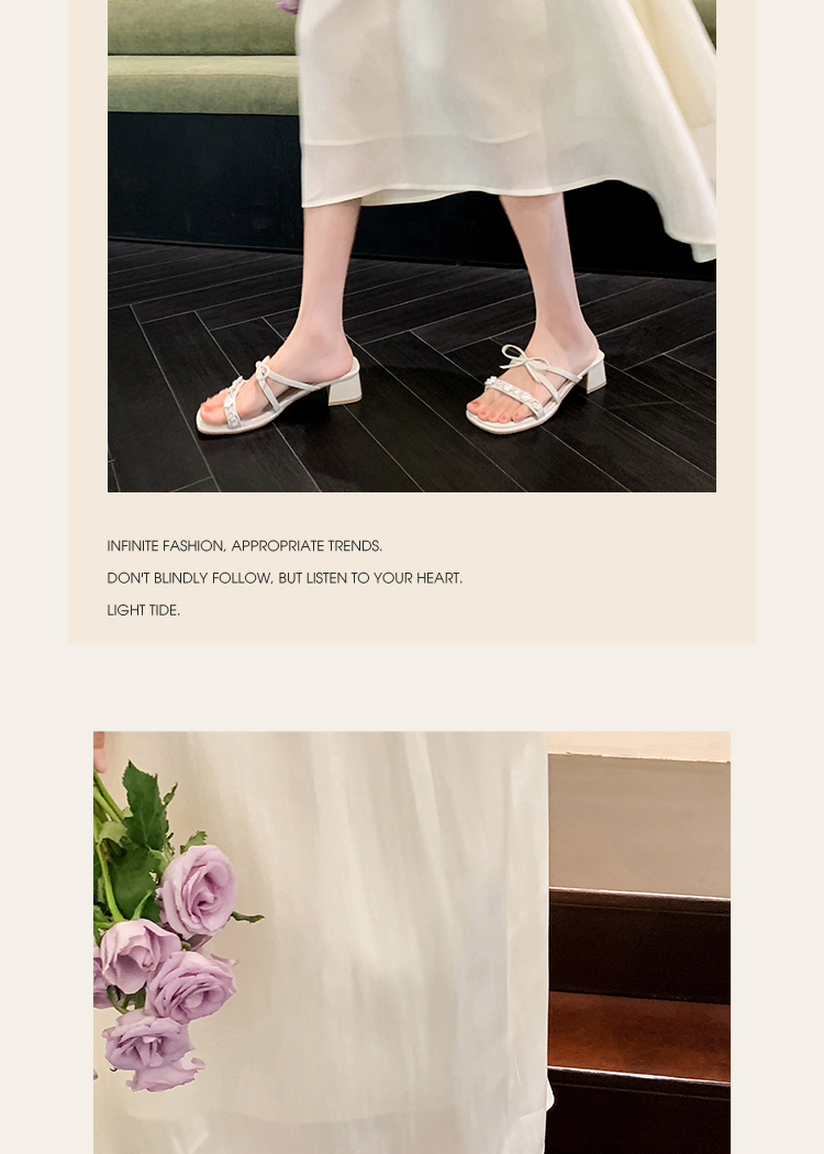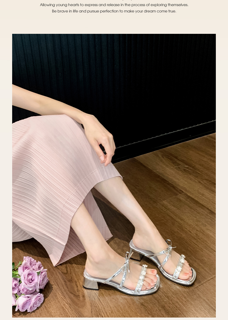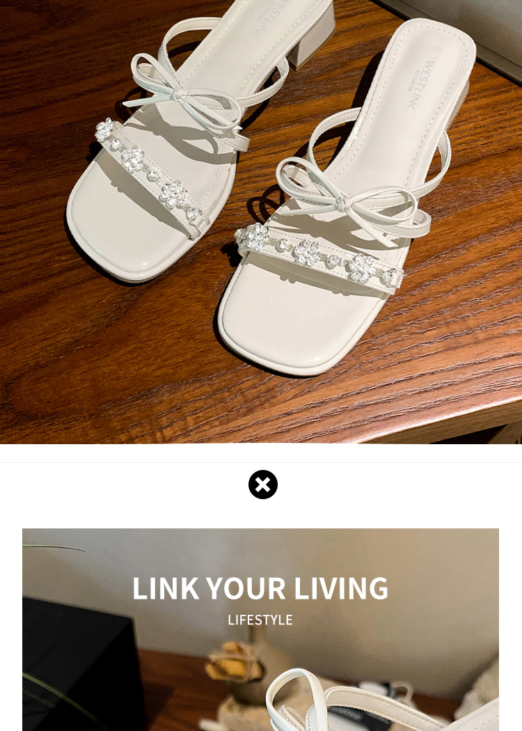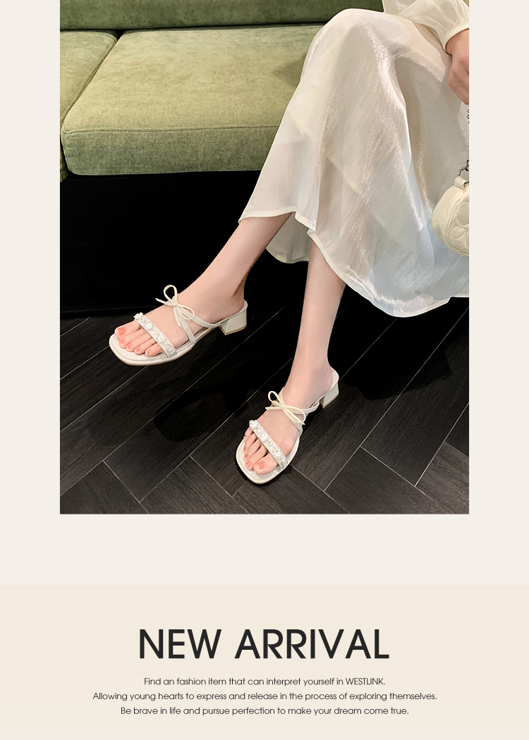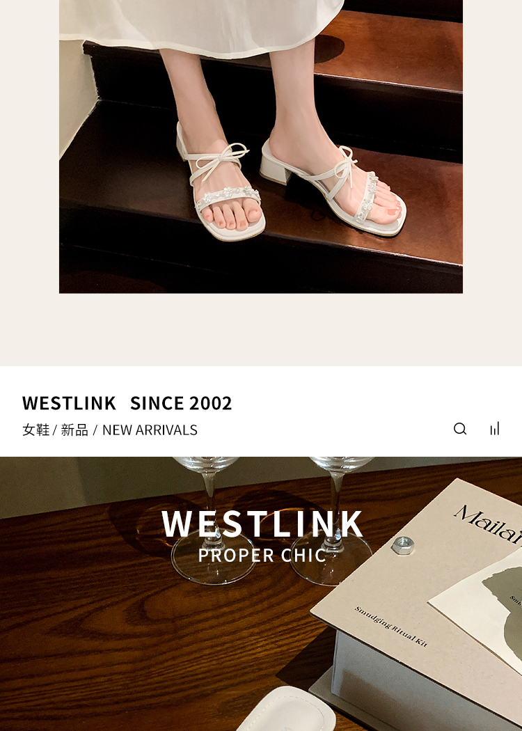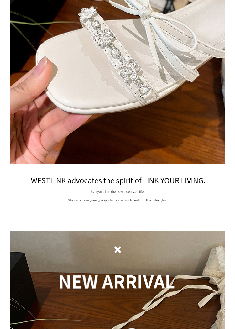 西遇粗跟凉拖鞋女夏外穿新款绝美水钻蝴蝶结配裙子中跟凉鞋K1156796