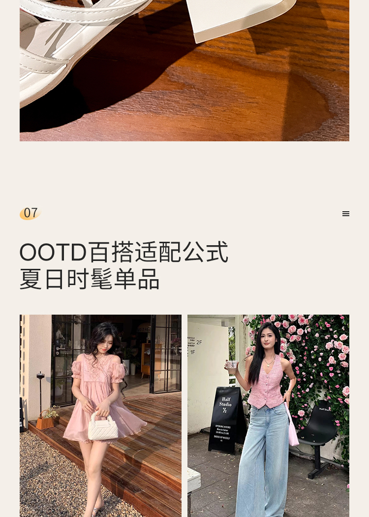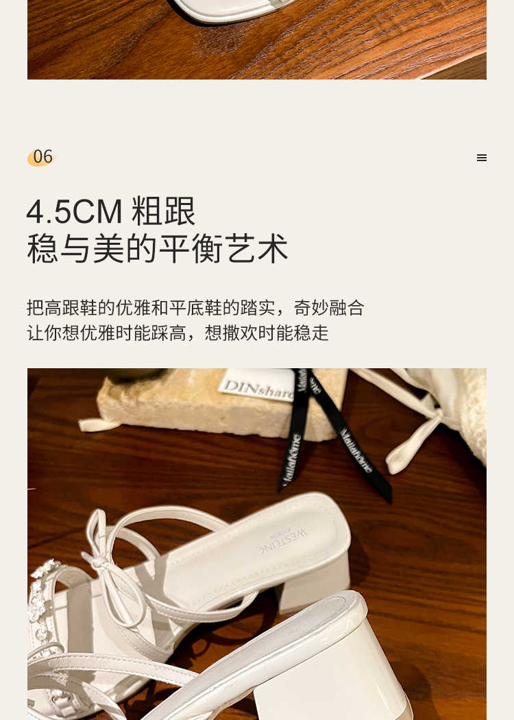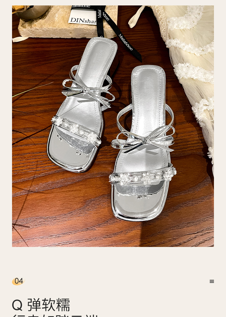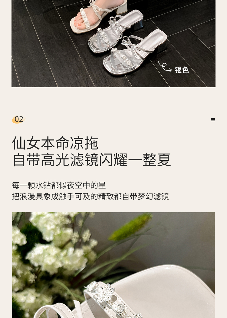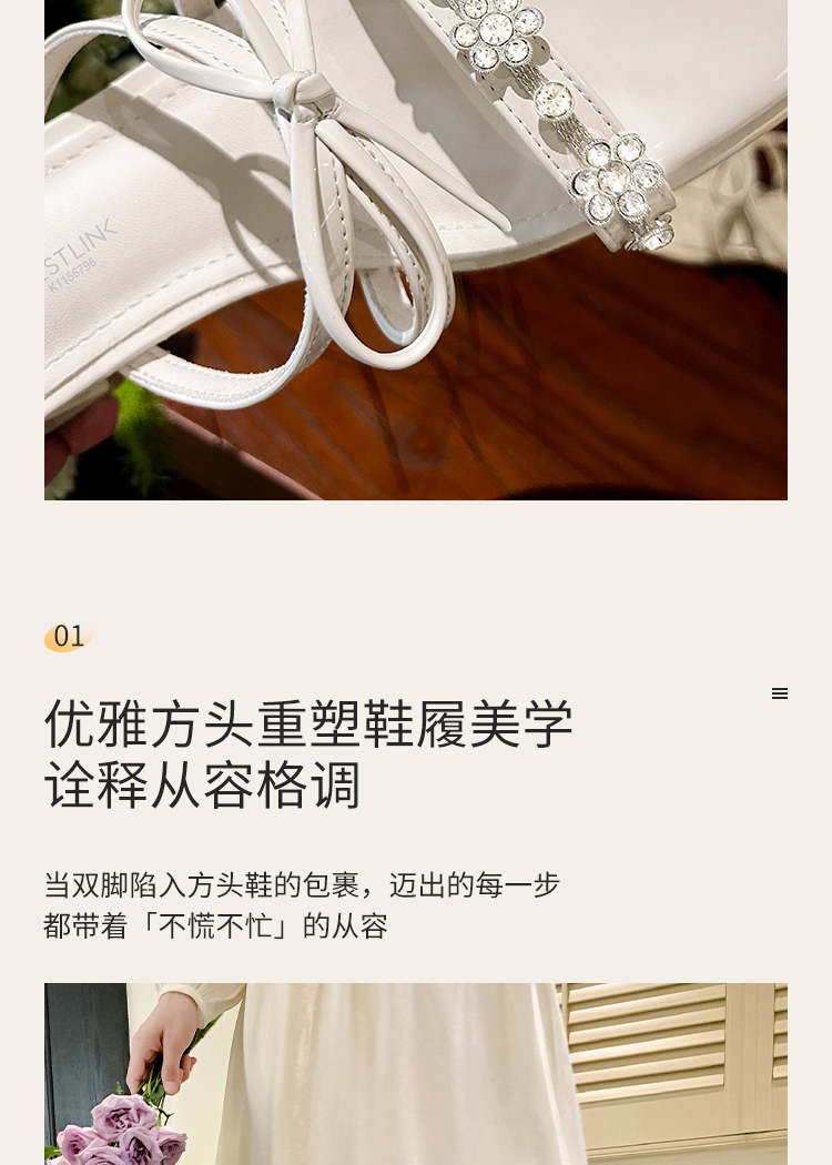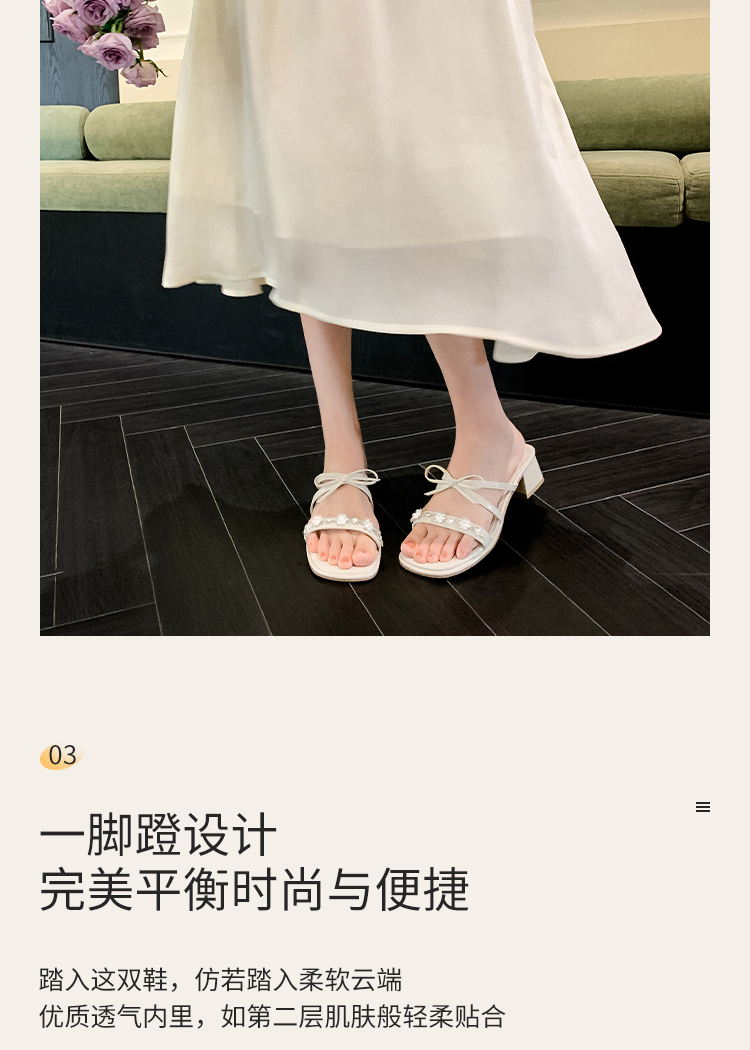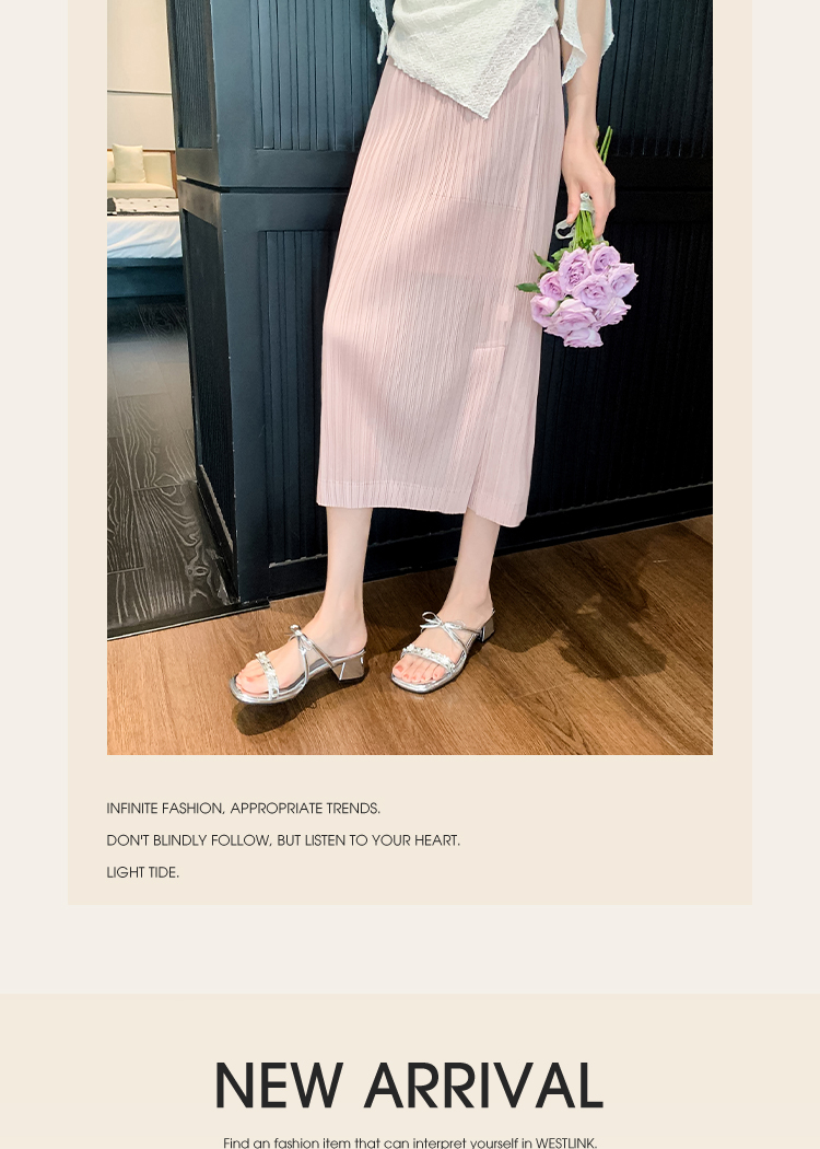 西遇粗跟凉拖鞋女夏外穿新款绝美水钻蝴蝶结配裙子中跟凉鞋K1156796