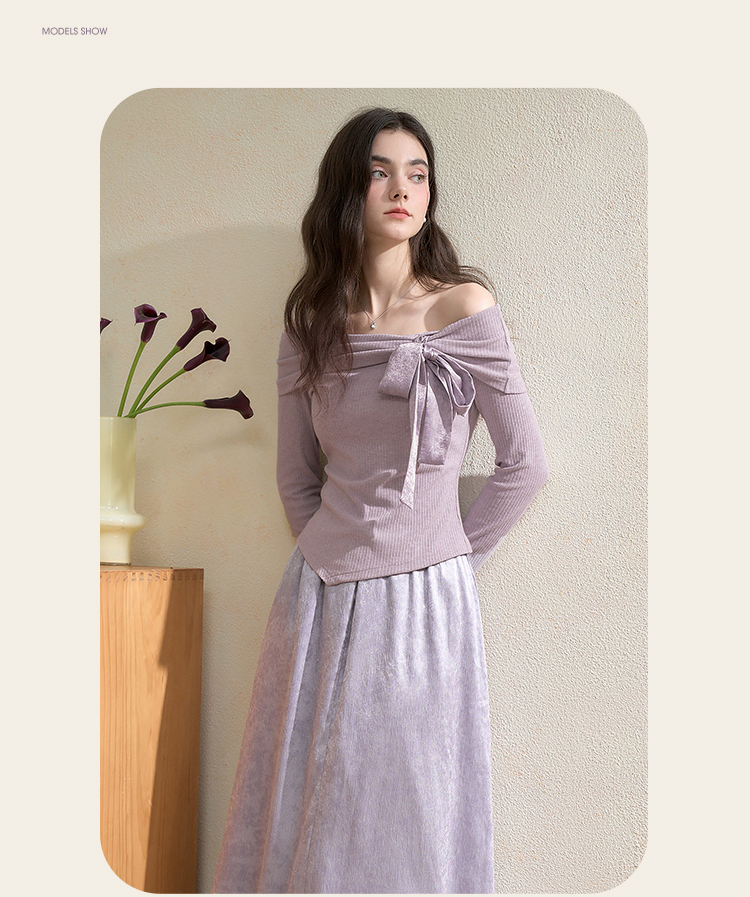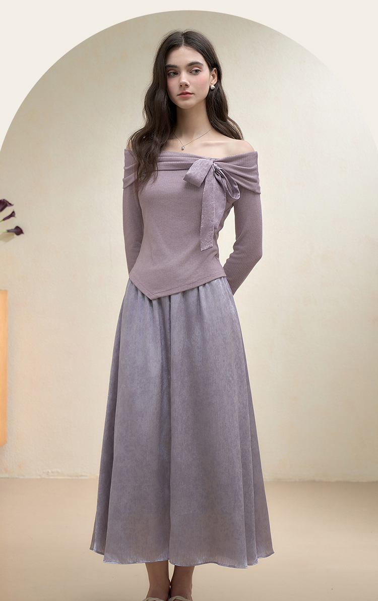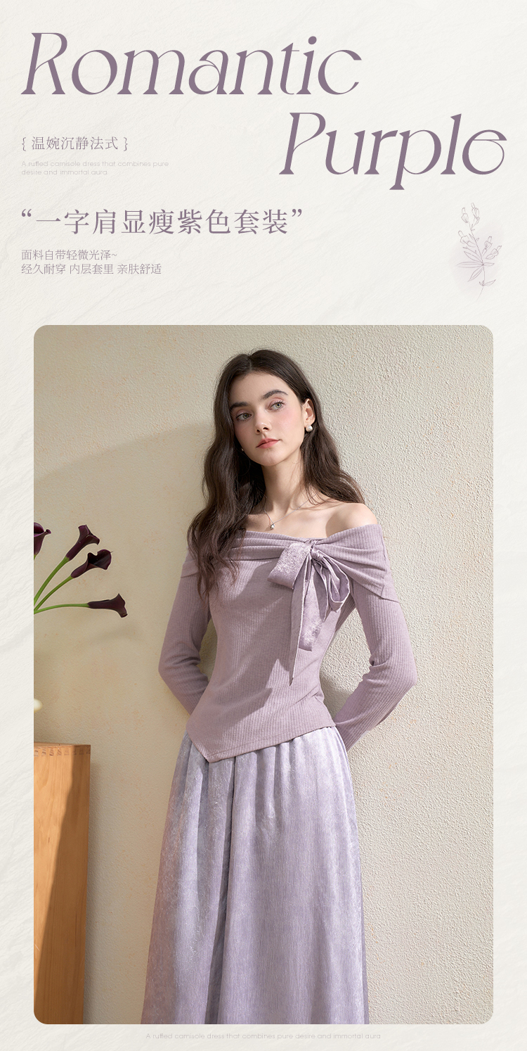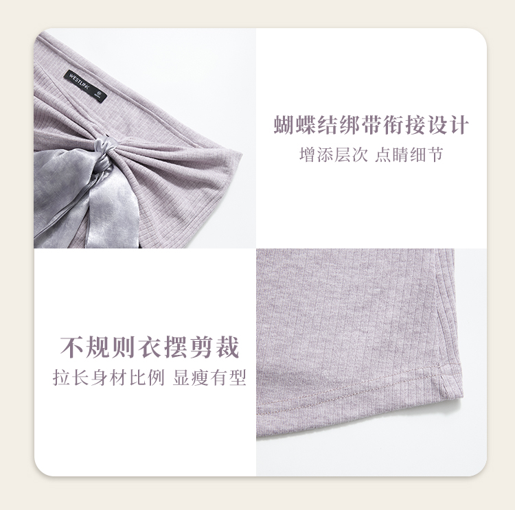 西遇法式温柔套装女秋季新款蝴蝶结针织T恤搭半身裙两件套V3051284