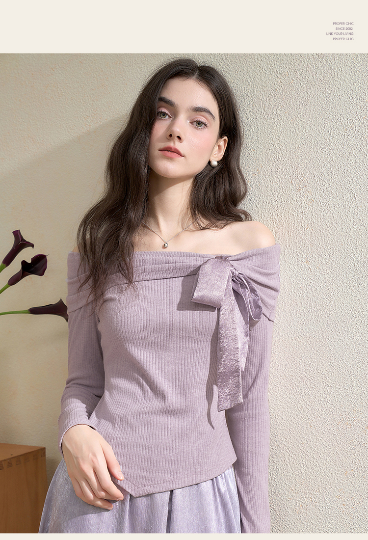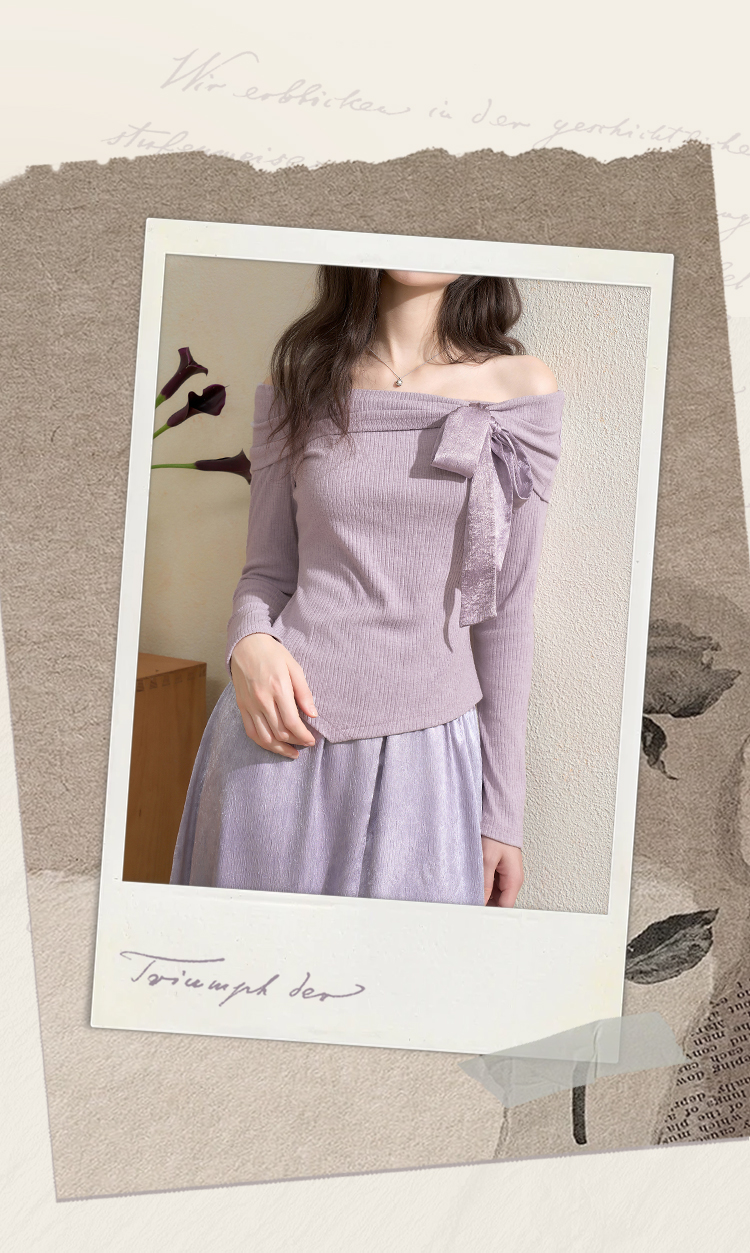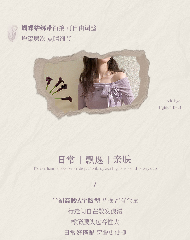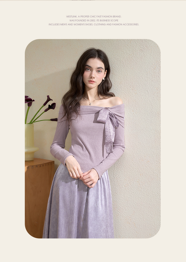 西遇法式温柔套装女秋季新款蝴蝶结针织T恤搭半身裙两件套V3051284