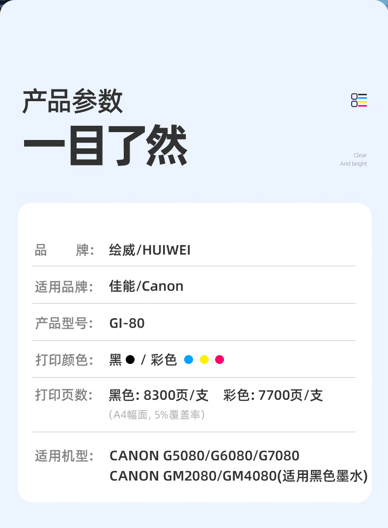 绘威GI-80墨水 适用佳能Canon GM2080 GM4080 G7080 G6080 G5080打印机四色墨水套装