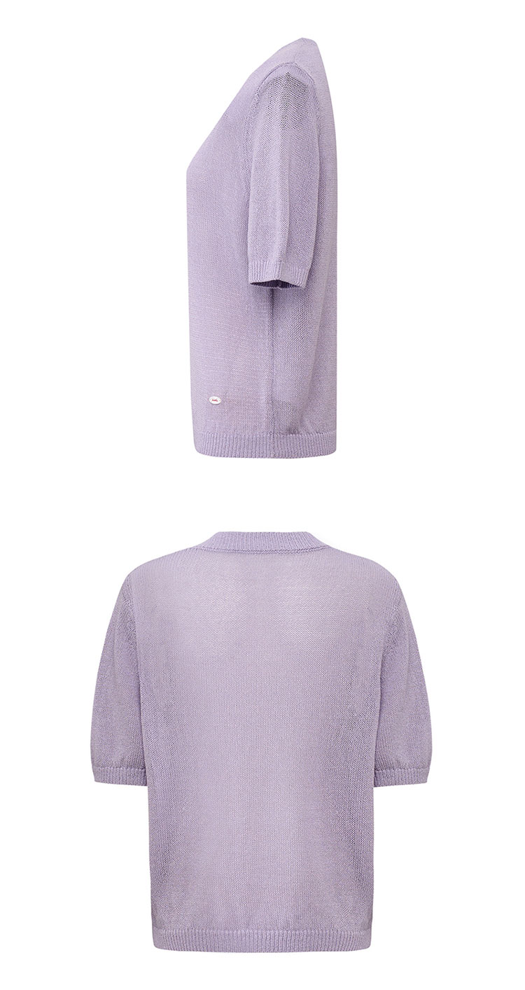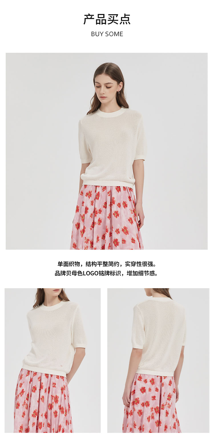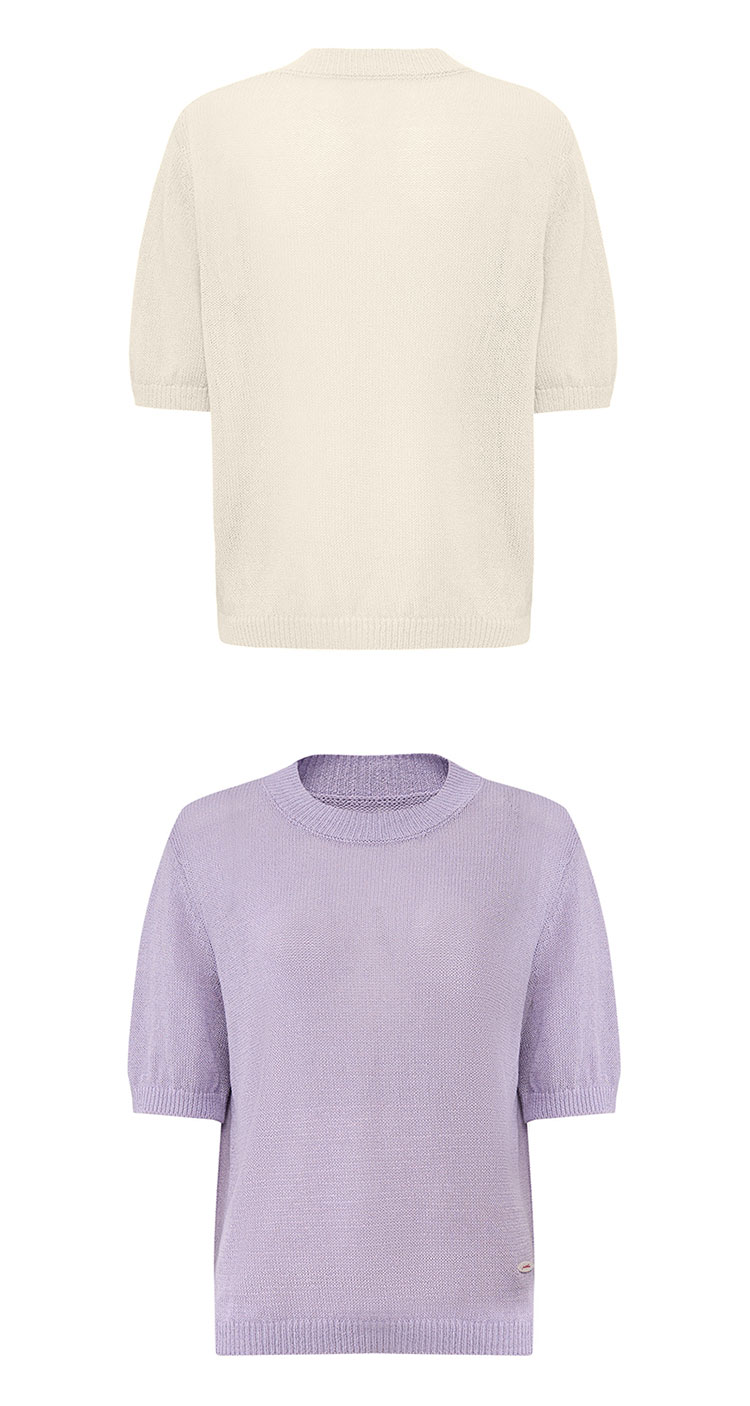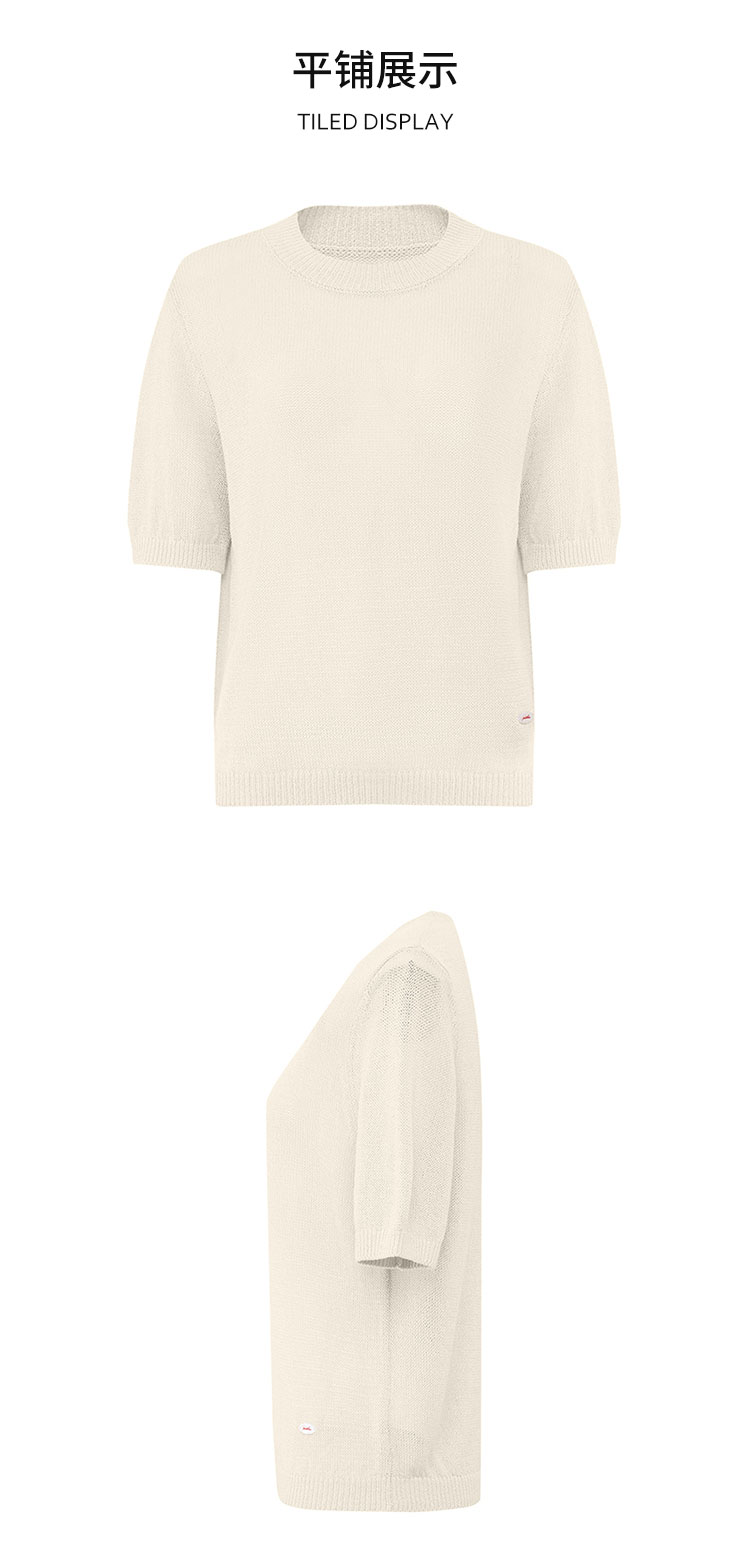 【2件9折】【Petit Bari】(多色)简约百搭圆领和纸纱短袖上衣针织