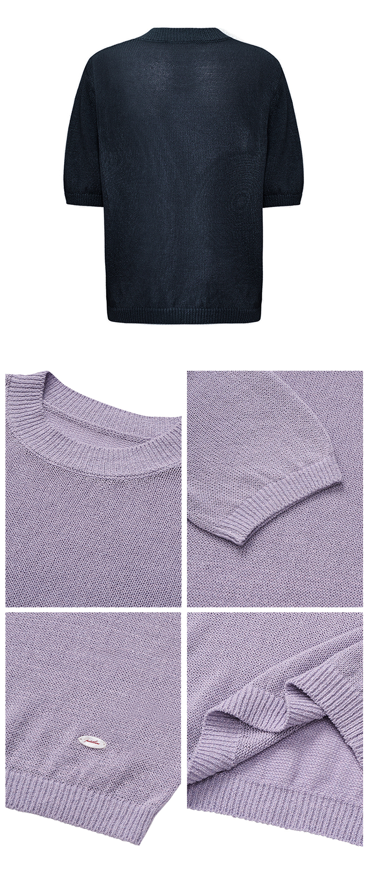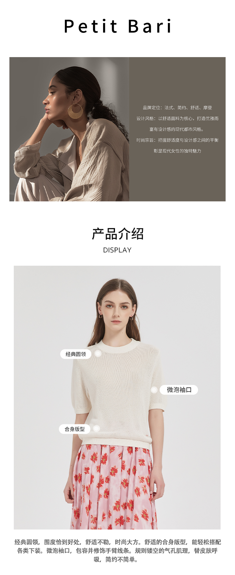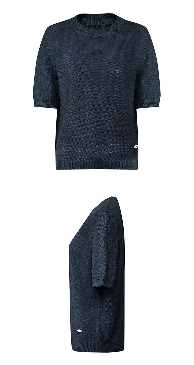 【2件9折】【Petit Bari】(多色)简约百搭圆领和纸纱短袖上衣针织