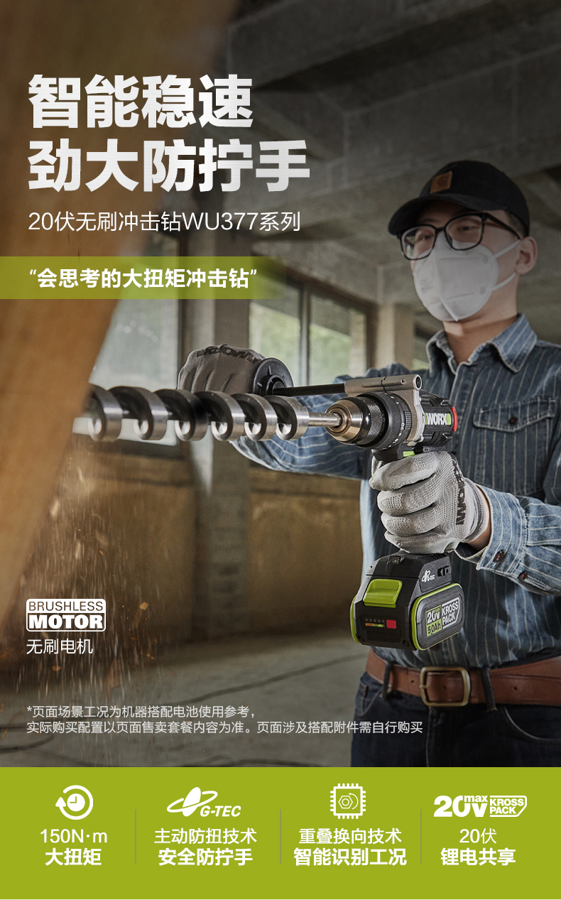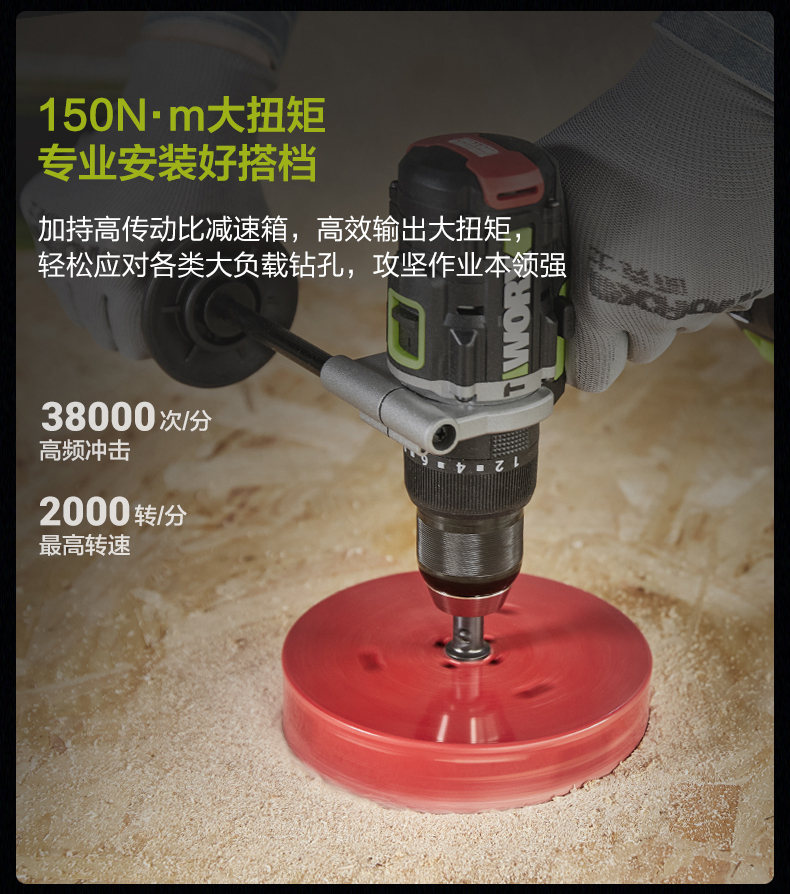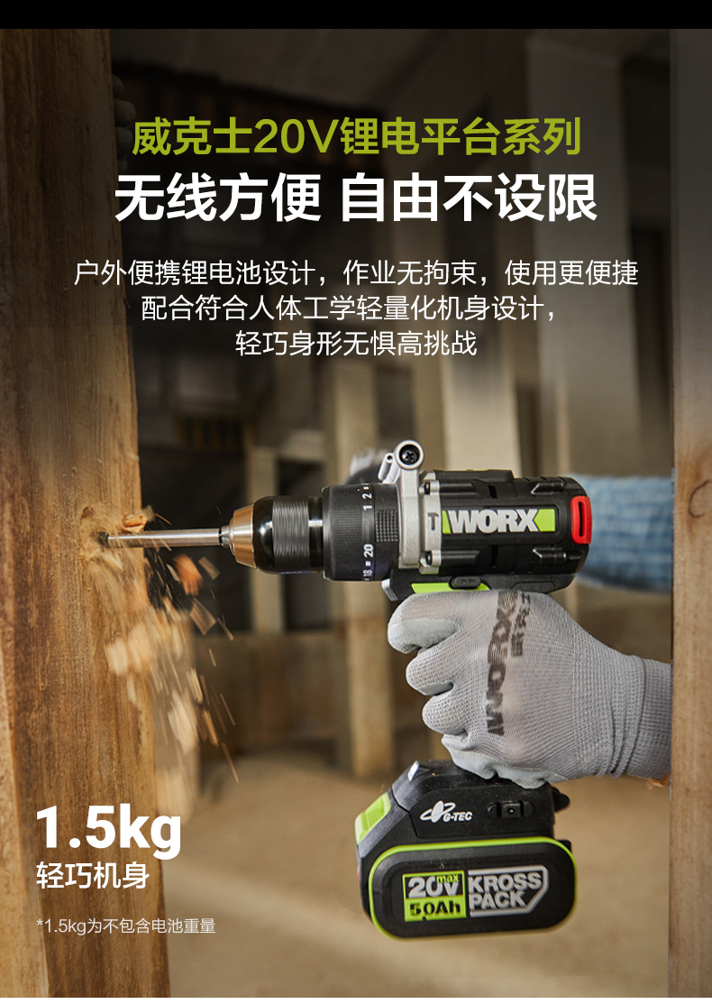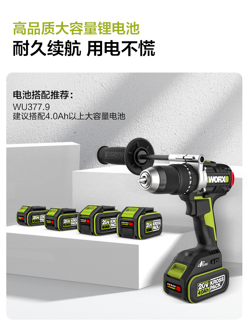 威克士150牛米无刷锂电冲击钻WU377大扭力工业级充电电钻电动工具