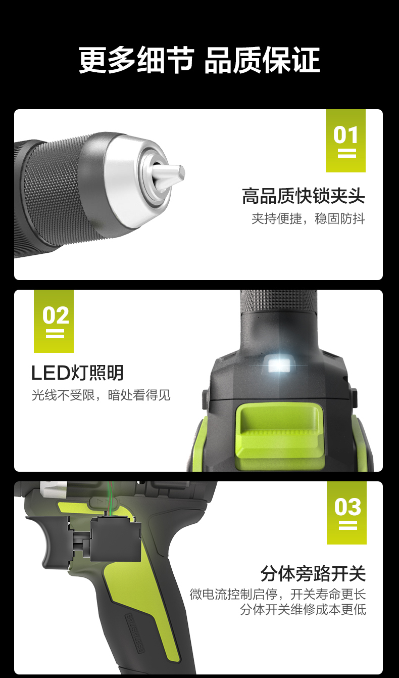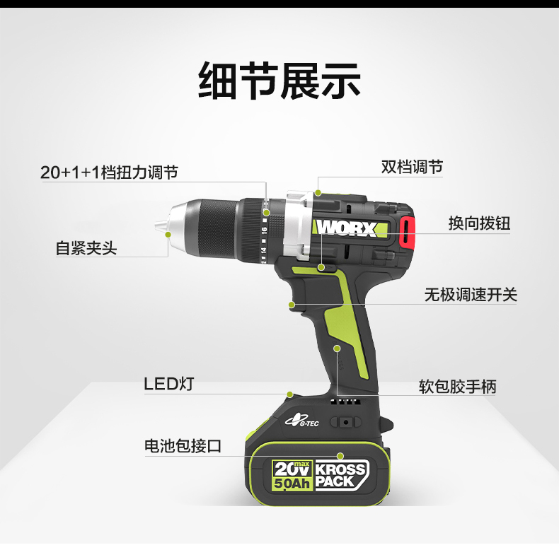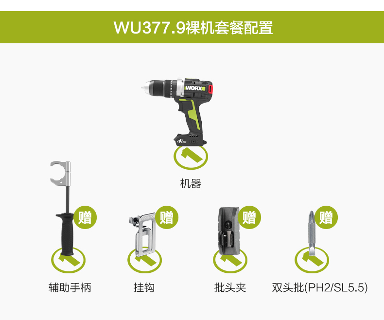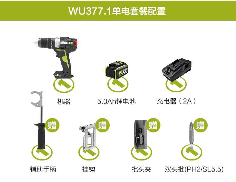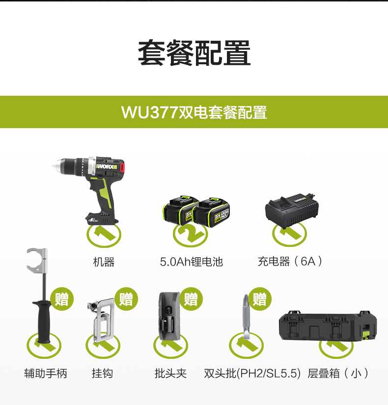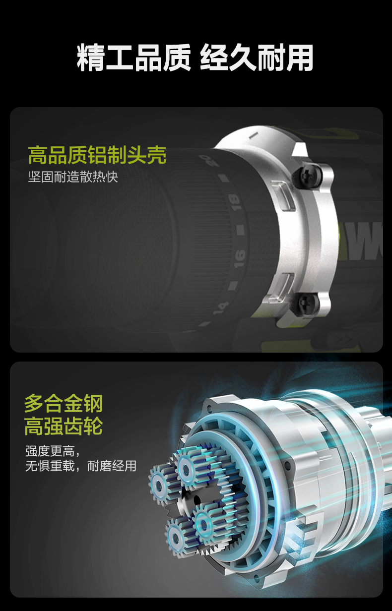 威克士150牛米无刷锂电冲击钻WU377大扭力工业级充电电钻电动工具