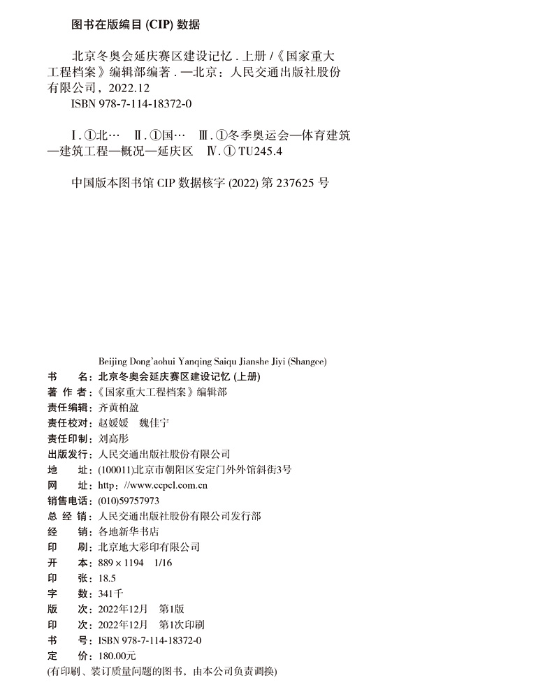 书名:北京冬奥会延庆赛区建设记忆(上册)