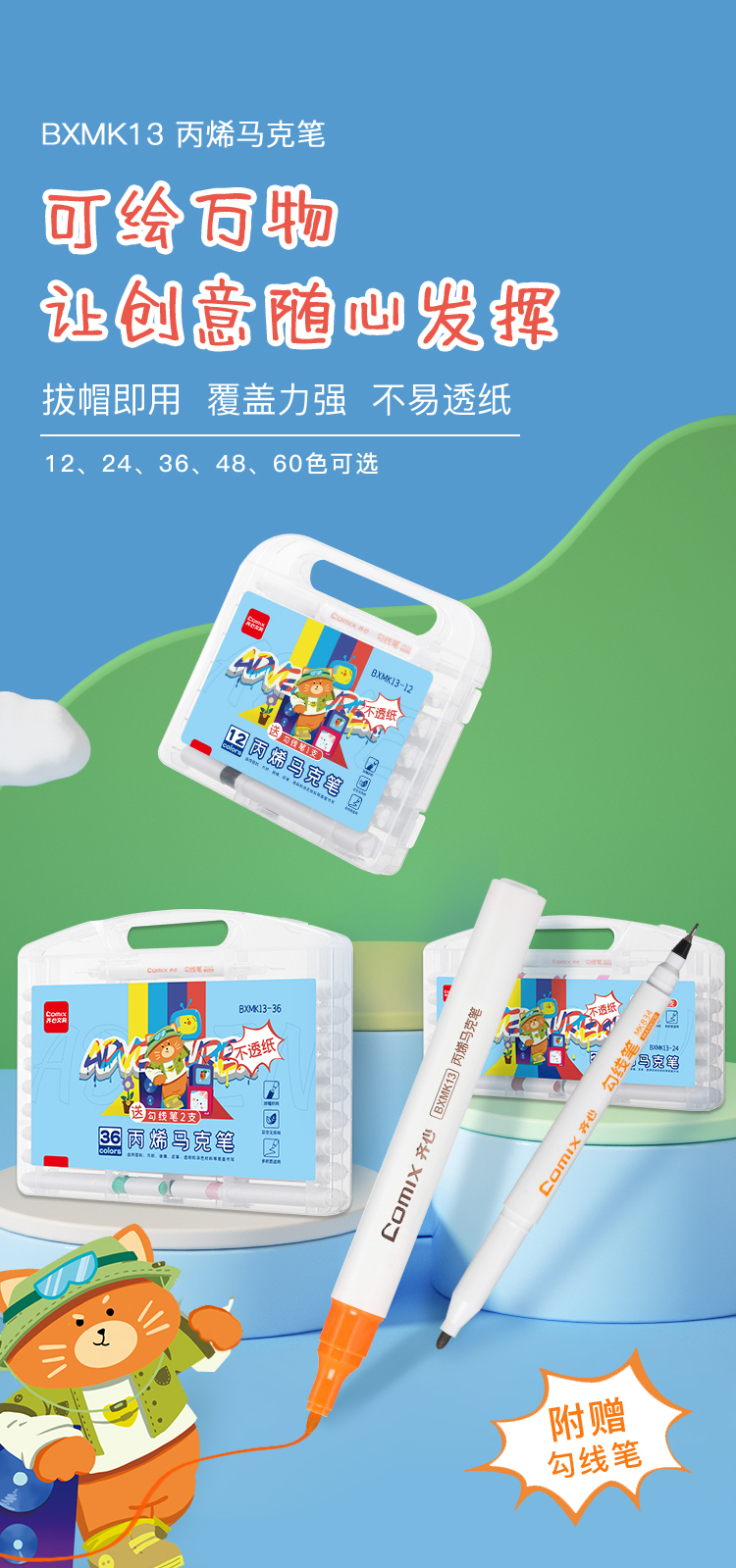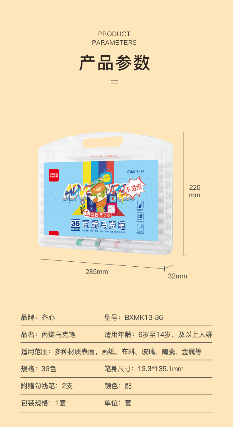 齐心 BXMK13-36 丙烯马克笔 36色