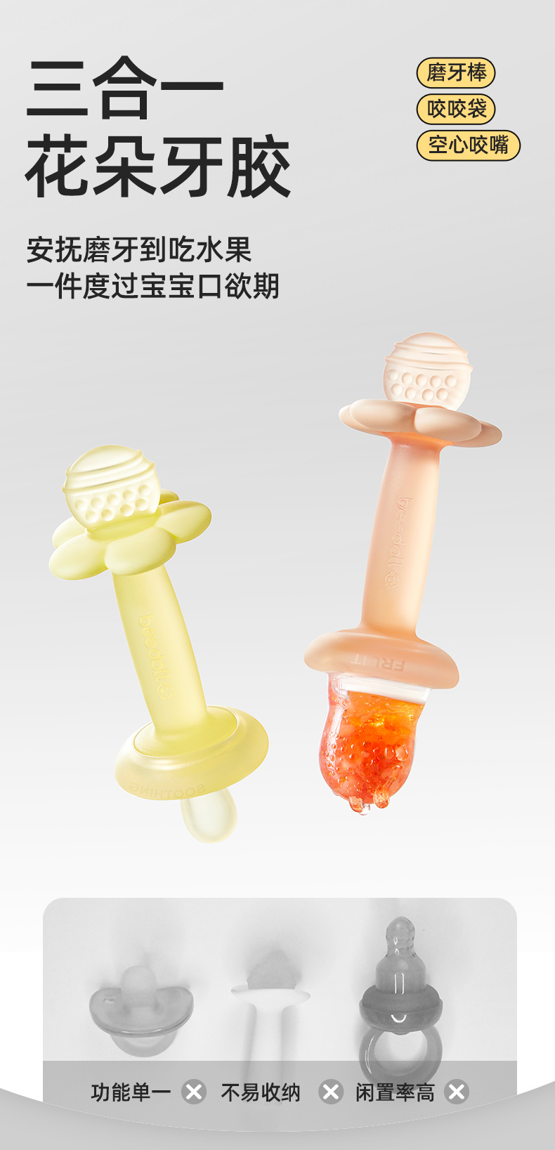 beedoll蓓兜花朵牙胶婴儿磨牙棒6个月以上小月龄宝宝防吃手口欲期咬胶乐咬咬乐