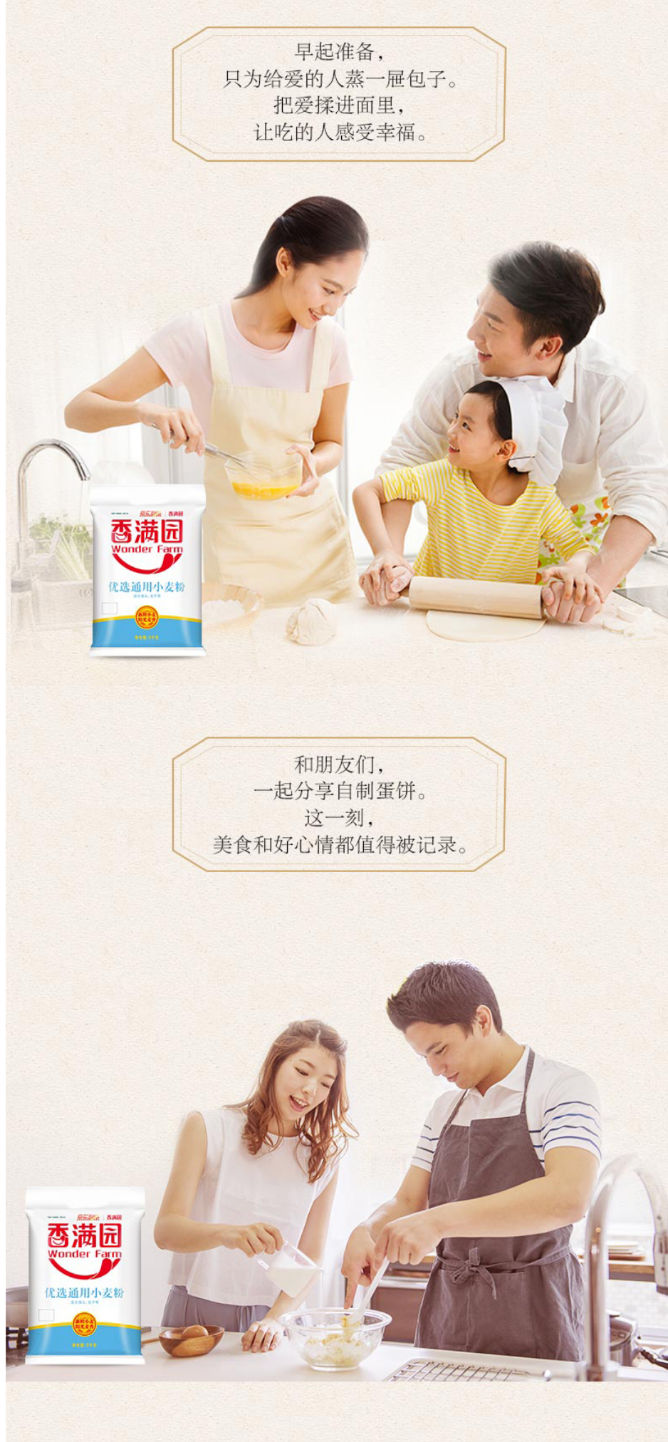 香满园 面粉 中筋粉 优选通用小麦粉 5kg 包子饺子馒头饼手擀面 100022681588