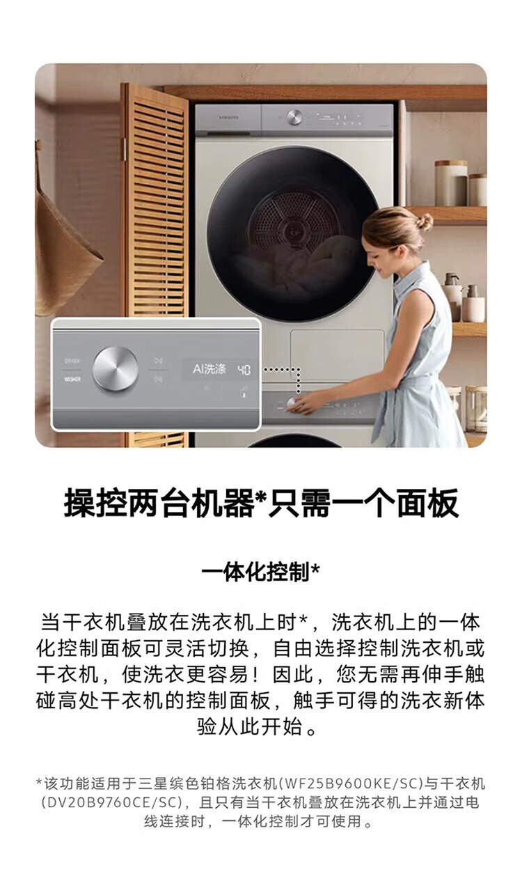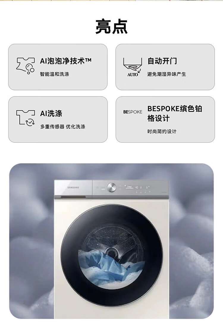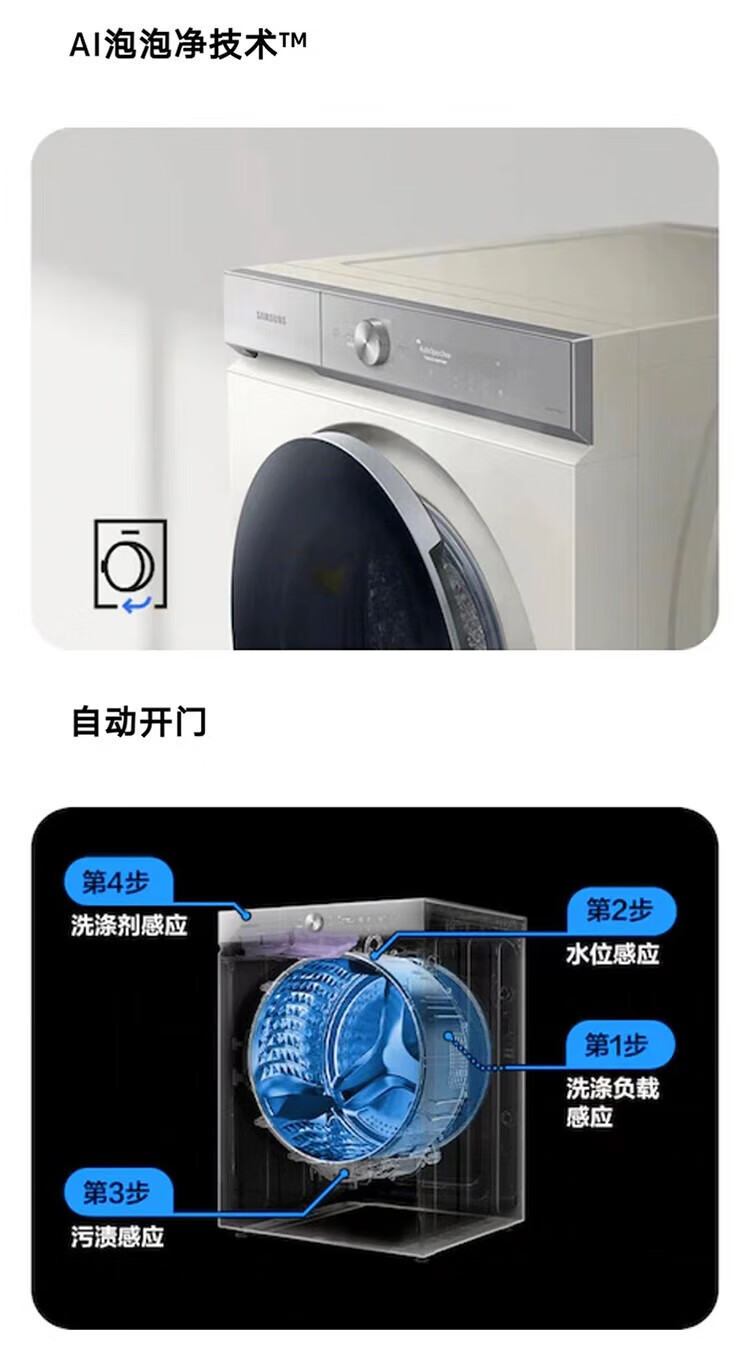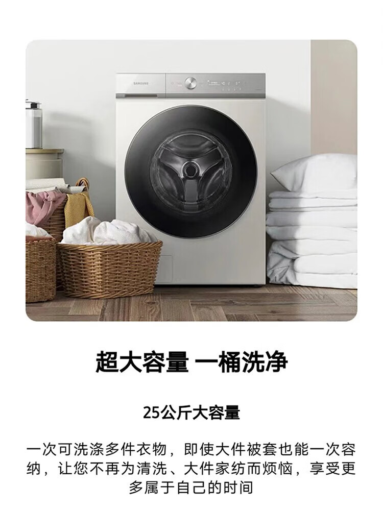 三星(SAMSUNG)原装进口BESPOKE WF25B9600KE/SC 大容量25公斤AI智能除菌变频滚筒全自动洗衣机 WF25B9600KE/SC(单洗)