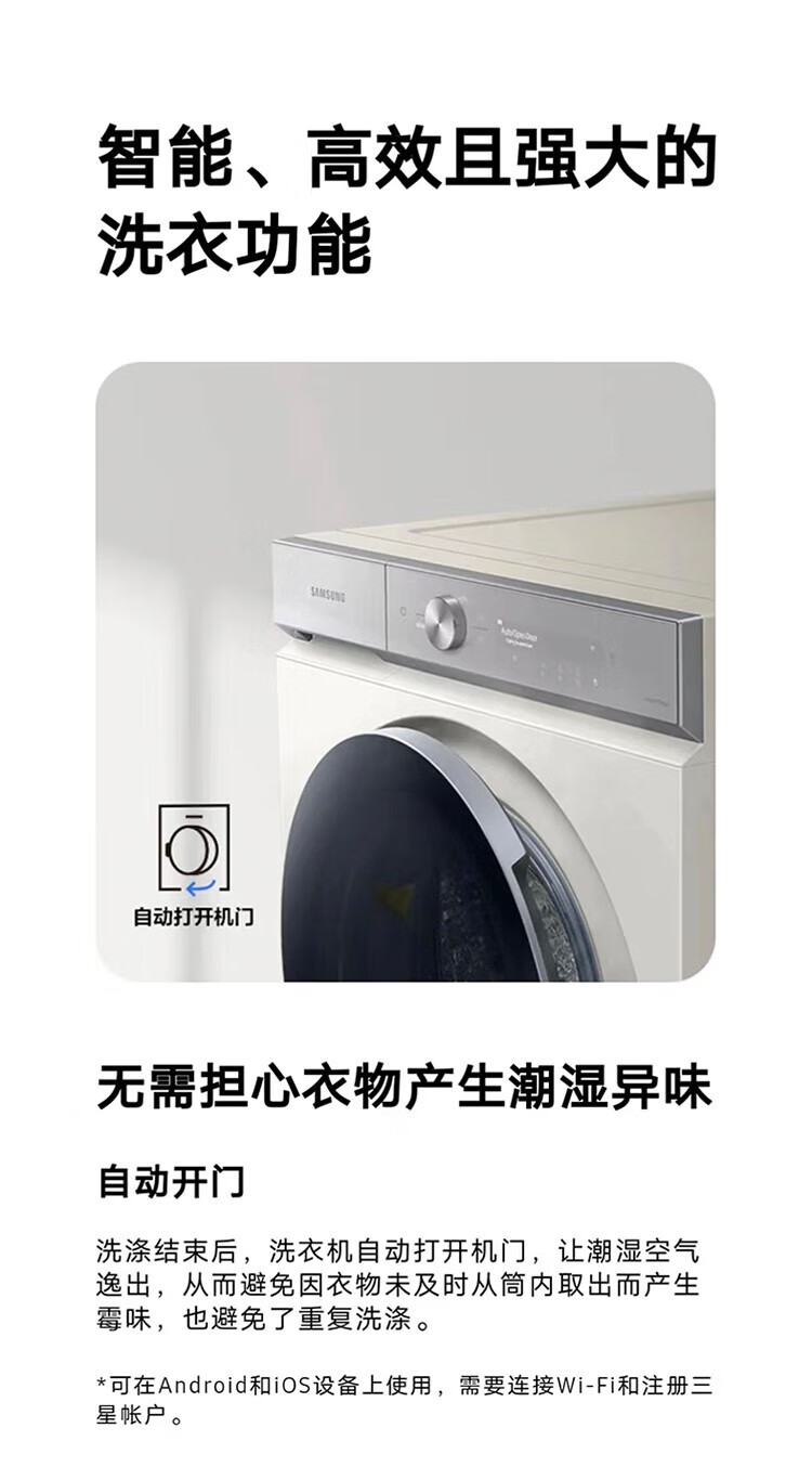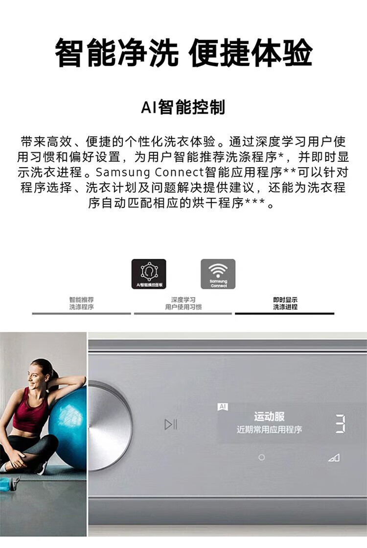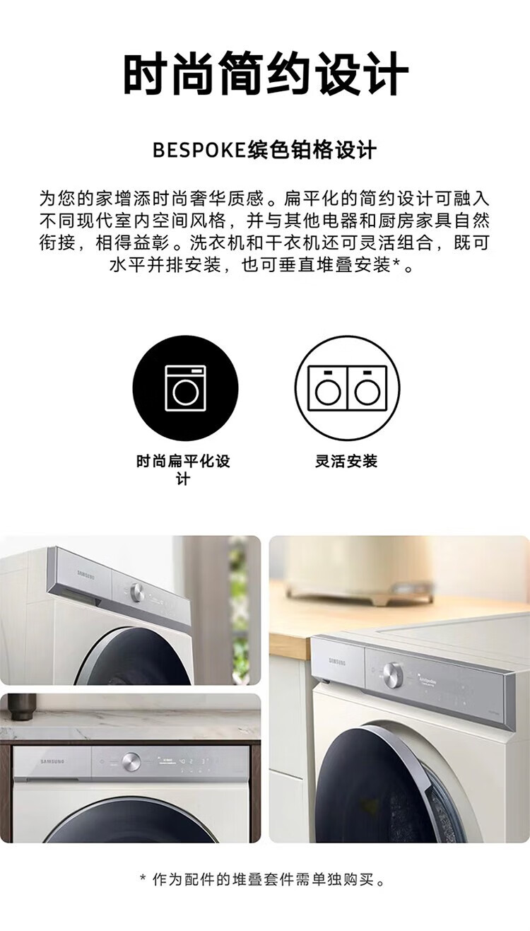 三星(SAMSUNG)原装进口BESPOKE WF25B9600KE/SC 大容量25公斤AI智能除菌变频滚筒全自动洗衣机 WF25B9600KE/SC(单洗)