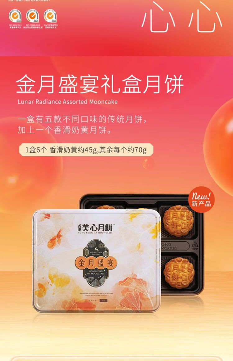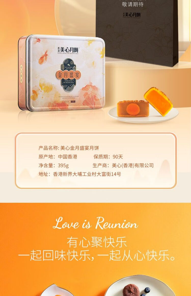香港美心流心月饼 香港美心 金月盛宴月饼420g 中秋礼盒员工福利企业团购 美心 金月盛宴月饼