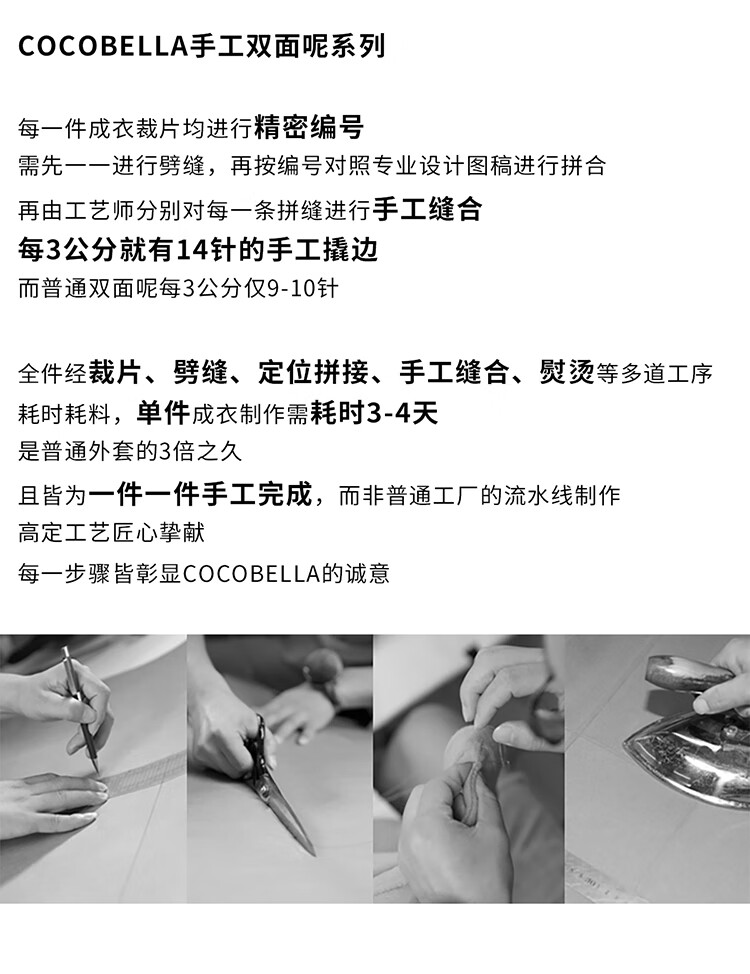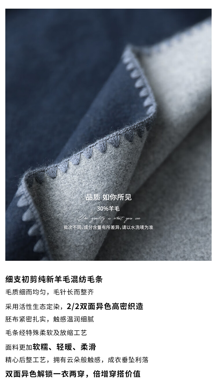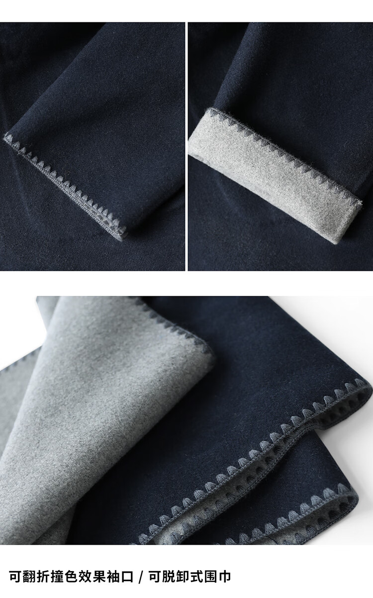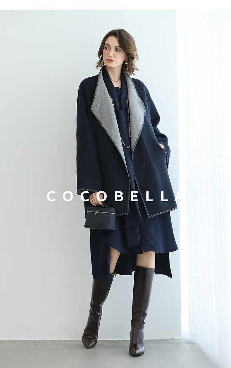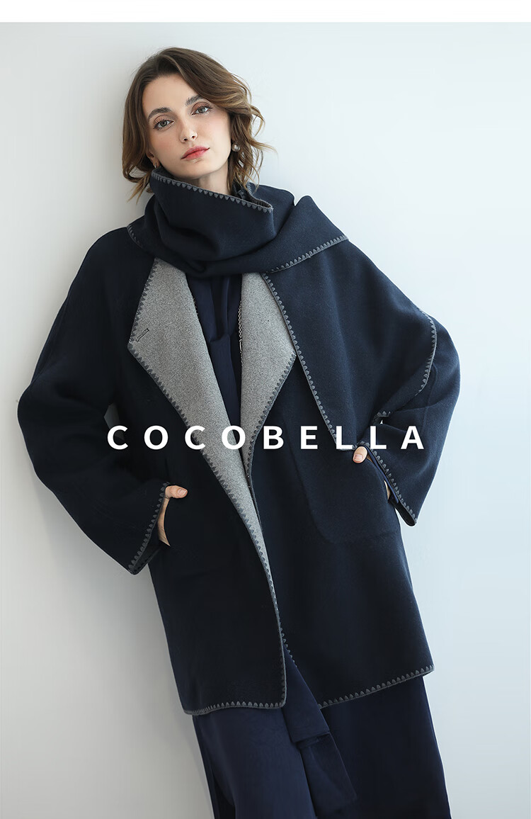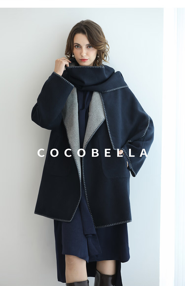 COCOBELLA新款两面穿手工羊毛大衣围巾套装毛呢外套WL3221-2
