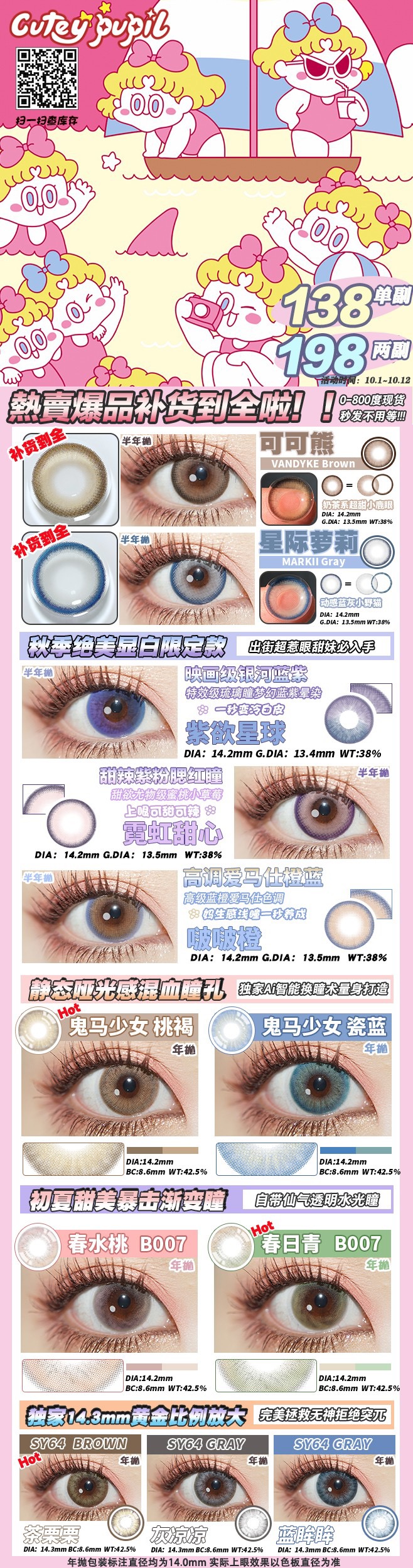 【当月活动】Cutey Pupil活动 千户万换的0-800度补货到啦!(0-800度)10.12结束