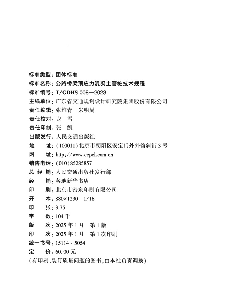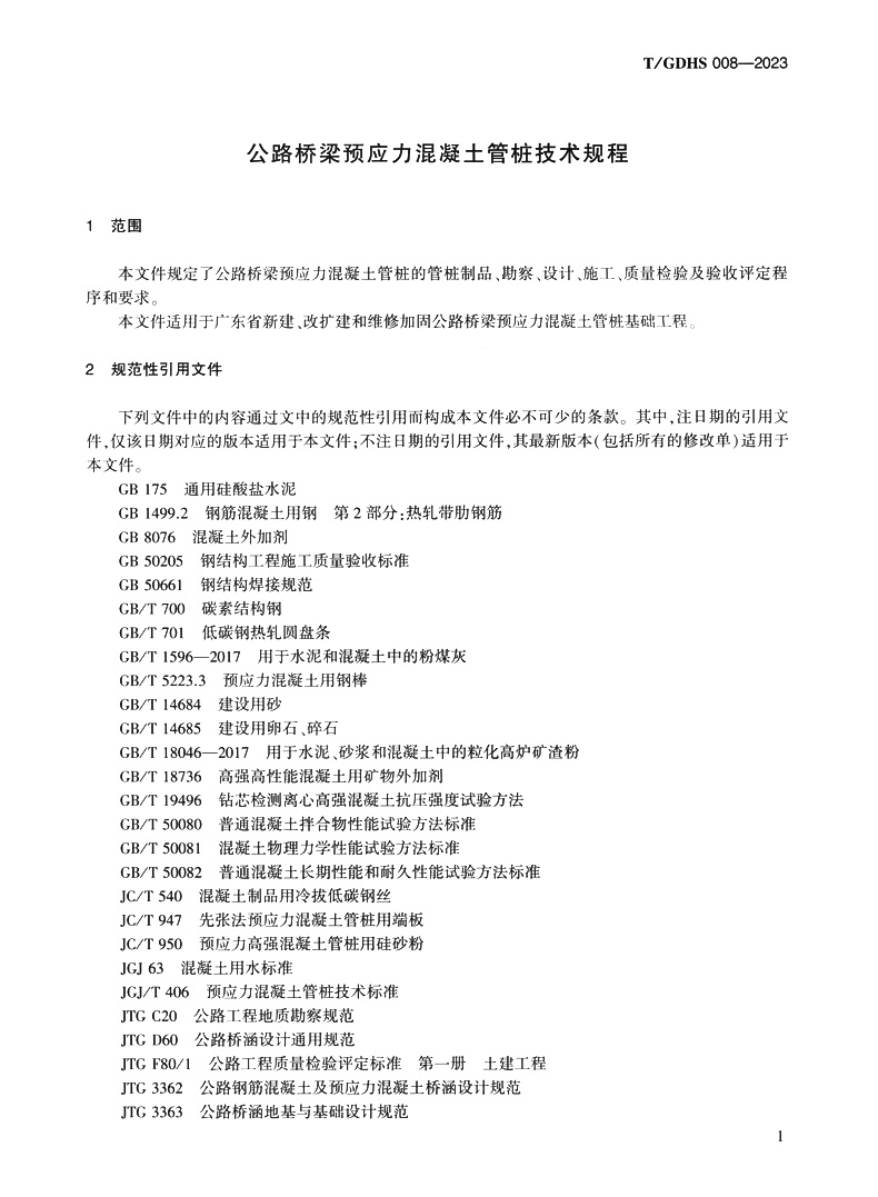 书名:公路桥梁预应力混凝土管桩技术规程(T/GDHS 008—2023)
