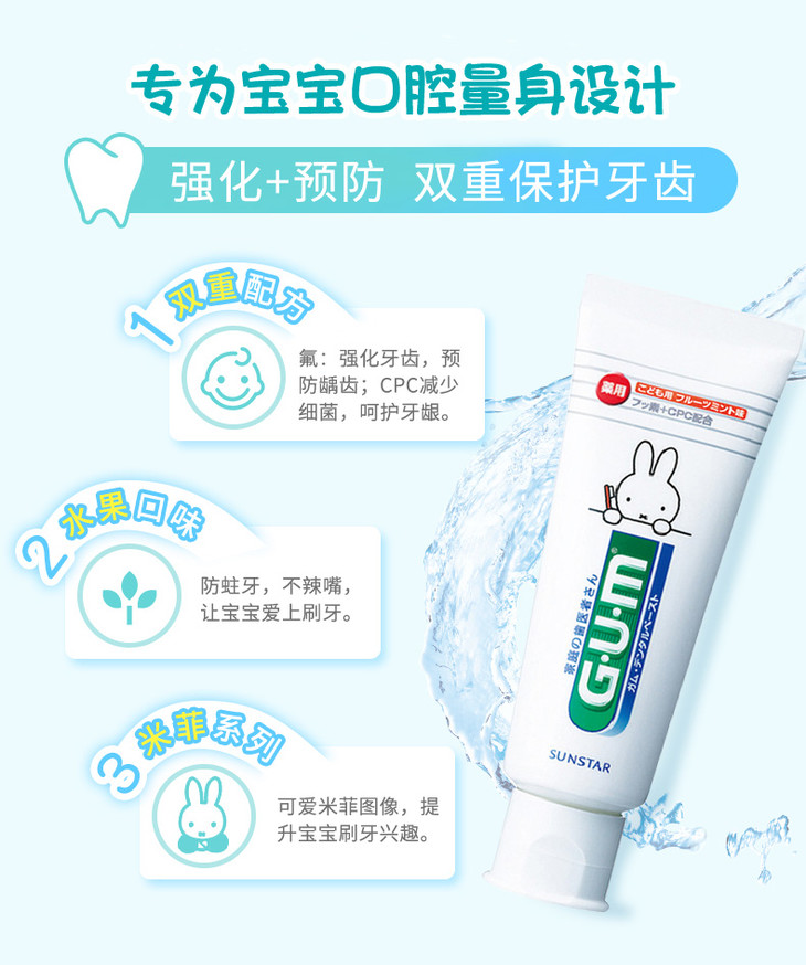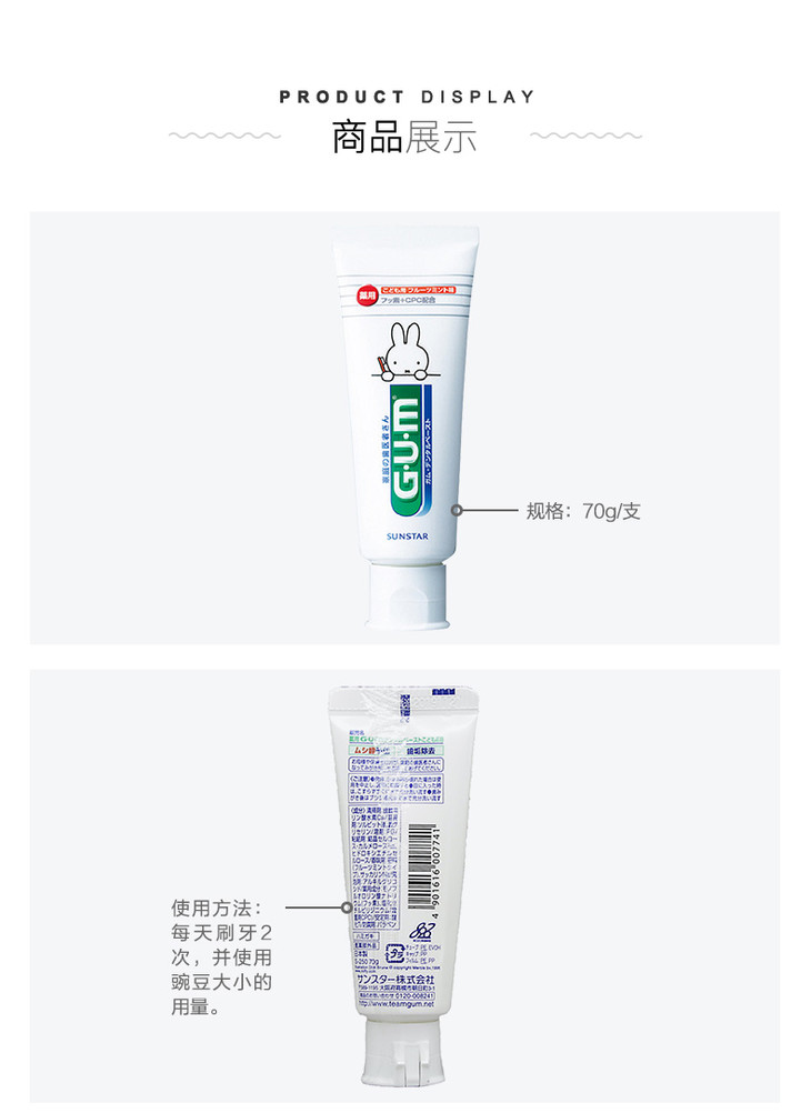 日本 GUM儿童薄荷味牙膏 70g