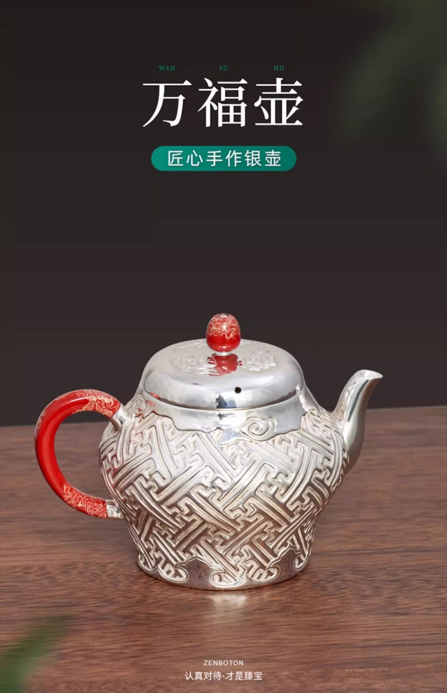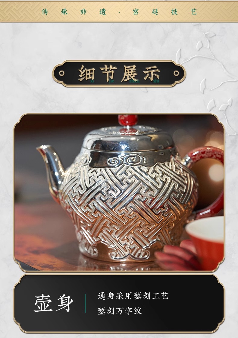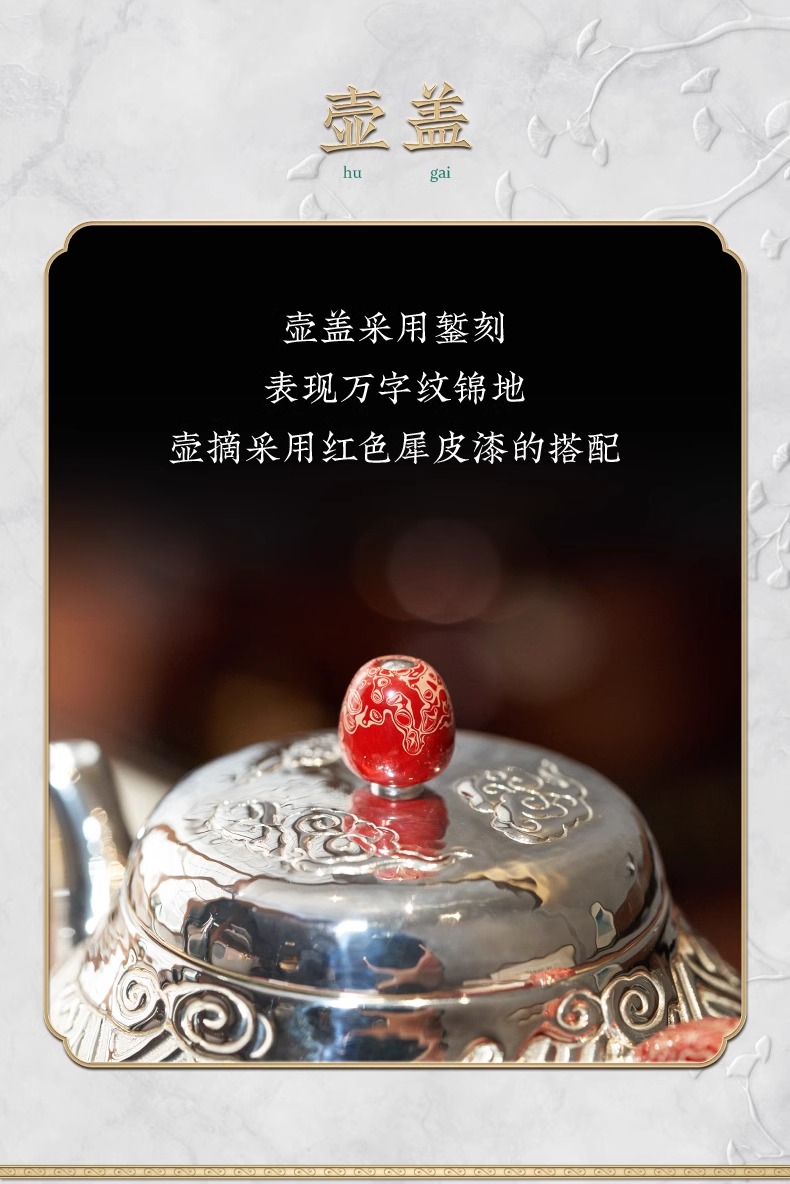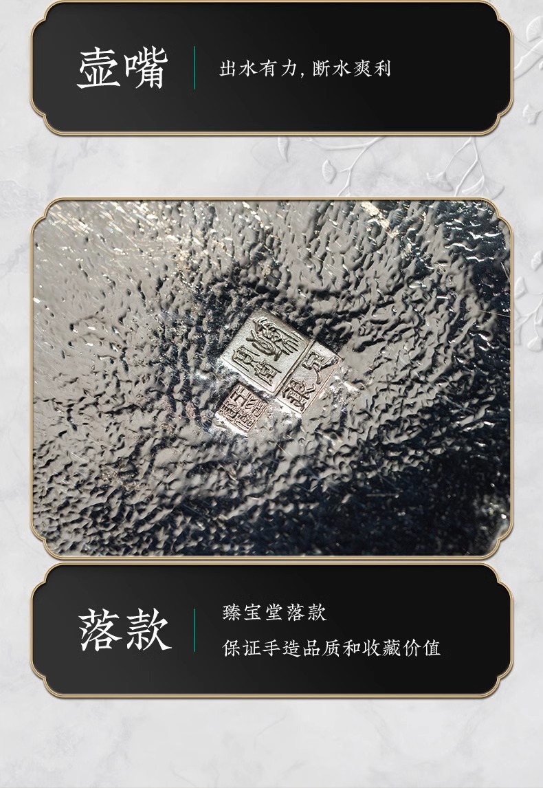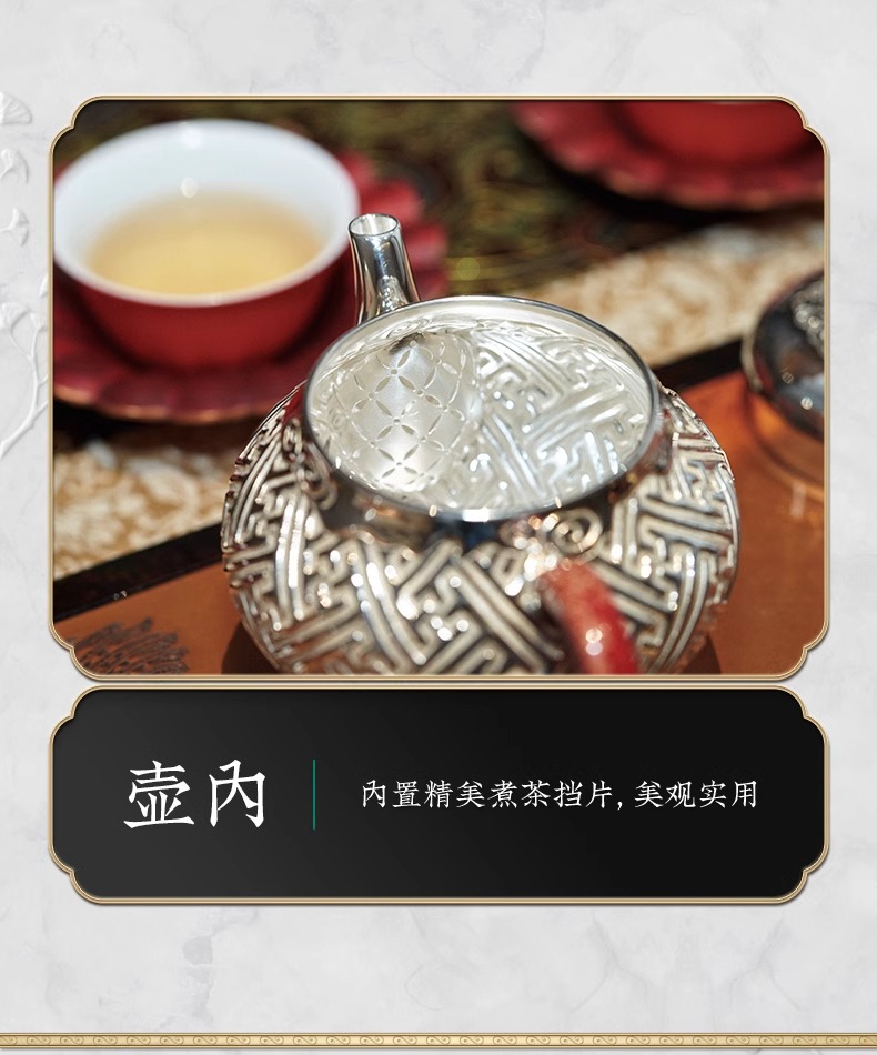 【样品特惠5折,仅1件,无货退款】臻宝堂银壶999纯银泡茶壶纯手工万福纹小壶足银茶具高端中式茶器臻宝堂-万福壶180ml