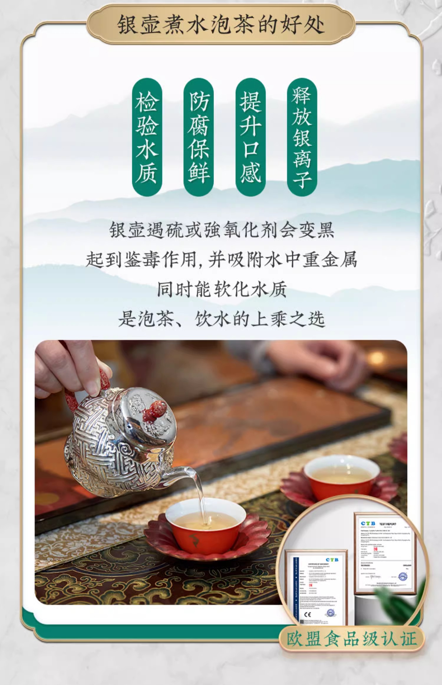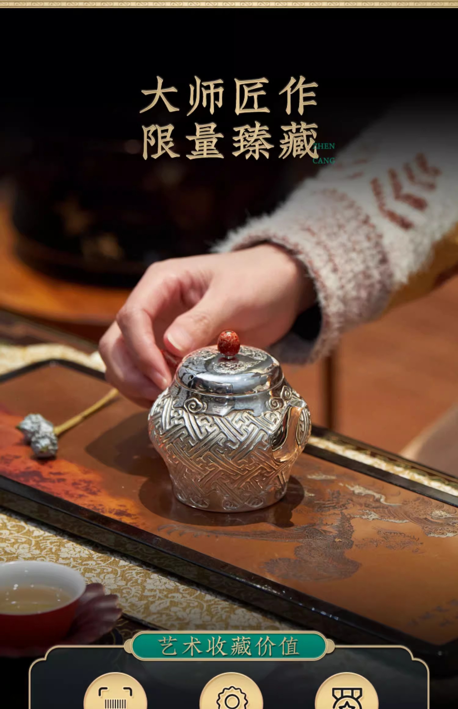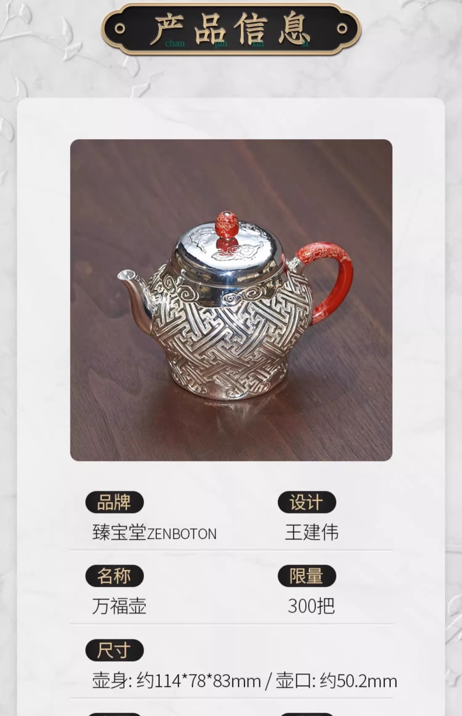 【样品特惠5折,仅1件,无货退款】臻宝堂银壶999纯银泡茶壶纯手工万福纹小壶足银茶具高端中式茶器臻宝堂-万福壶180ml
