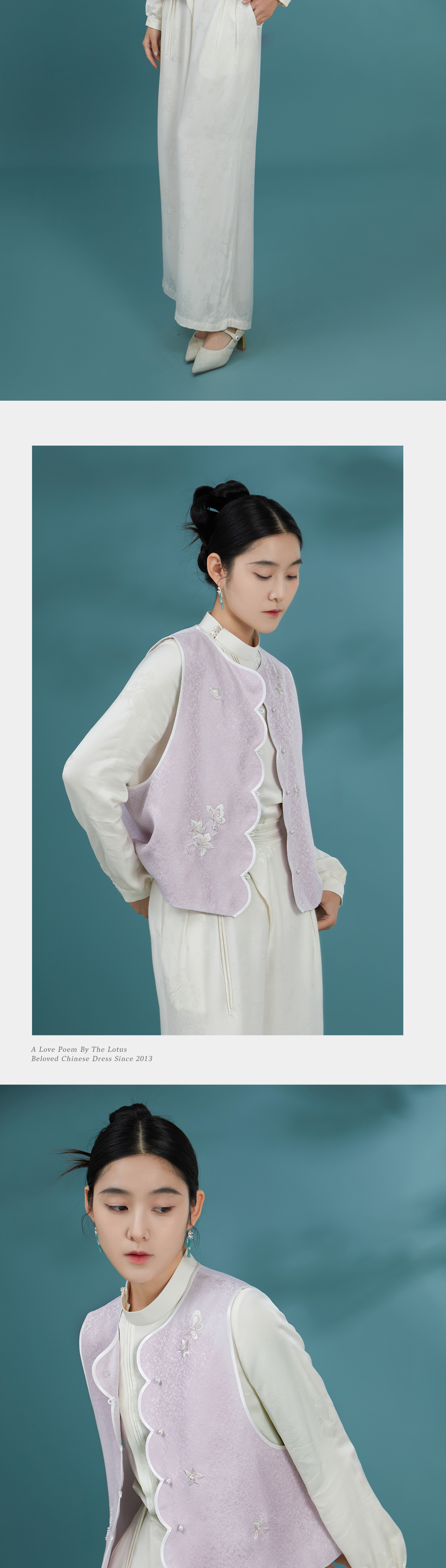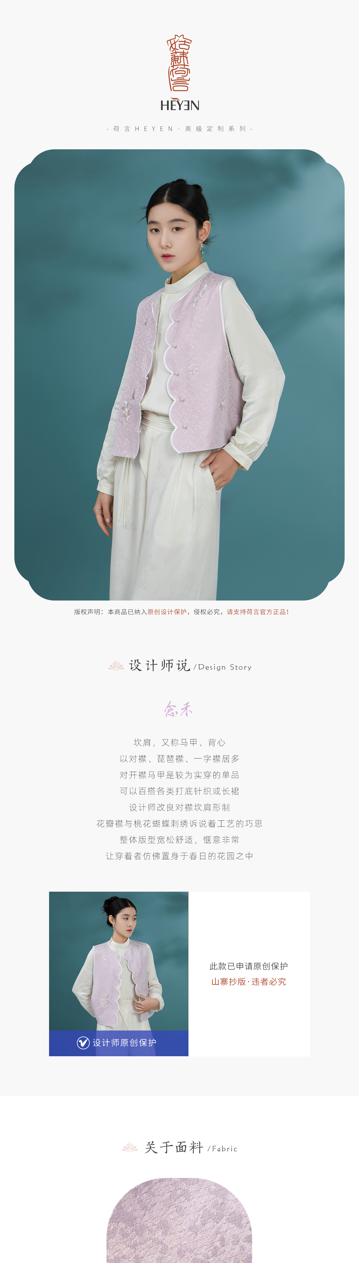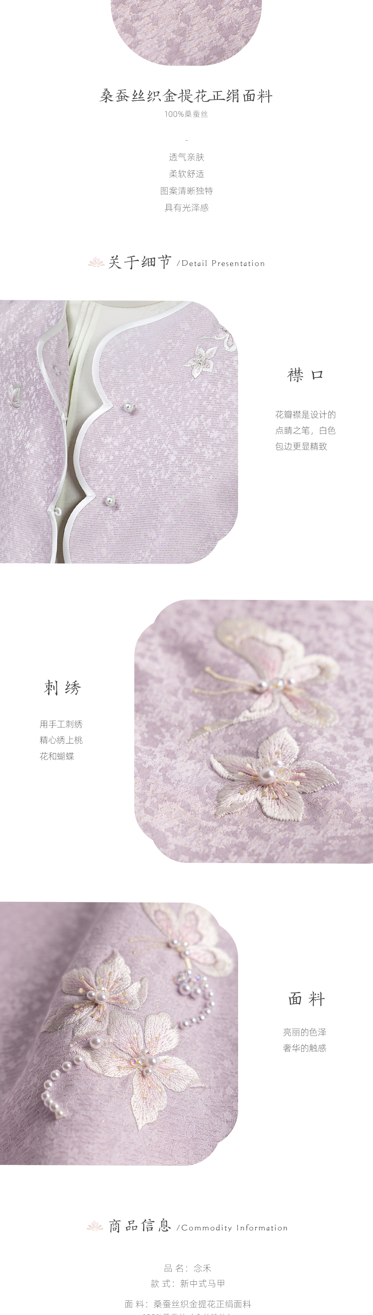 荷言HEYEN 念禾 桑蚕丝织金提花正绢马甲 手工蝴蝶桃花刺绣高定系列